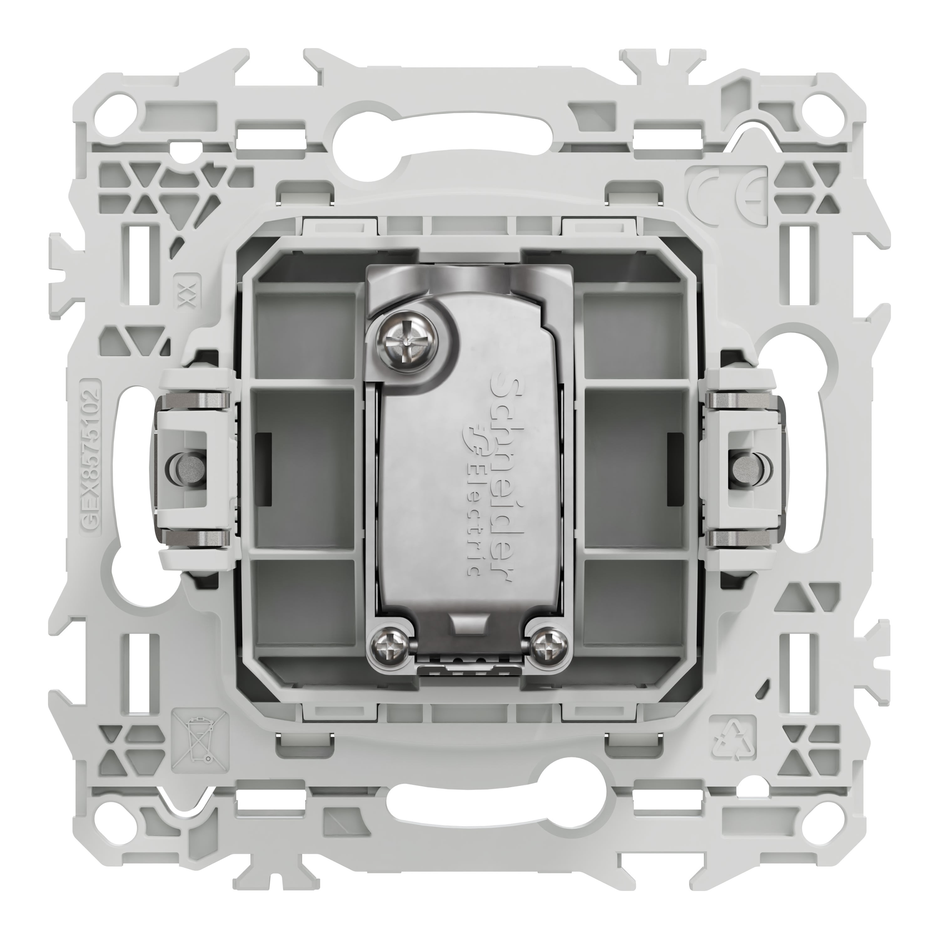 Cette prise télévision prend en charge un câble télé et une sortie coaxiale avec embout mâle. La fixation du mécanisme est facile et robuste sur tout type de boîte d'encastrement grâce à son support rigide avec ses griffesmontées idéales pour la rénovation.