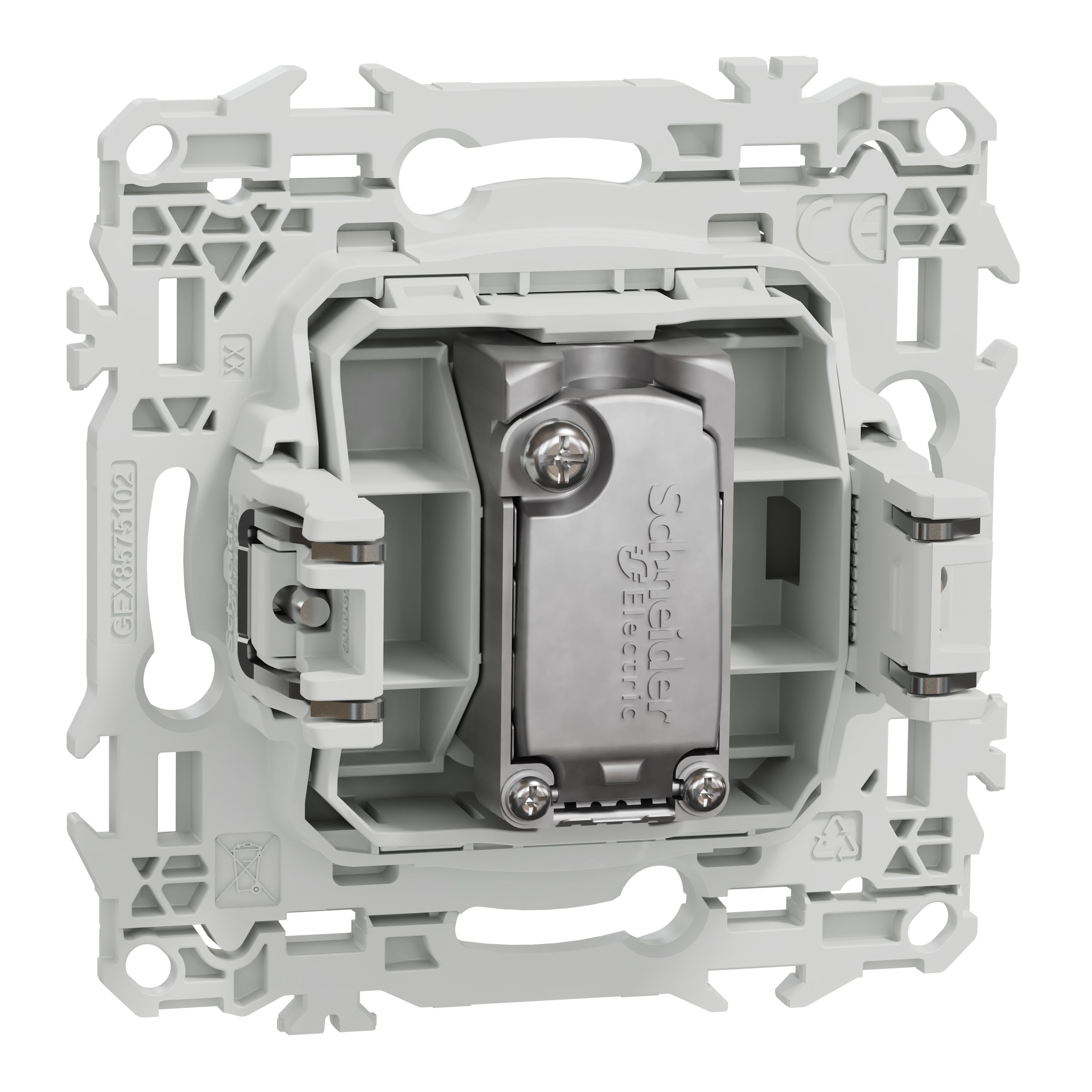 La prise TV Odace est livrée avec son support de fixation intégré, ses griffes montées, et son cache peinture. Elle est à associer à une plaque de finition Odace, Odace Métal, Odace Architecte ou Odace Origine.