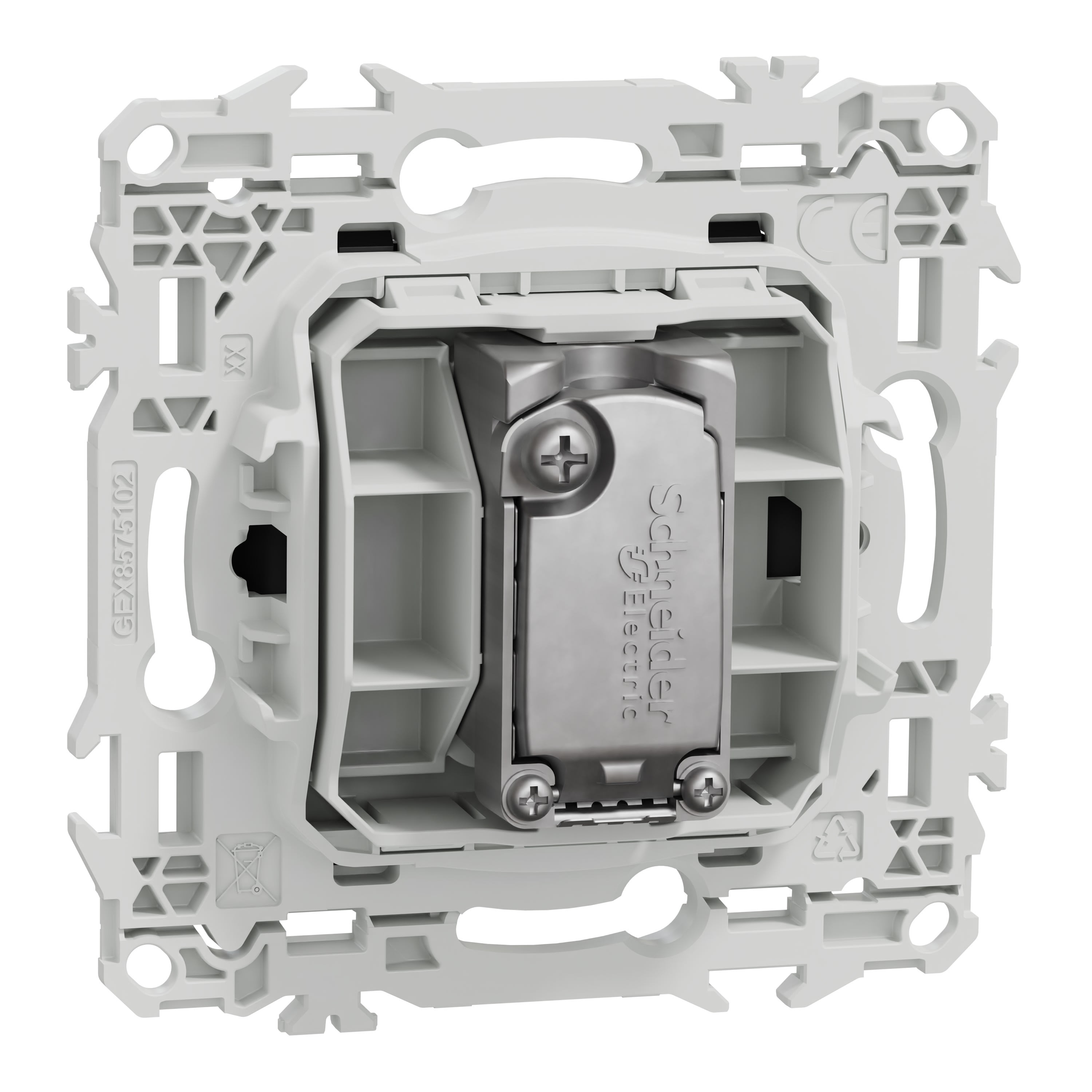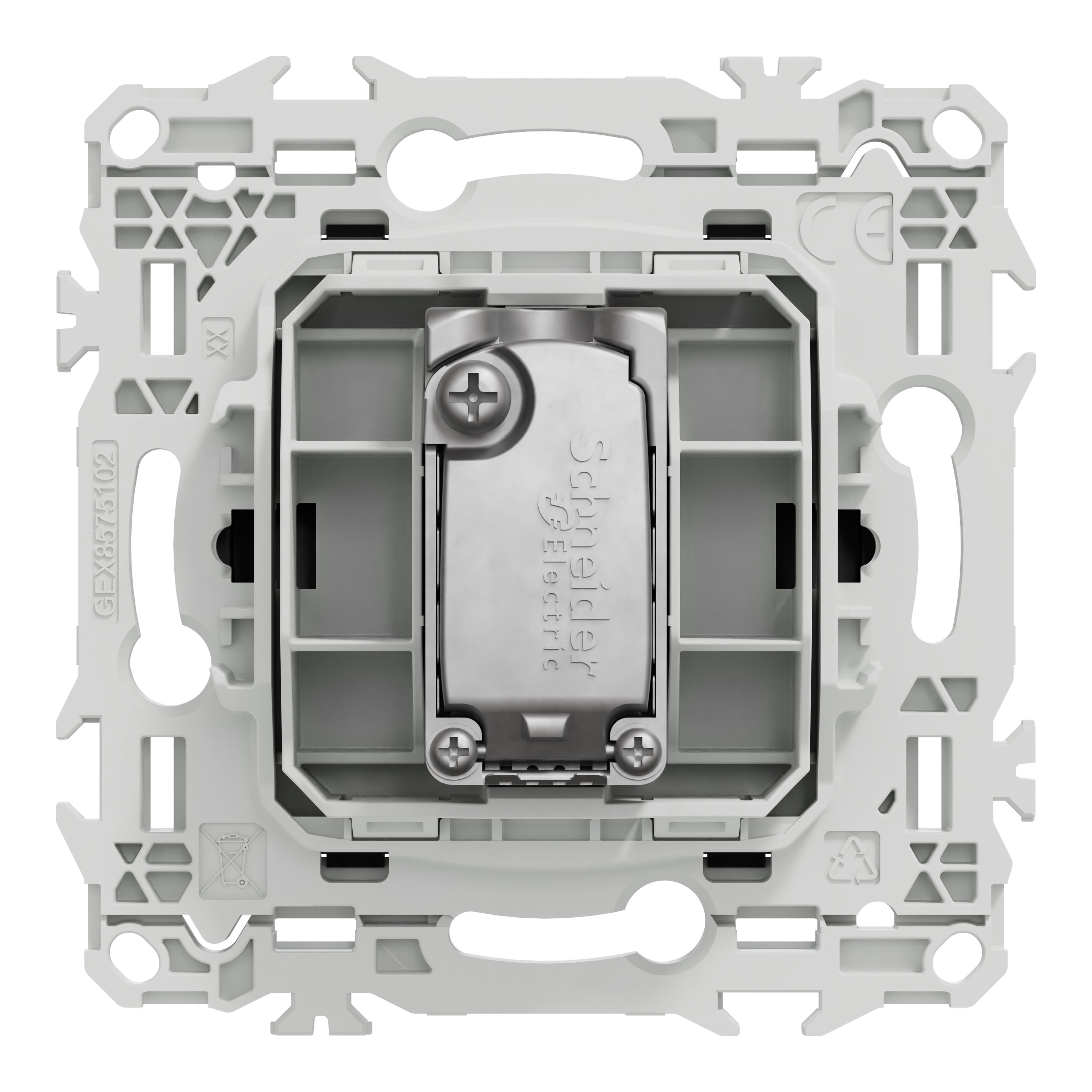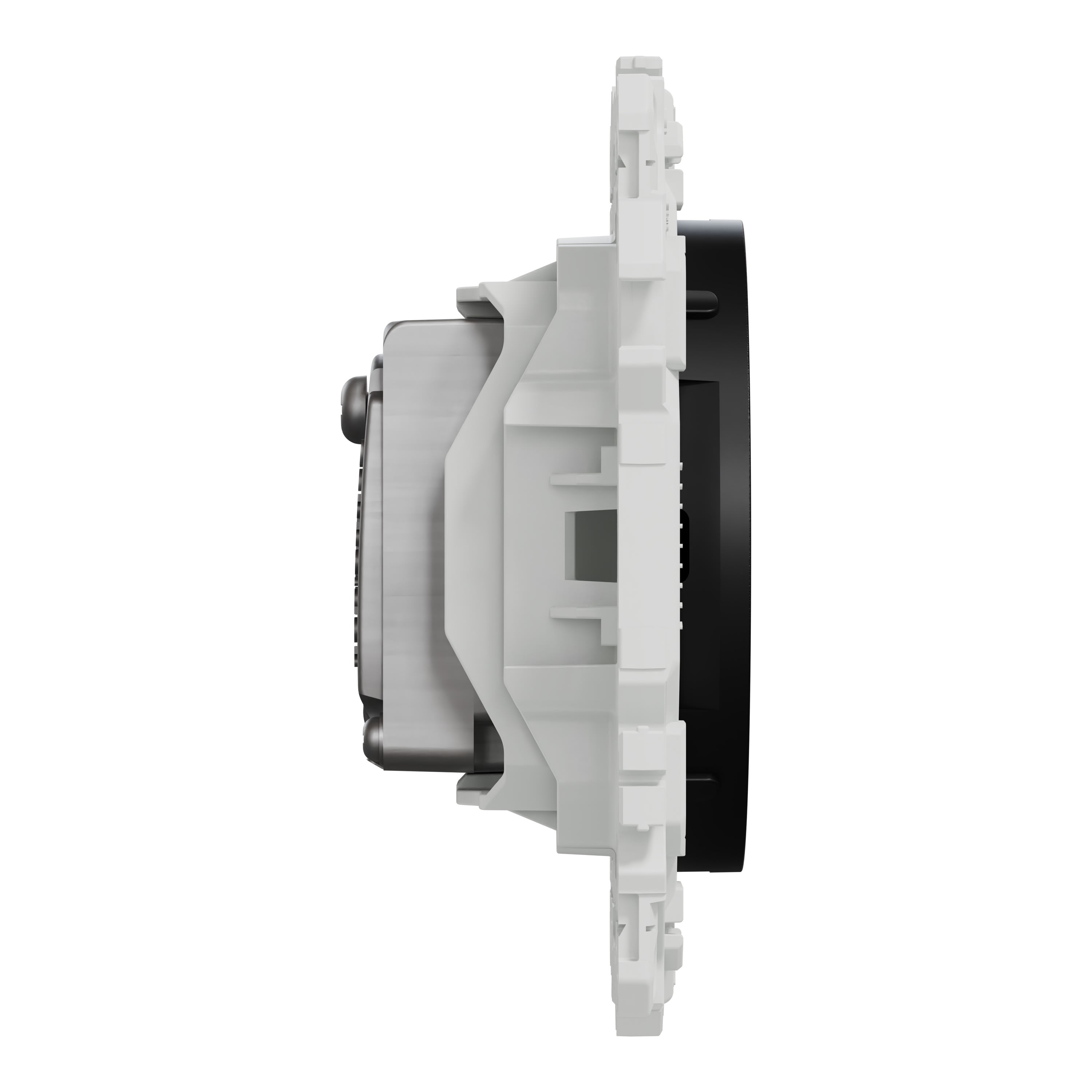 Cette prise télévision prend en charge un câble télé et une sortie coaxiale avec embout mâle. La fixation du mécanisme est facile et robuste sur tout type de boîte d'encastrement grâce à son support rigide à vis ou à griffes clipsables en option idéales pour la rénovation.