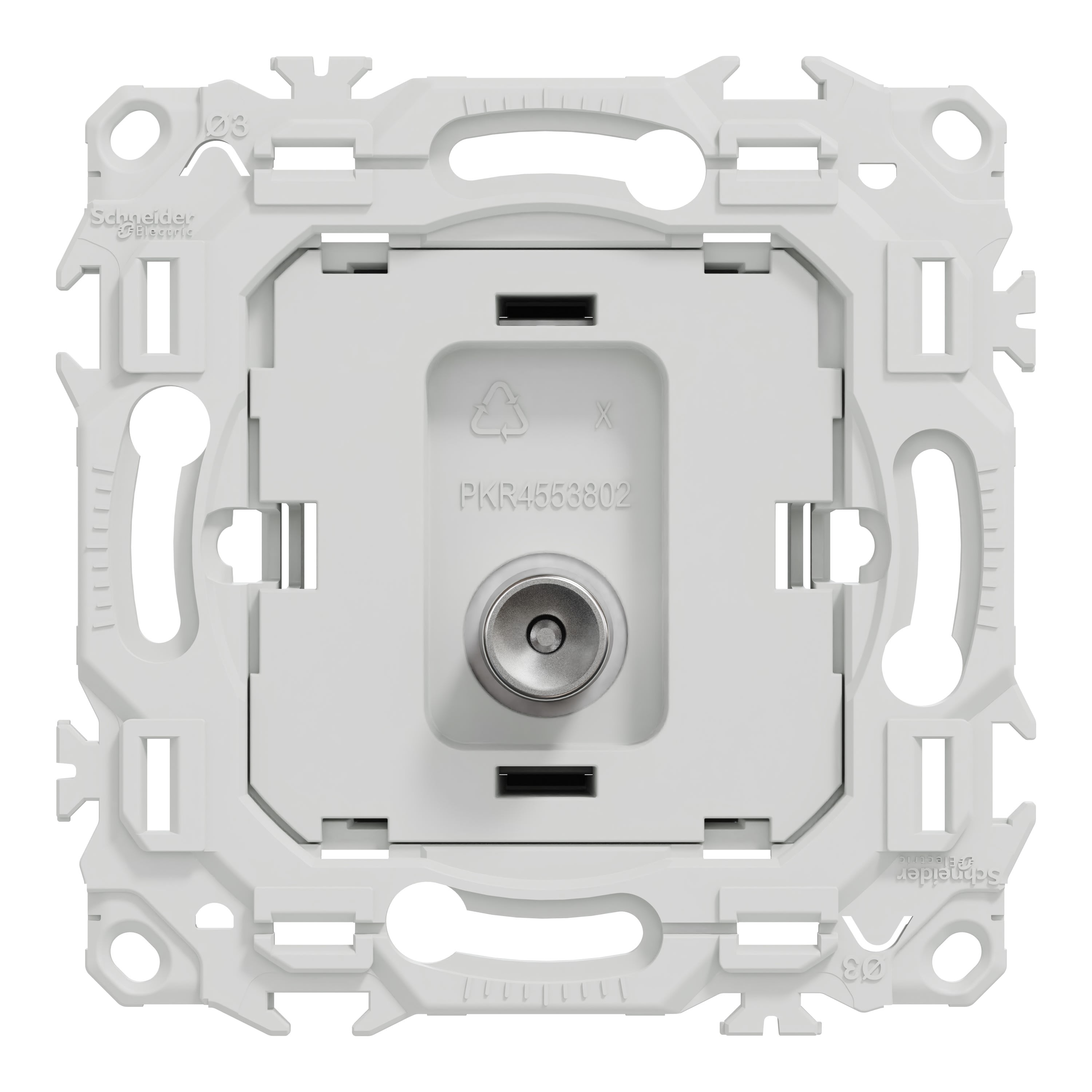 La prise TV Odace sans enjoliveur est livrée avec son support de fixation intégré et son cache peinture. Elle est à associer à un enjoliveur de prise TV (blanc ou noir), et une plaque de finition Odace, Odace Métal, Odace Architecte ou Odace Origine.
