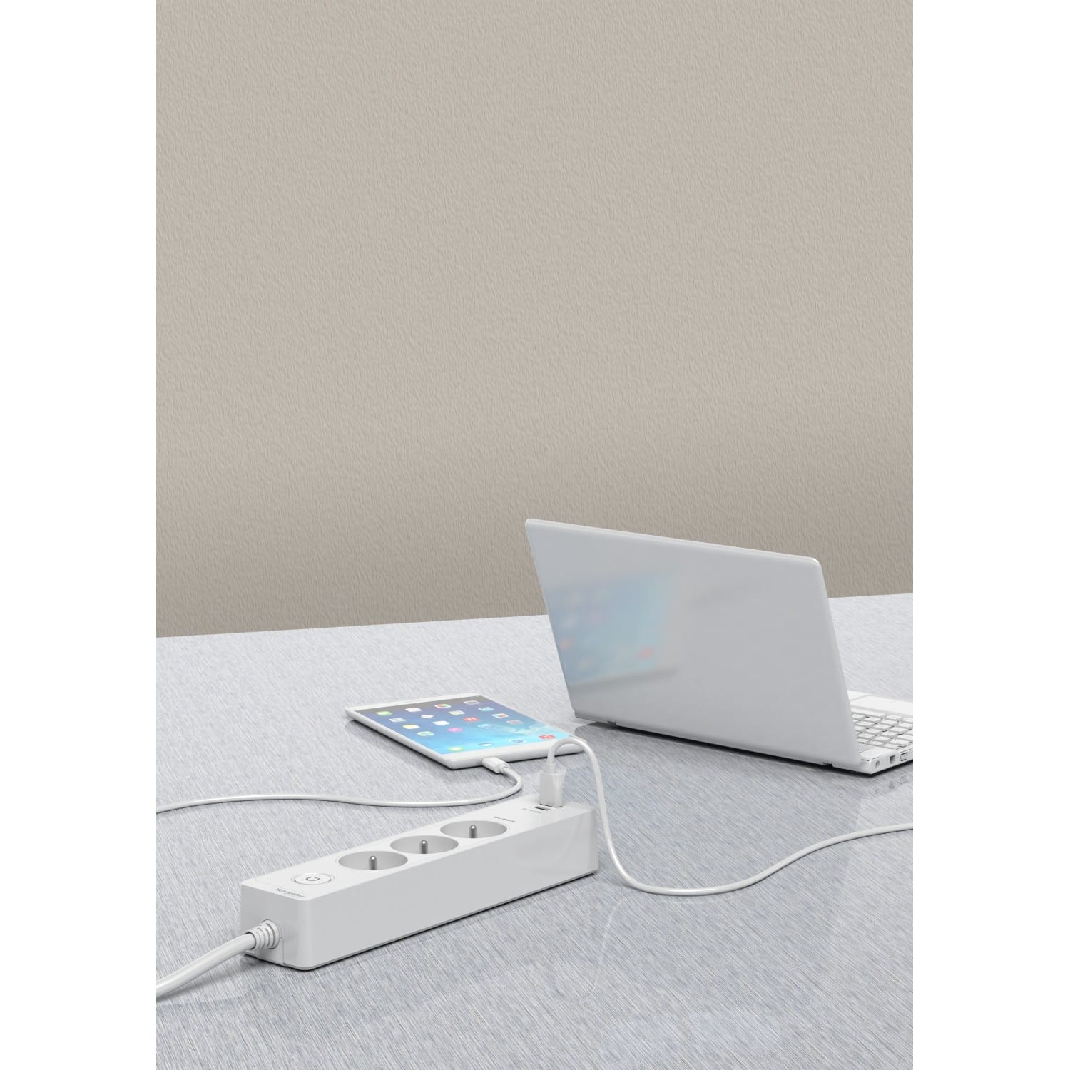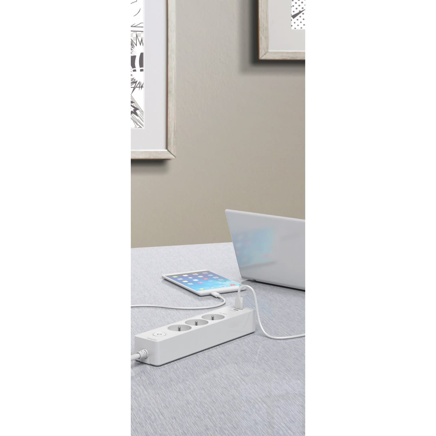 Cette multiprise 3 prises 2P+T en finition blanche possède un cordon de 1,5m et un interrupteur ON/OFF lumineux pour des économies d'énergie.
