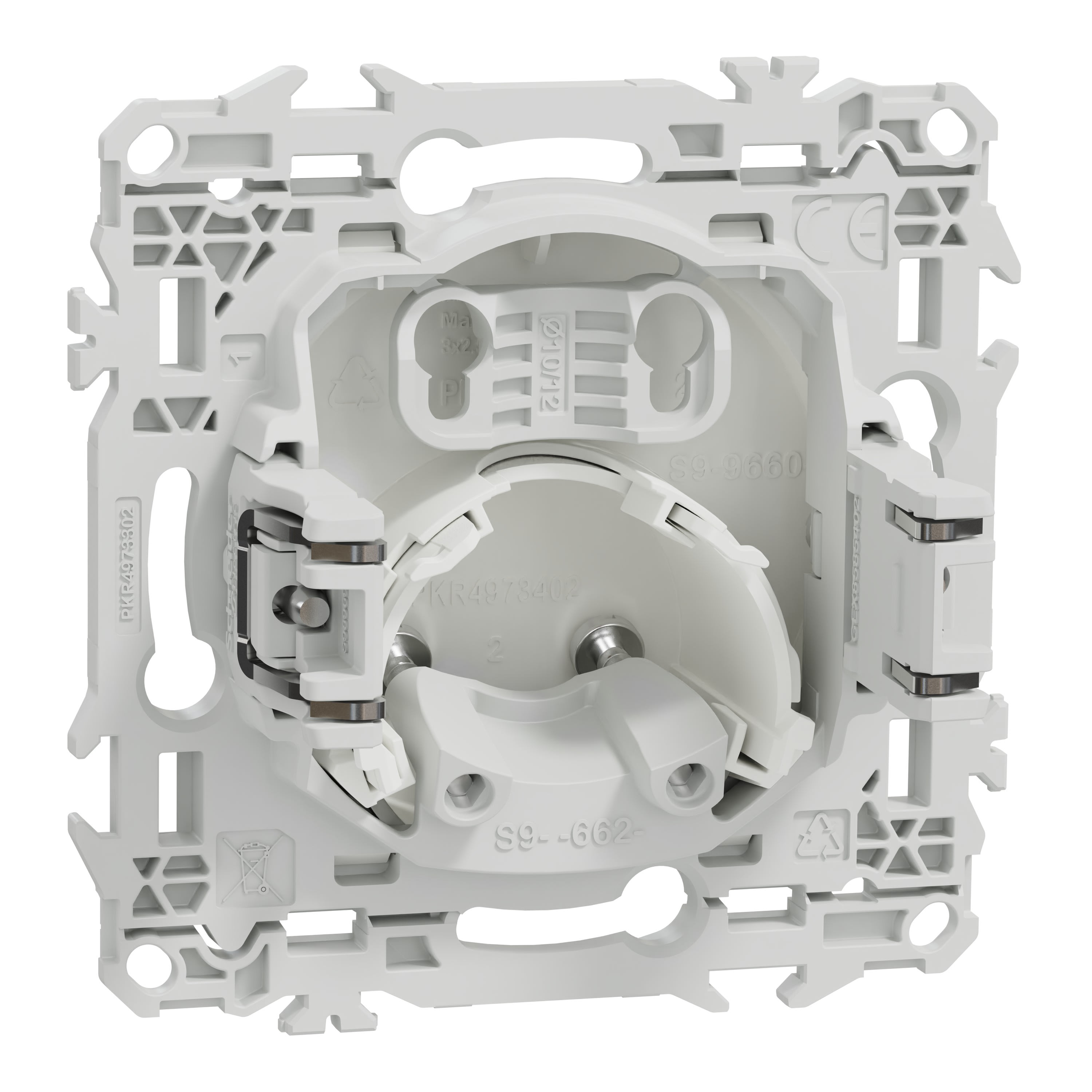 - Griffes livrées montées pour une installation facile en rénovation sur des boîtes d'encastrement existantes sans vis.