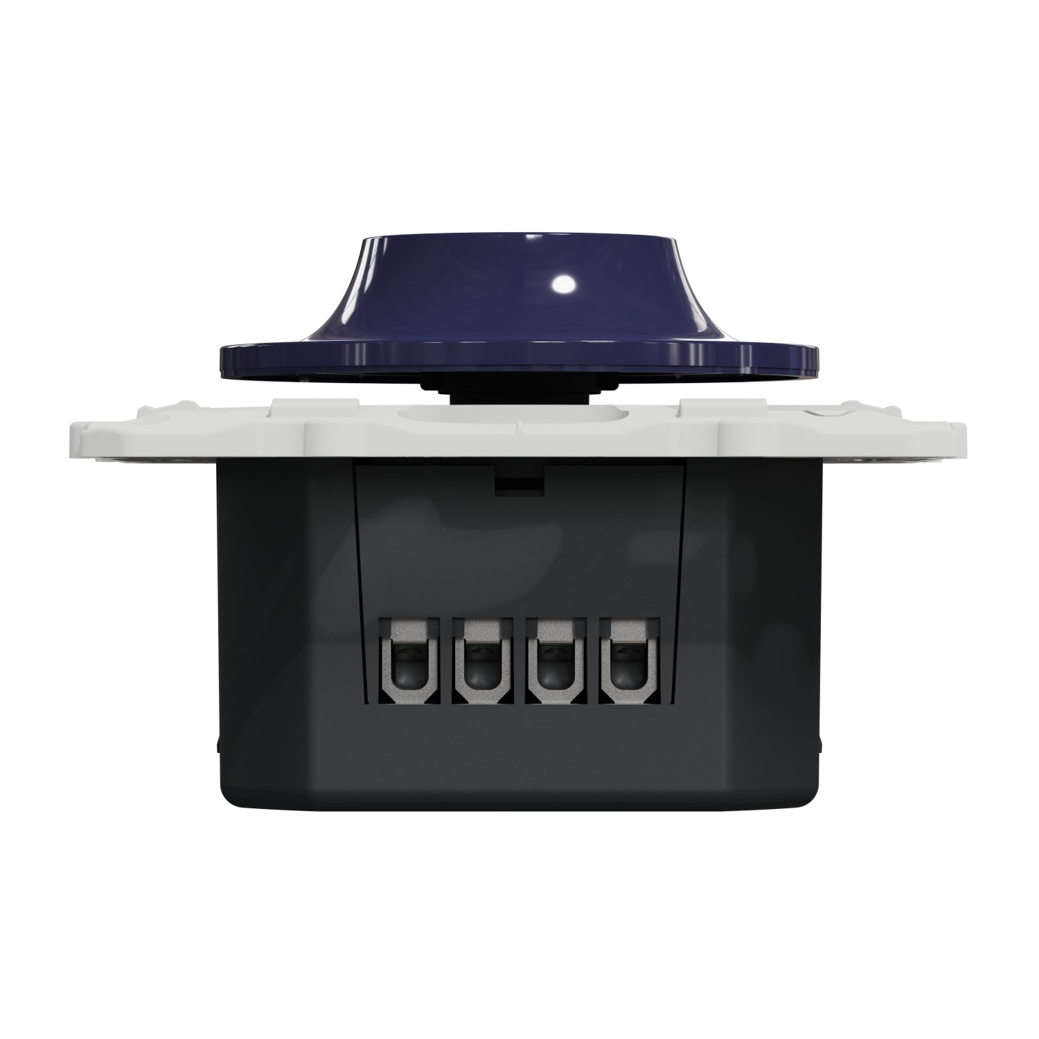 Schneider Electric innove et enrichit sa gamme phare Odace de nouvelles fonctions et de nouvelles finitions Choisissez ce variateur rotarif bouton poussoir 2 voies pour vos commandes d'éclairage De couleur bleu Cobalt finition brillante, il remplacera facilement un interrupteur classique en apportant plus de confort à vos clients Il peut être utilisé pour la commande des led, des lampes halogènes 230V et à incandescence 230V dimmables Fixation par vis ou par griffes - support de montage fourni Doit être associé à une plaque de finition de la gamme Odace Profondeur d'encastrement 29,3mm