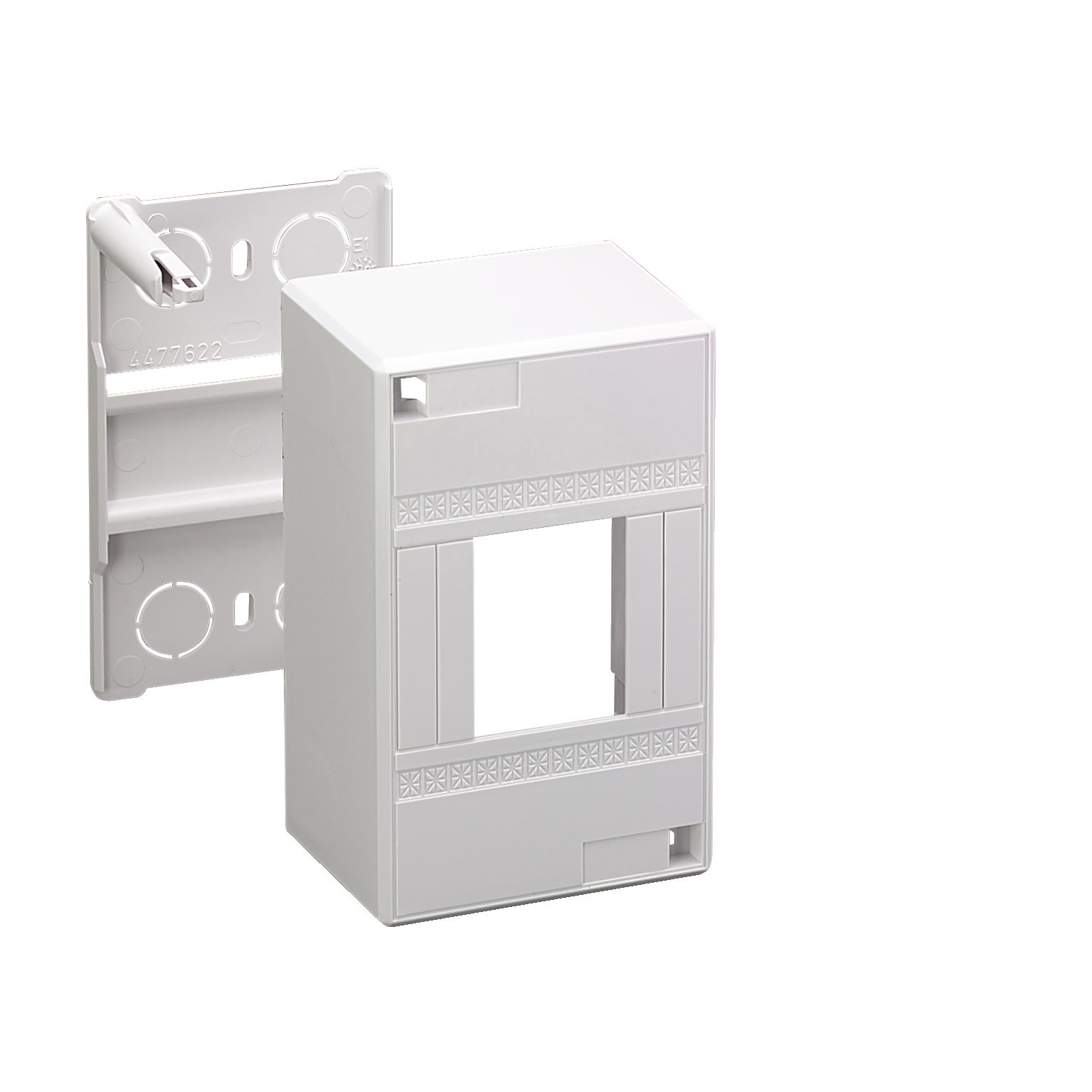 Schneider Electric propose, pour réaliserr des installations de distribution ou de communication de quatre modules, le mini coffret Opale 13394 Equipé d'un rail DIN, ce coffret en matériau isolant autoextinguible participera à la protection des biens et des personnes De plus, son capot avec vitre transparente est plombable, pour garantir l’intégrité de son contenu Sa couleur blanc RAL 9003 et son design compact permettent une intégration esthétique dans tous les environnements Ce coffret de répartition s’installe en saillie, aux plus près des besoins de l’installation de vos clients La gamme Opale de coffrets modulaires d’intérieur répondra aux attentes de vos clients par leur facilité d’installation Ils sont livrés avec tous les accessoires indispensables à leur mise en œuvre ; il est en plus possible d’y adjoindre des accessoires optionnels de finition