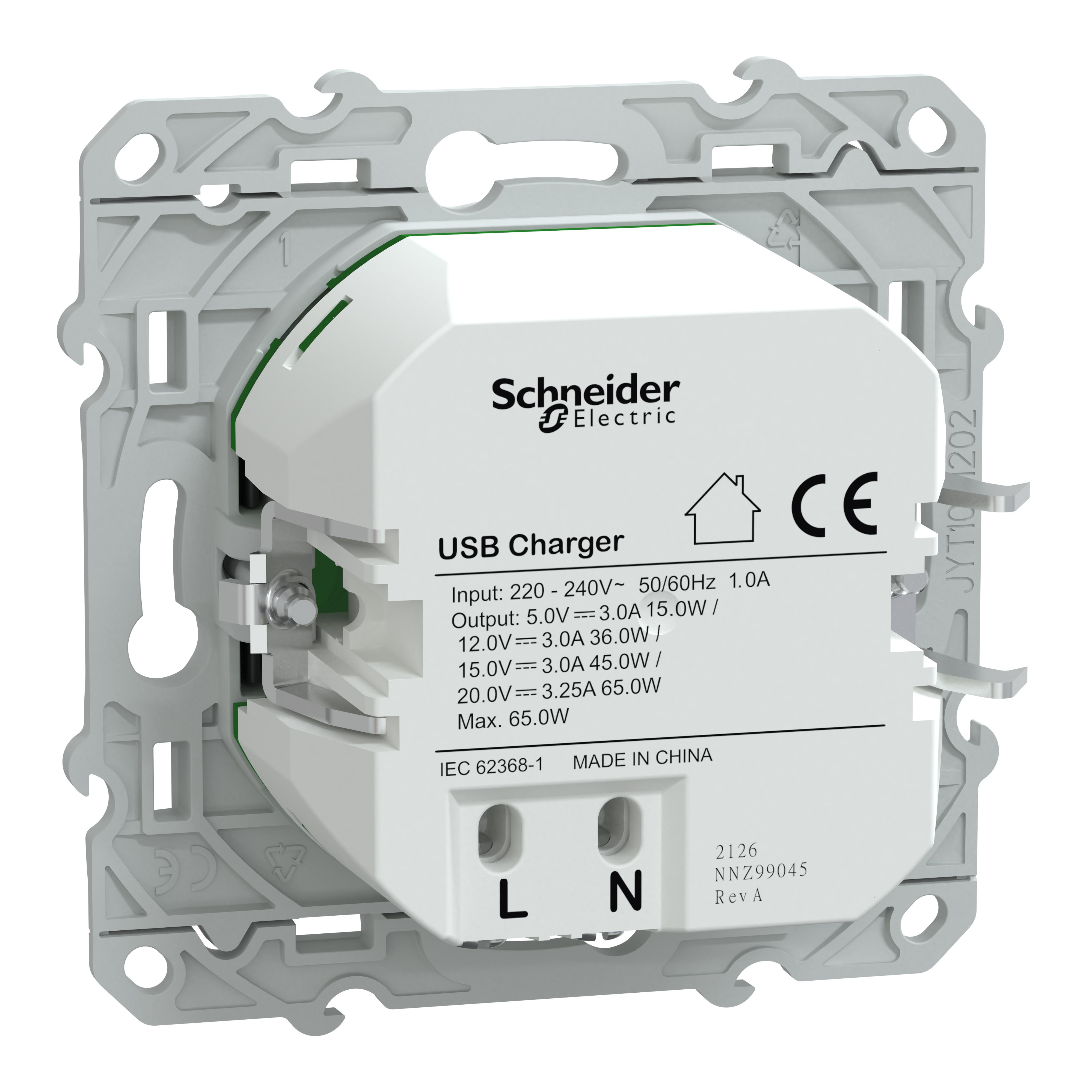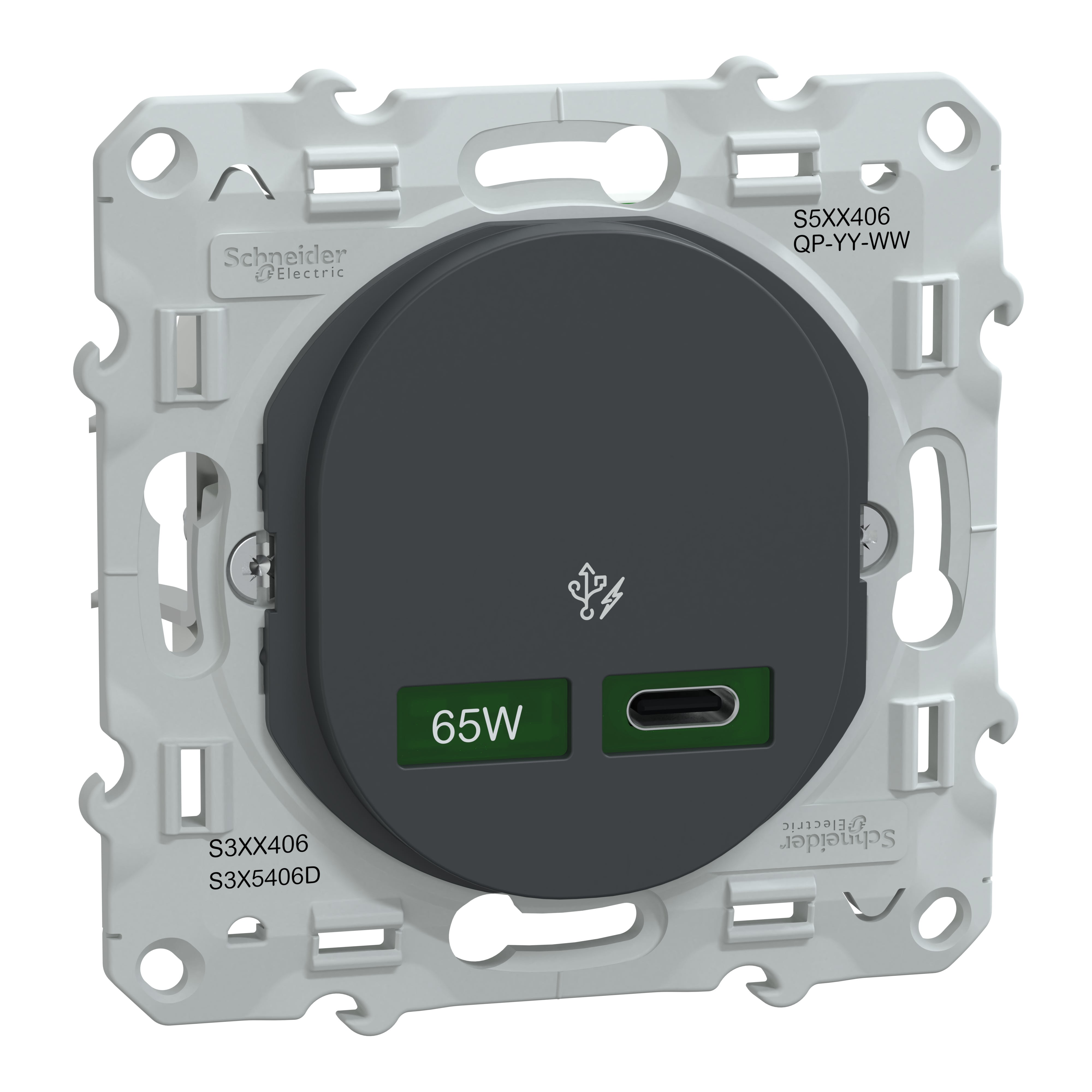 Schneider Electric - Ovalis - Chargeur USB-C 65W - Forte puissance pour charge app. mobiles - Anth - S340406