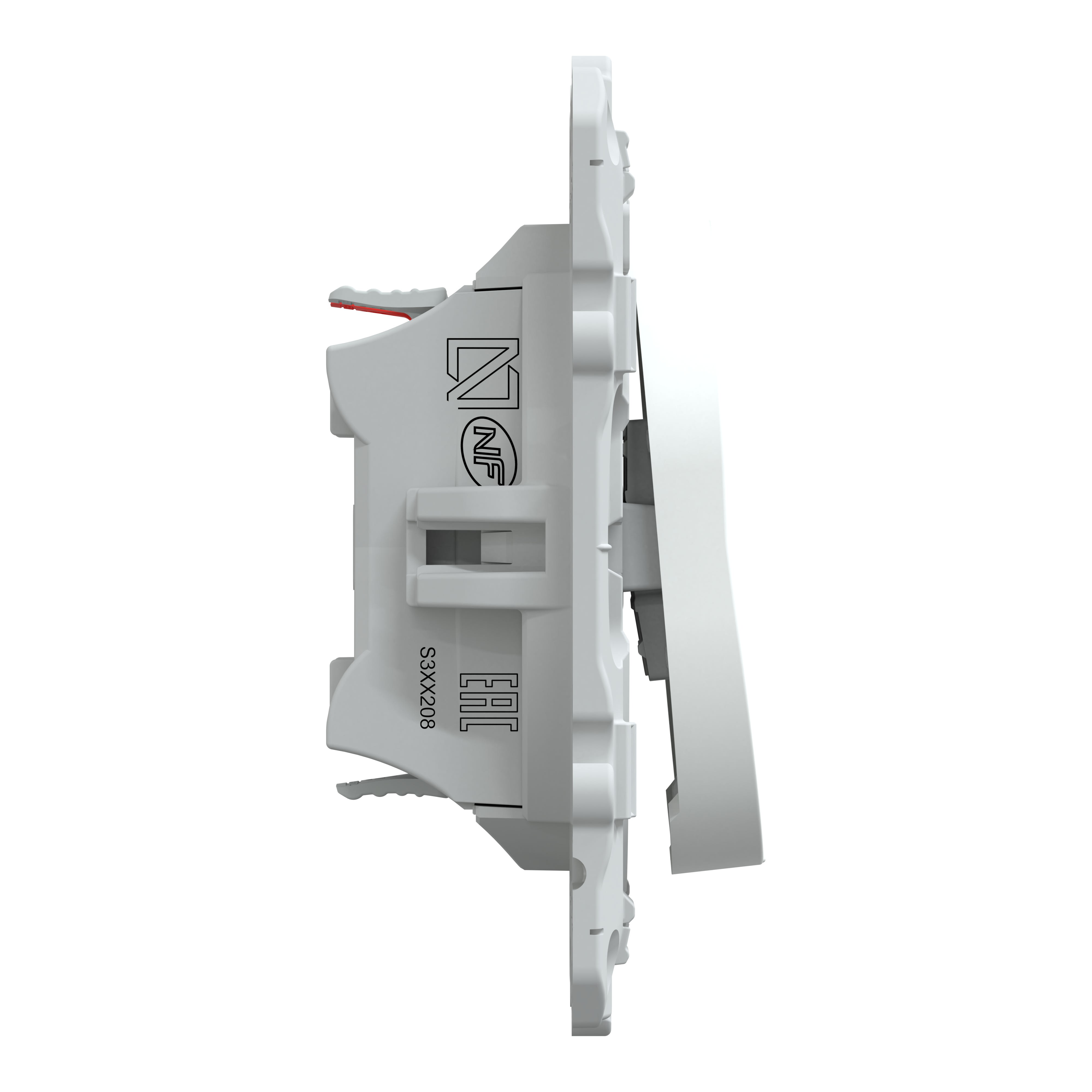 S300208 se compose d'un mécanisme avec deux commande à bascule et d'un enjoliveur double blanc mat RAL9010. Son support de fixation intégré permet l'installation sur une boîte et la fixation de sa plaque de finition à acheter séparément. Vous trouverez également 3x2 bornes à vis automatiques et un cache peinture de protection fourni.