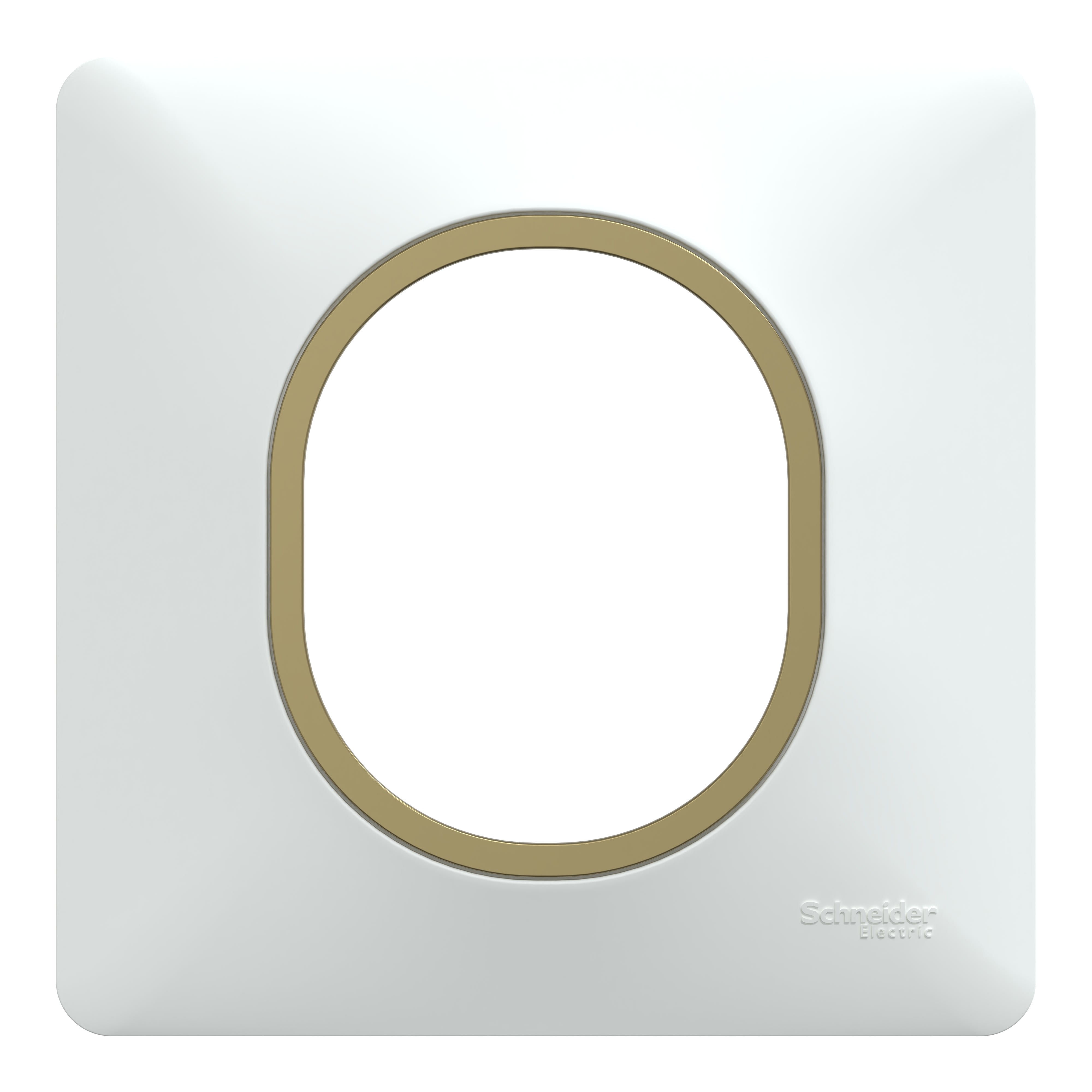 Schneider Electric - Ovalis - Plaque de finition - 1 poste Blanc avec bague effet Laiton - S320702D