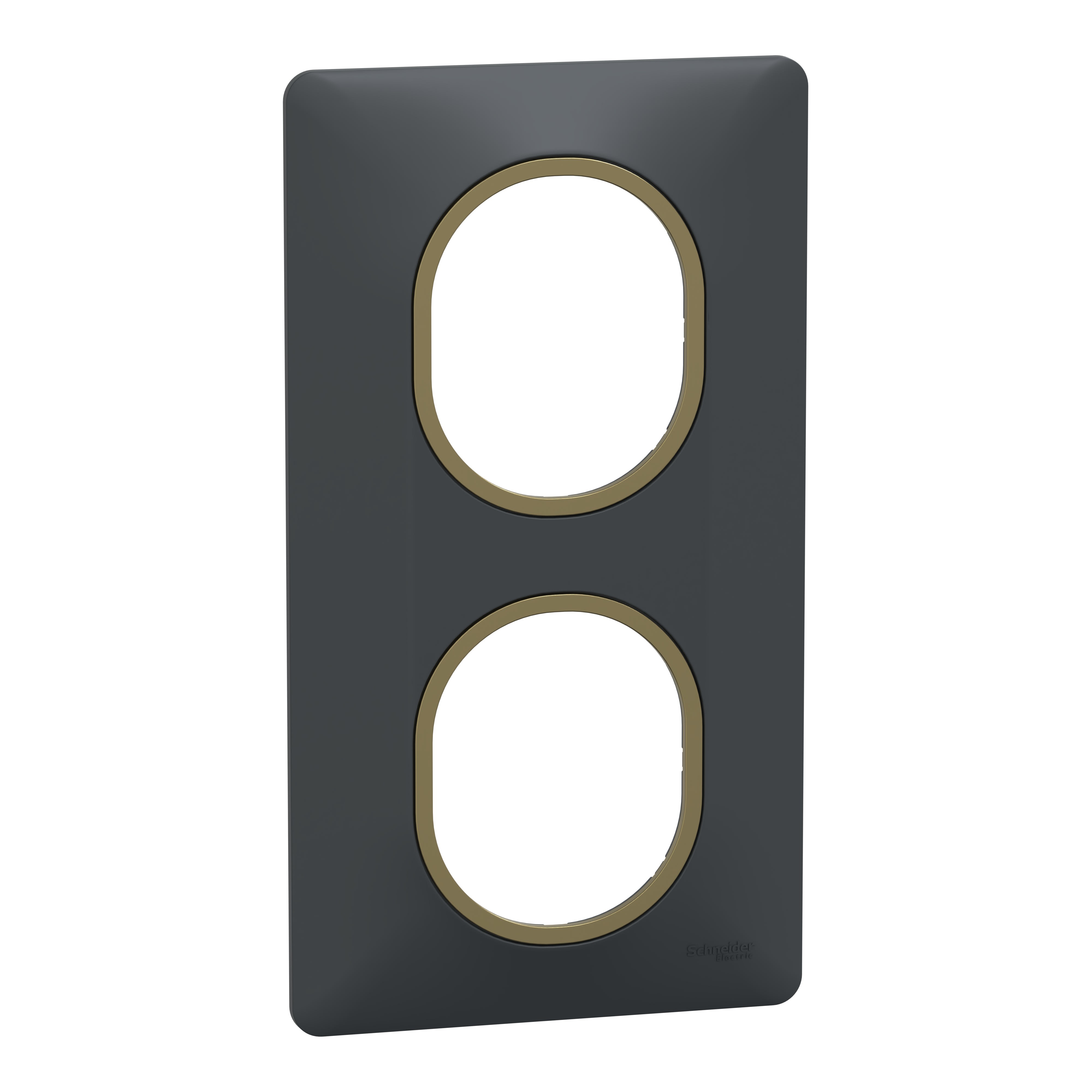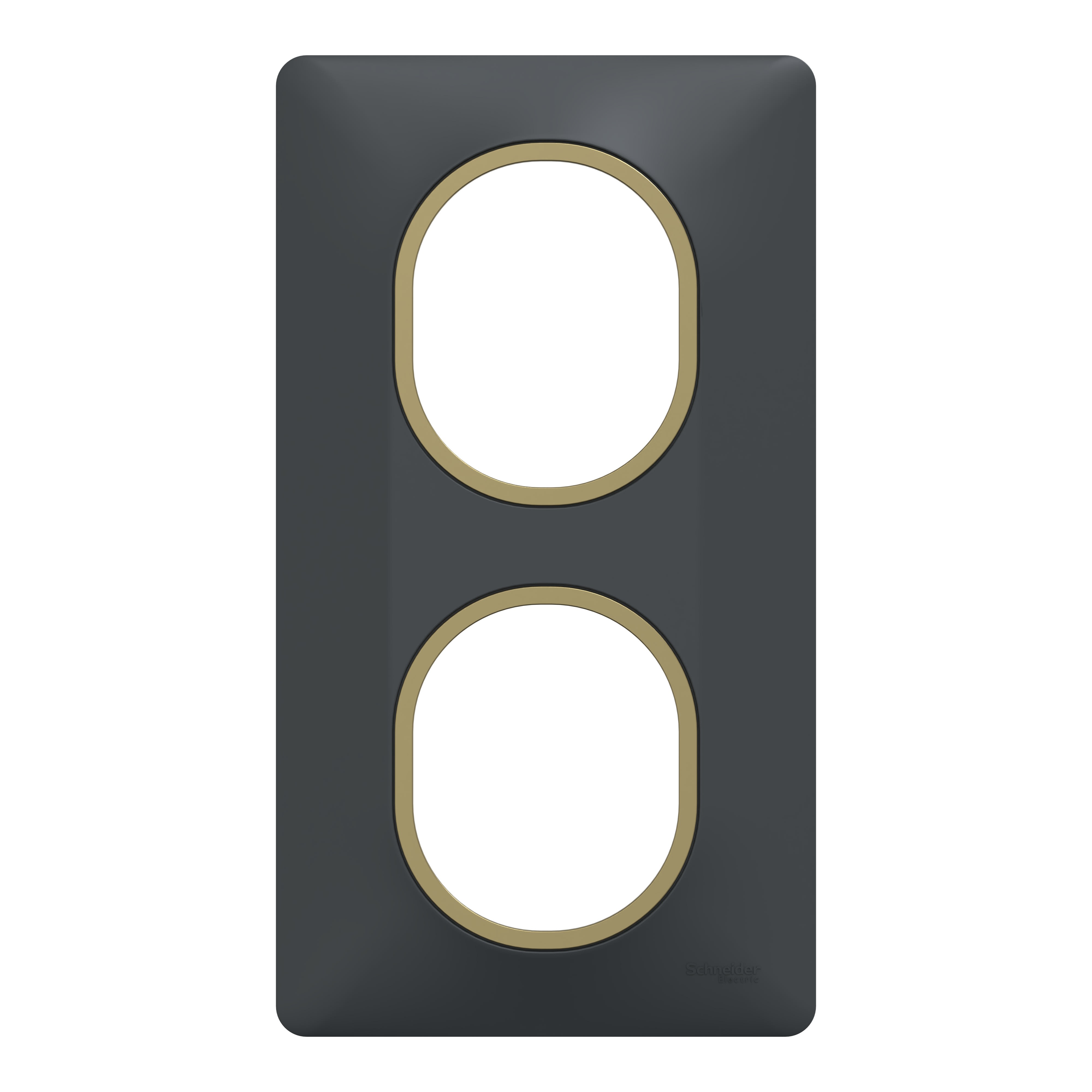 Schneider Electric - Ovalis - Plaque de finition - 2 postes Vertical - 71mm - Anthracite bague Laiton - S340724E
