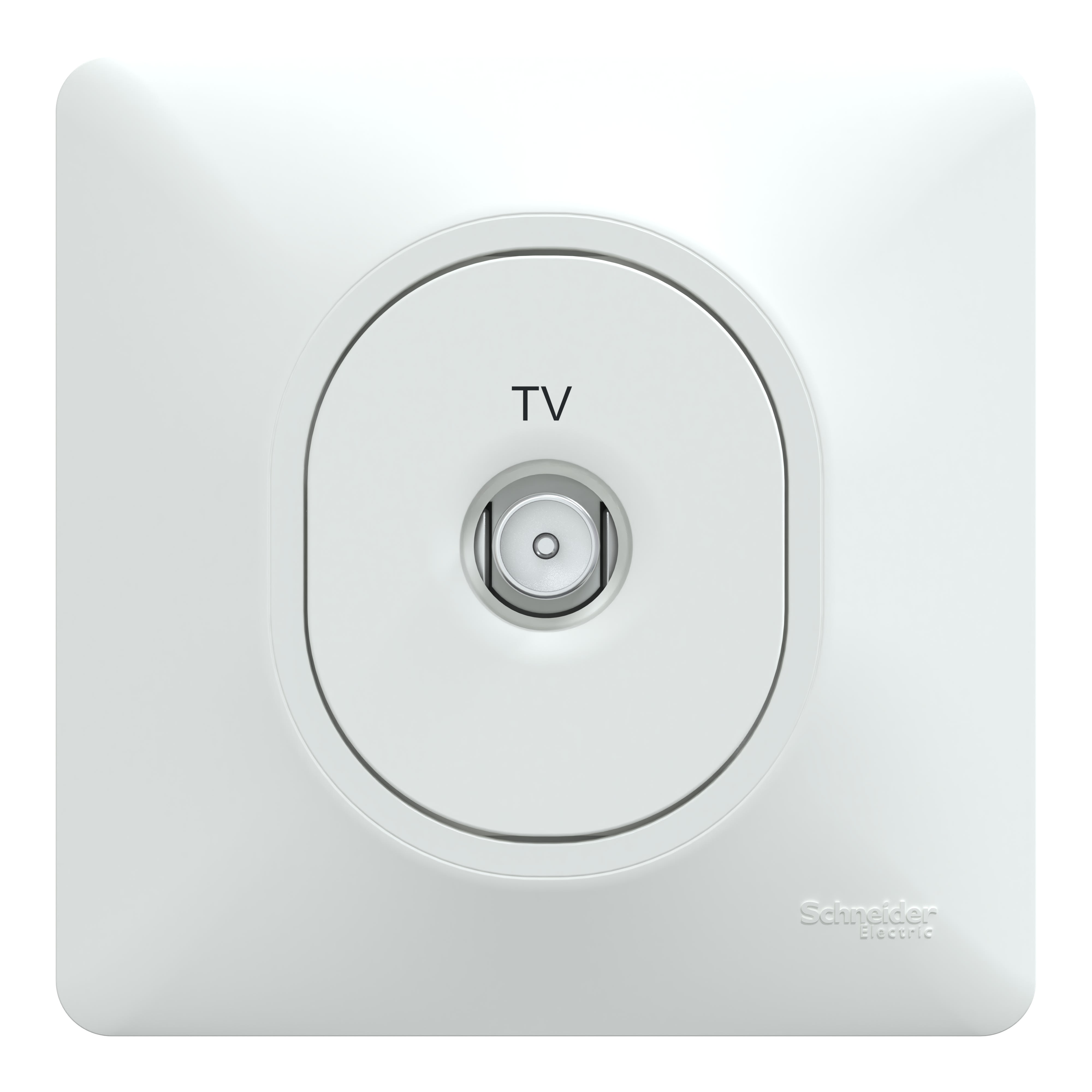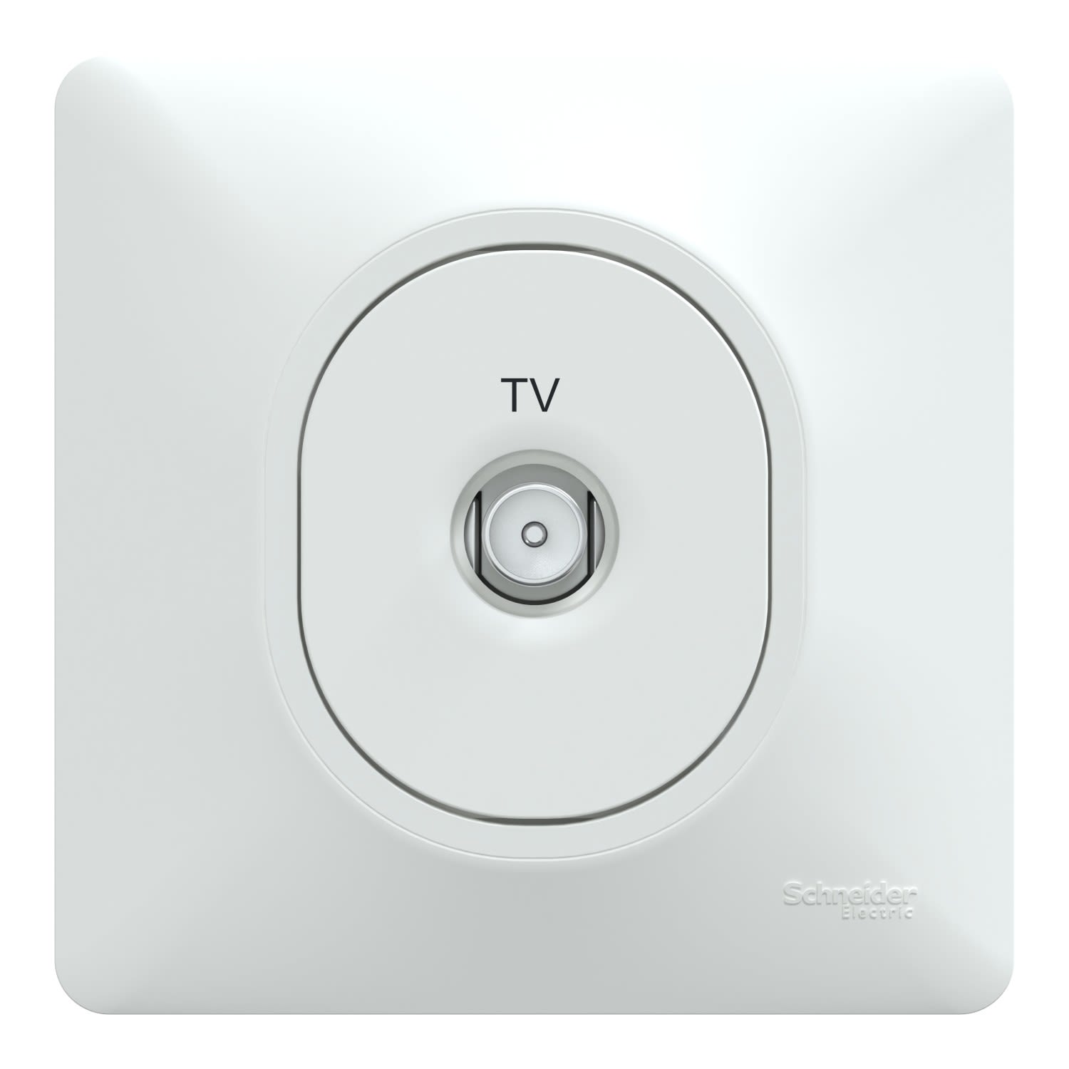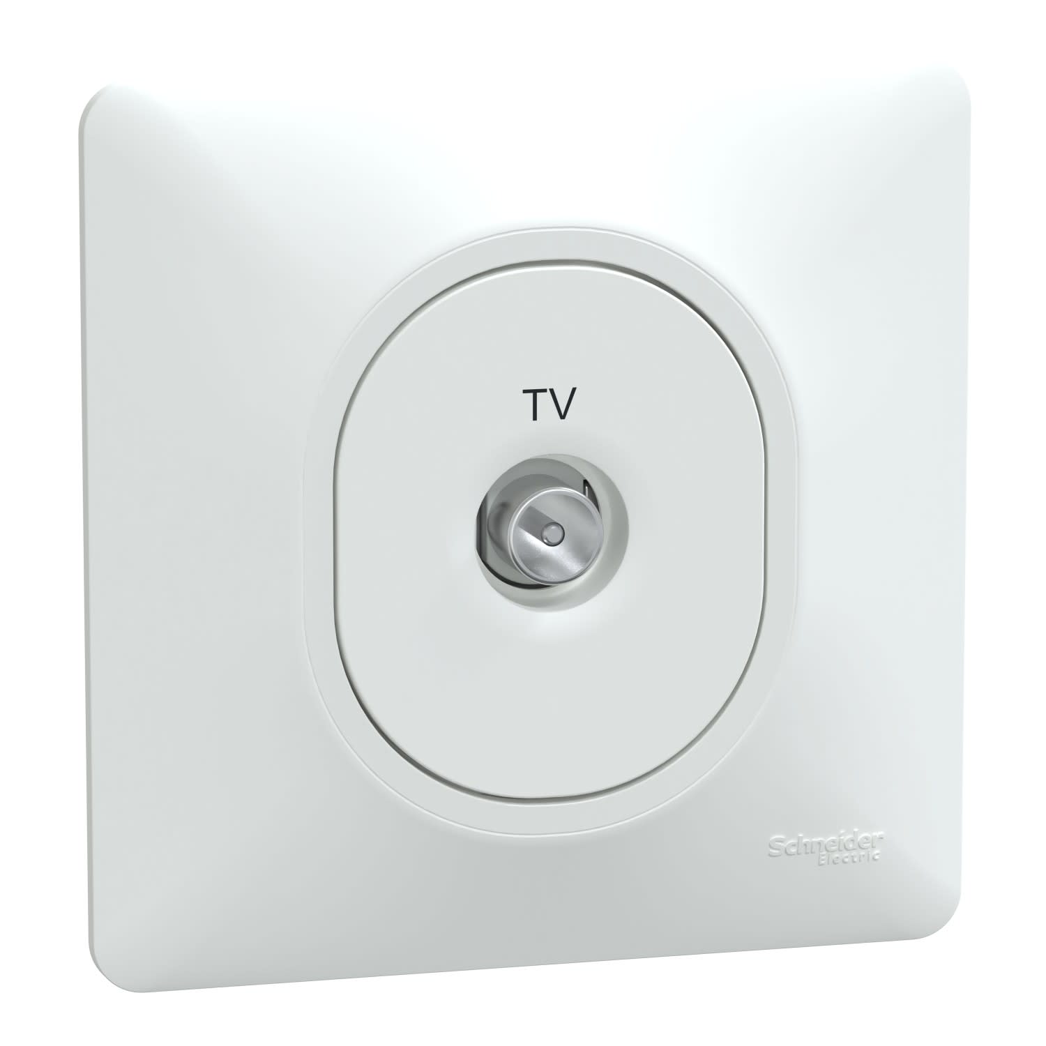 Schneider Electric - Ovalis - prise TV simple - Blanc - griffes montées - avec plaque - S321405