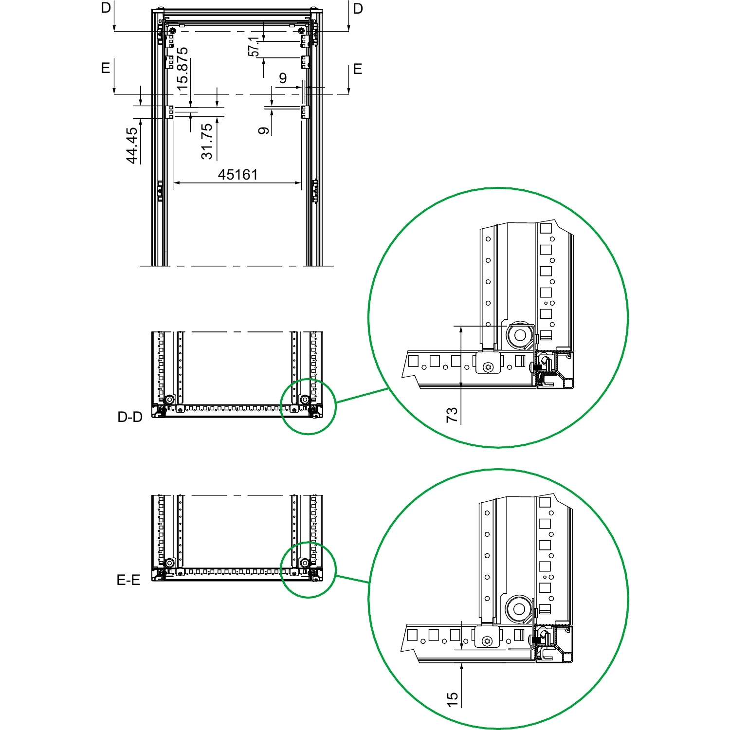 modèle - ensemble d'angle 482,6 mm (19 pouces)