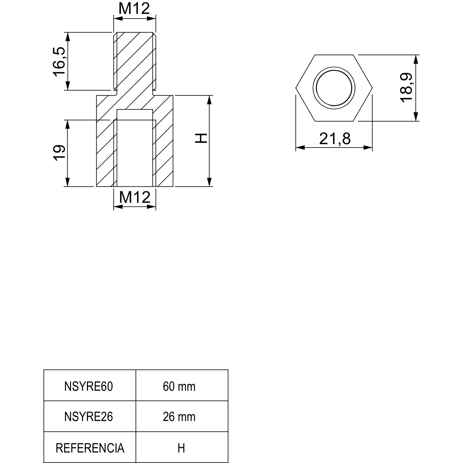hauteur - 60 mm