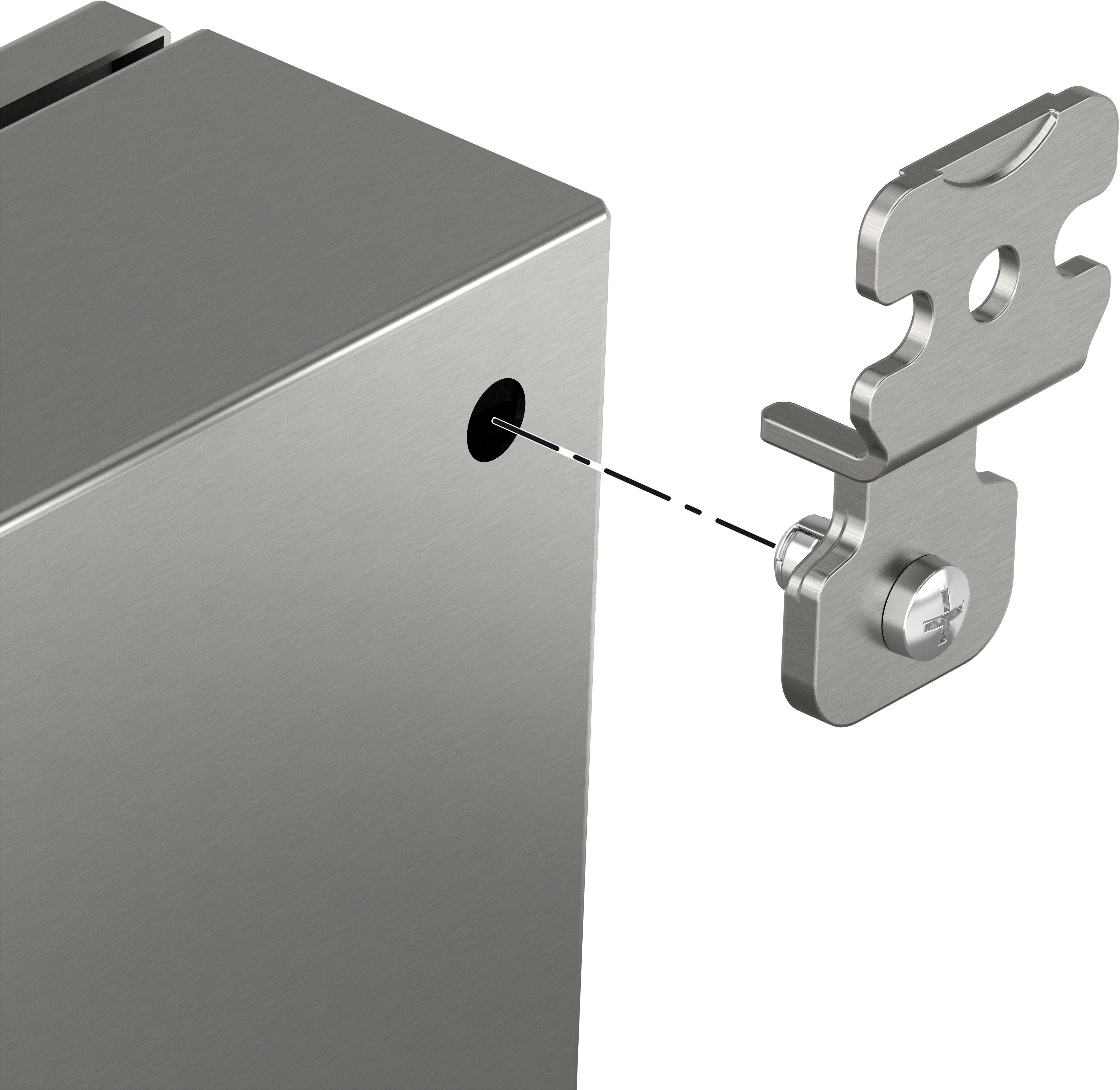 Pattes de fixation murale pour PanelSeT S3D en acier inoxydable 304L. Ce lot de 4 supports est fourni avec des vis de fixation et un joint d'étanchéité pré-monté. A monter à l'arrière du coffret, en position horizontale ou verticale.