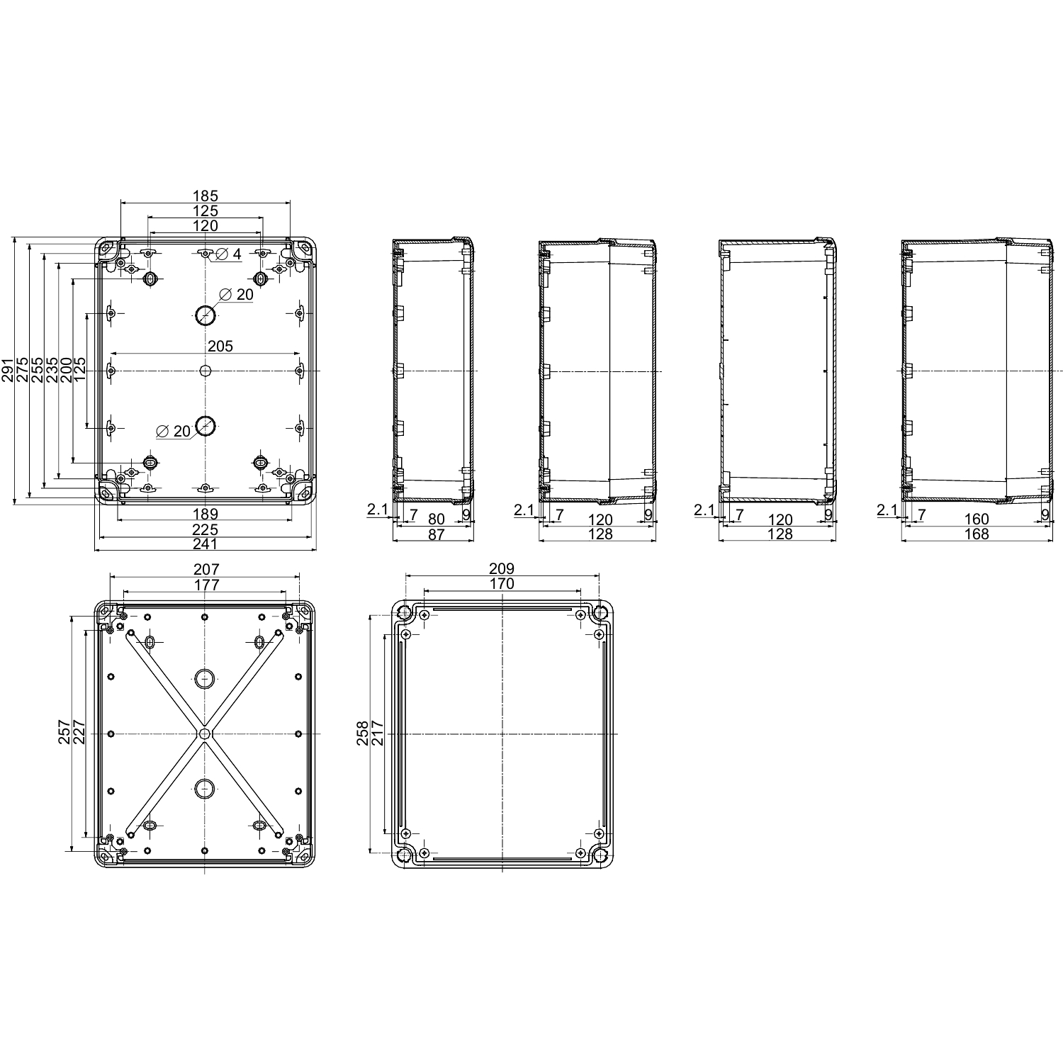 Ce TBP est un boîtier mural en polycarbonate. Il est conçu pour des applications polyvalentes et peut être utilisé à l'intérieur ou à l'extérieur Il est gris (RAL 7035). Les dimensions intérieures de la boîte sont de 275mm x 225mm x 80mm. Le couvercle est fermé par quatre vis plates imperdables situées à l'extérieur de la zone scellée du boîtier pour conserver l'IP. Son isolation électrique est de classe II, pour éviter les chocs électriques et pour des solutions totalement isolées. Il résiste également au feu jusqu'à 960°C conformément à la norme IEC 62208. Le boîtier offre une haute protection contre la poussière et l'eau avec un indice IP66 (NEMA 4,4X) et une grande résistance aux chocs avec un indice IK08 (IEC 62262). Il peut être stocké à des températures comprises entre -15 et 60 °C et utilisé entre -25 et 80 °C sans affecter ses performances. Le produit est certifié UL.