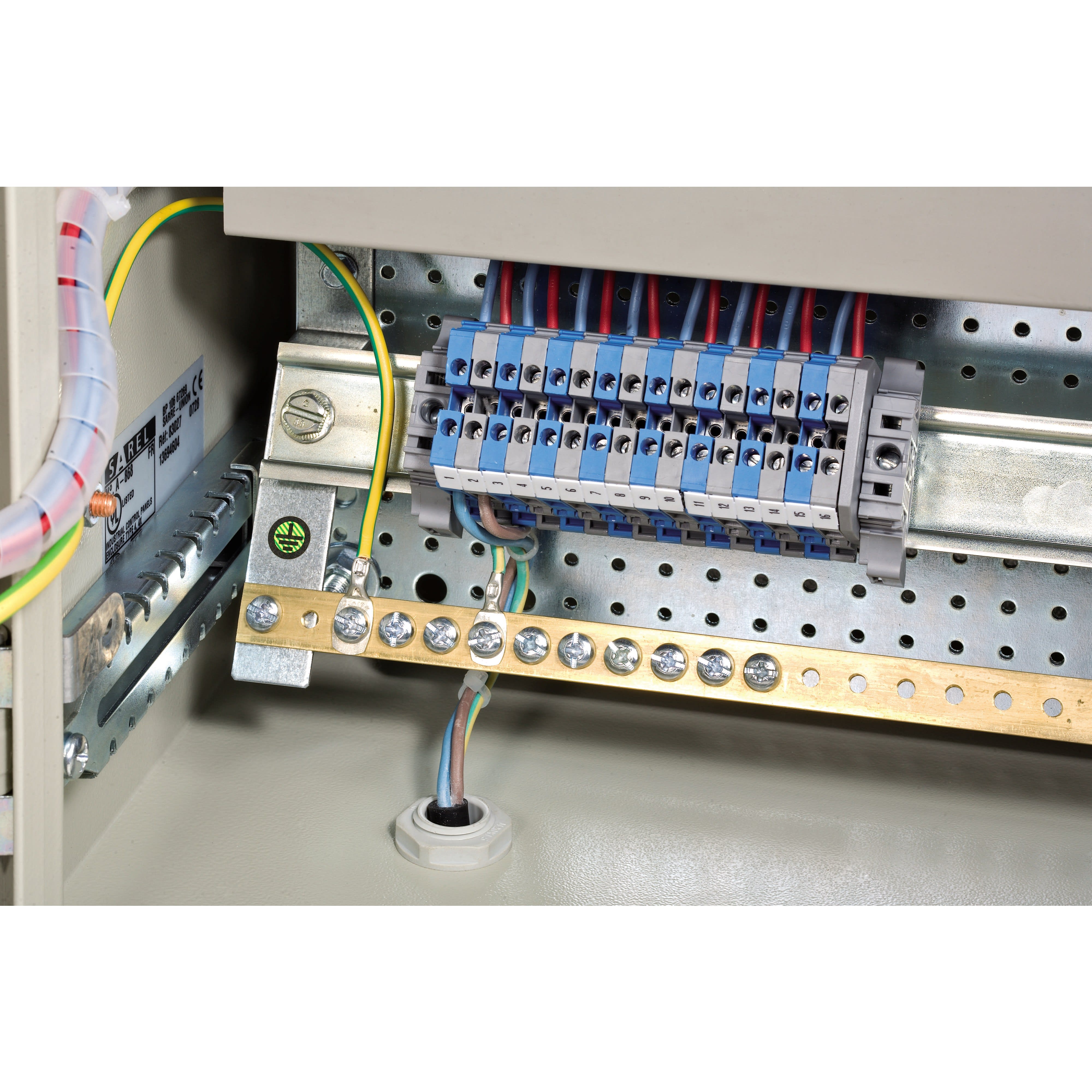 PanelSeT - Thalassa - jeu de 2 supports borniers & barre masse - longueur : 110mm - avec élements de fixation, 2 cosses - montage : barre de mise à la terre, rail DIN