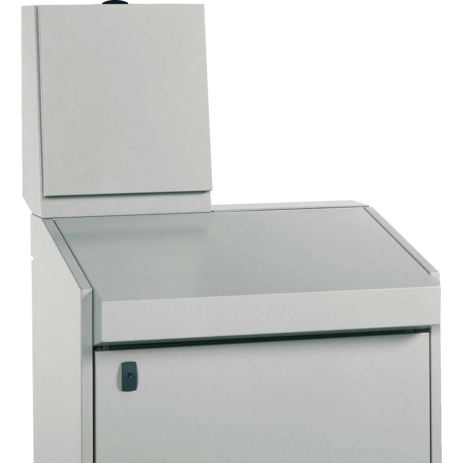 Ce couvercle de console à charnières est en tôle d'acier grise de 1,5mm d'épaisseur (RAL 7035) pour PanelSeT SD. La console est équipée d'un compas d'ouverture pneumatique avec angle d'ouverture de 75°. Il se fixe sur le dessus du pupitre. Le verrouillage se fait par serrure double barre de 3mm. La protection anticorrosion est assurée par un revêtement en poudre époxy-polyester. Le kit est composé de 1 porte, 1 carrosserie, 1 serrure et 1 retenue. Son indice de protection est IP55 conformément à la norme CEI 60529. L'indice de protection mécanique est IK10 conformément à la norme CEI 62262.