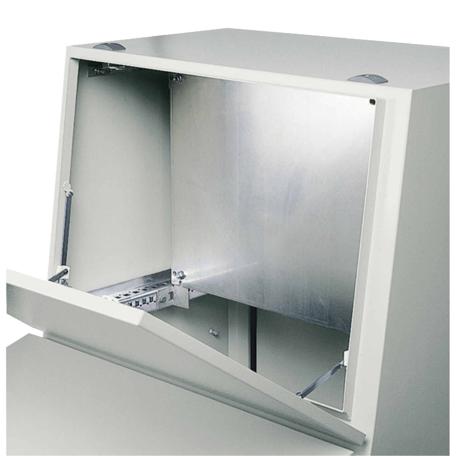 Ce pupitre de contrôle sur pied PanelSeT SD dispose d'une console et d'un pupitre (1400mm (hauteur), 1000mm (largeur) et 845mm (profondeur)). La structure monobloc est pliée et soudée en acier de 1,5mm. Le coffret est composé d'une structure, 4 rails de réglage, 1 plaque passe-câbles, 2 compas pneumatiques pour couvercle de bureau, une porte de console avant. Il contient 2 béquilles mécaniques pour porte de console avant, 6 serrures pour porte avant, 1 serrure à poignée pour porte arrière, 2 portes avant et 2 portes arrière. Les portes avant et arrière sont facilement démontables et réversibles, avec une ouverture à 120°. Le verrouillage fait par serrure à poignée, double barre 5mm et serrure 2 points, double barre 3mm. La plaque de montage n'est pas incluse. Il dispose d'une plaque passe-câbles d'entrée, avec joint en polyuréthane. La protection anticorrosion est assurée par un revêtement en poudre époxy-polyester. Il est gris (RAL 7035). Son indice de protection est IP55 (IEC 60529). Son indice de protection mécanique est IK10 selon IEC 62262.