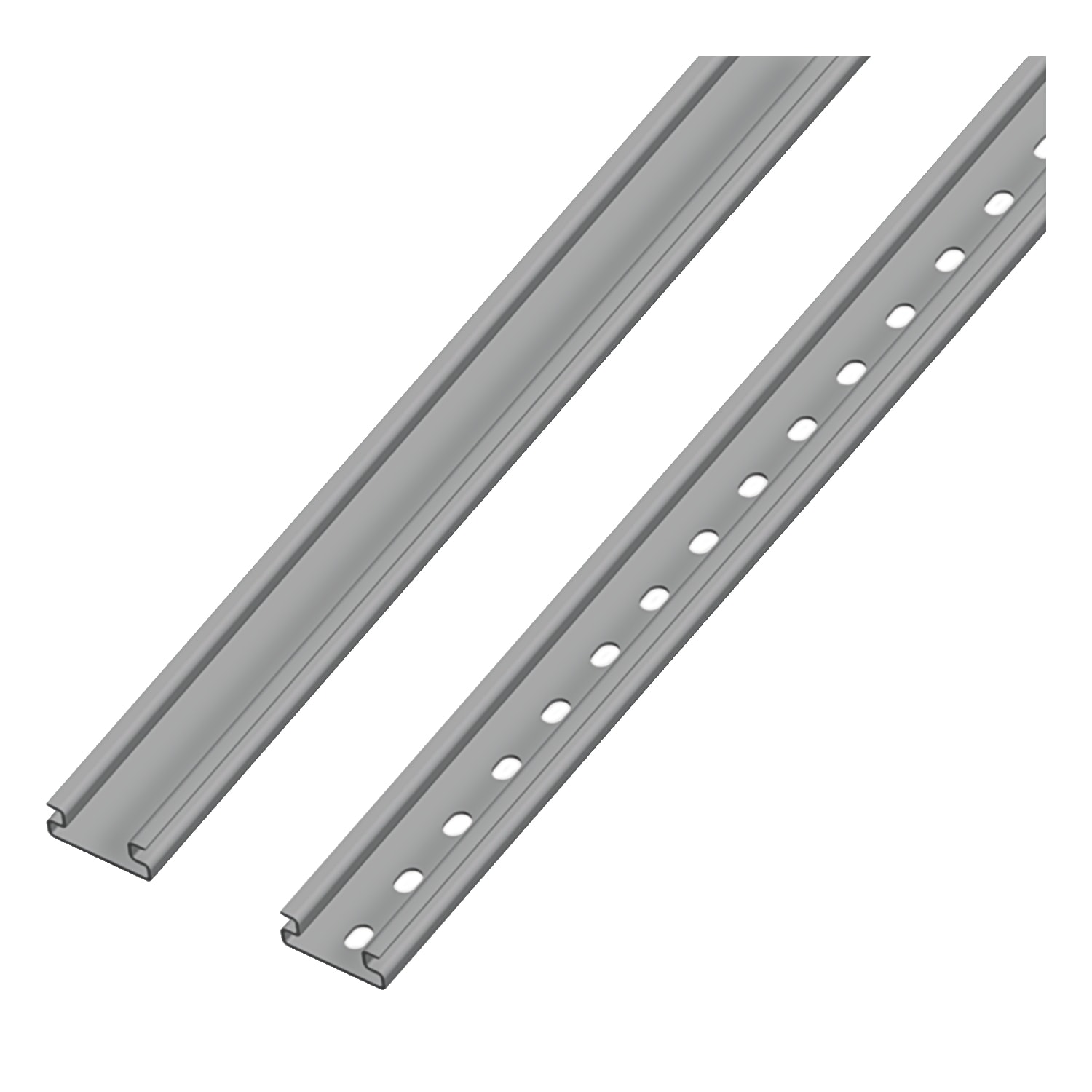 Ce lot contient 10 rails DIN double profil. Le rail est en acier galvanisé non perforé de 1,5mm.