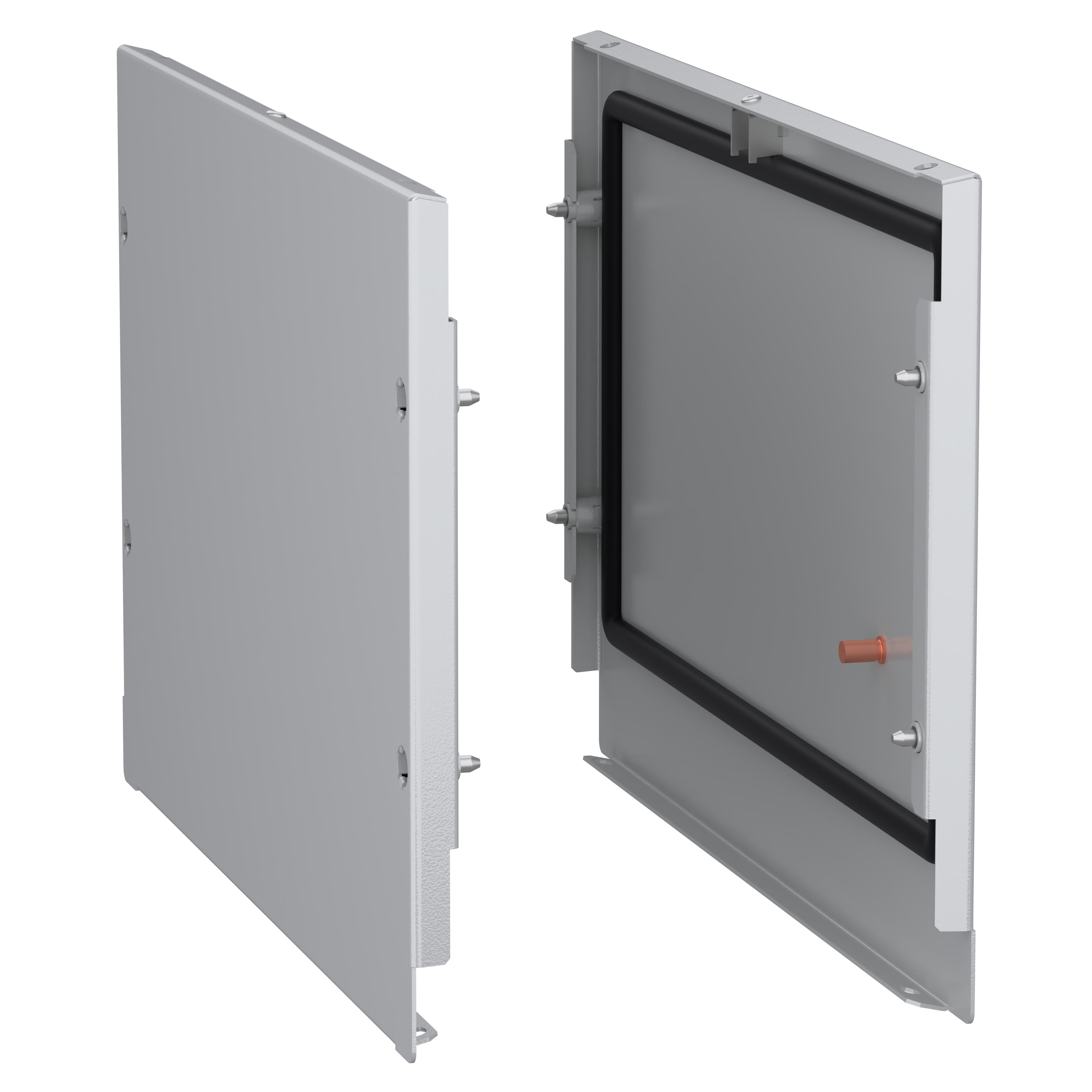 Ces deux panneaux latéraux en acier sont adaptés pour assembler une chambre de jeu de barres supérieure PanelSeT SFN. Ils ont une hauteur et une profondeur nominales de respectivement 300 mm et 500 mm. Les panneaux sont en tôle d'acier. Une finition en poudre époxy-polyester donne un aspect lisse. Ils sont de couleur grise (RAL 7035).