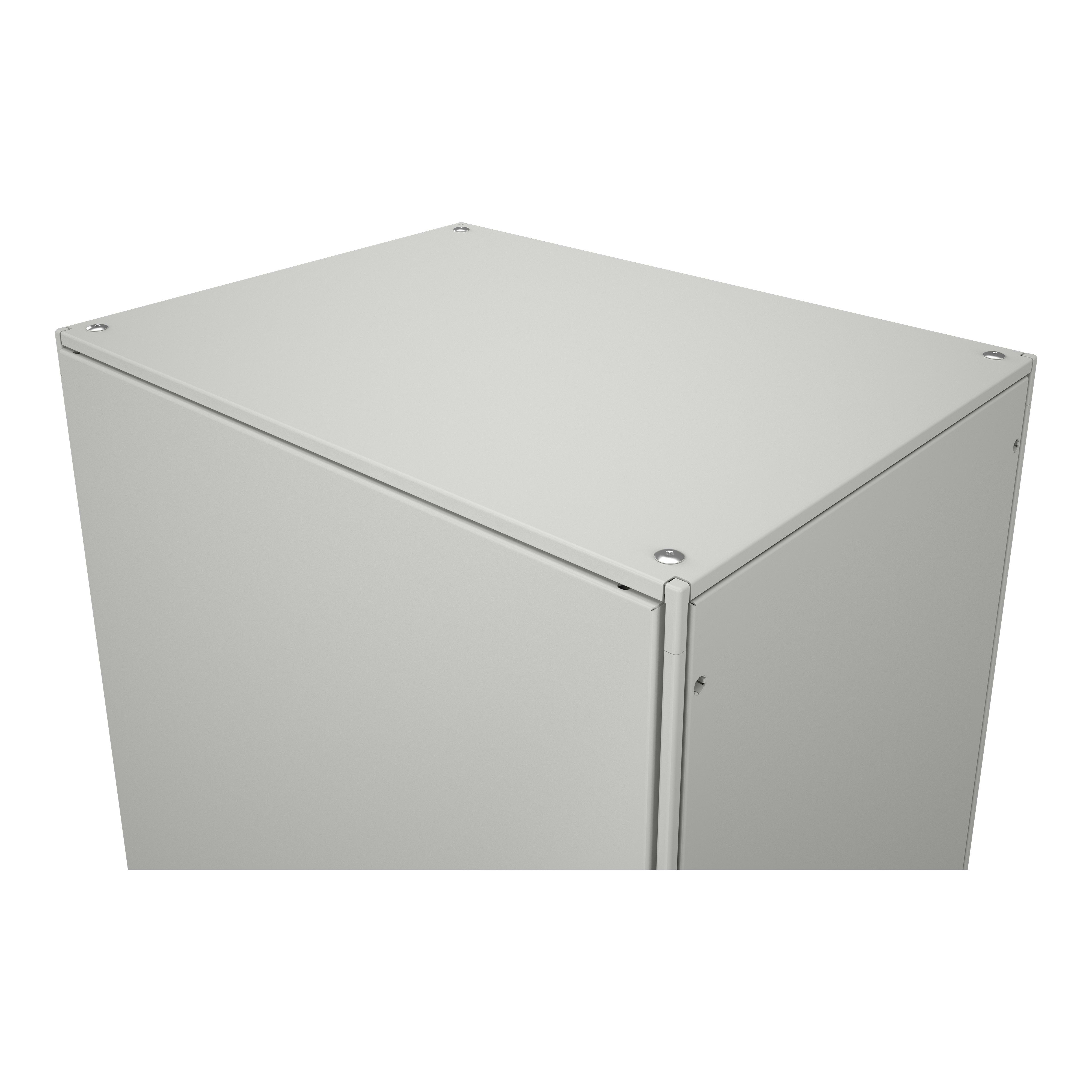 Ce toit est une pièce de rechange pour l'armoire électrique modulaire en acier décarbonisé PanelSeT SFN. Il a une largeur et une profondeur nominales de 800 mm et 600 mm respectivement et est fabriqué en tôle d'acier avec une finition en poudre époxy-polyester lui conférant un aspect lisse.