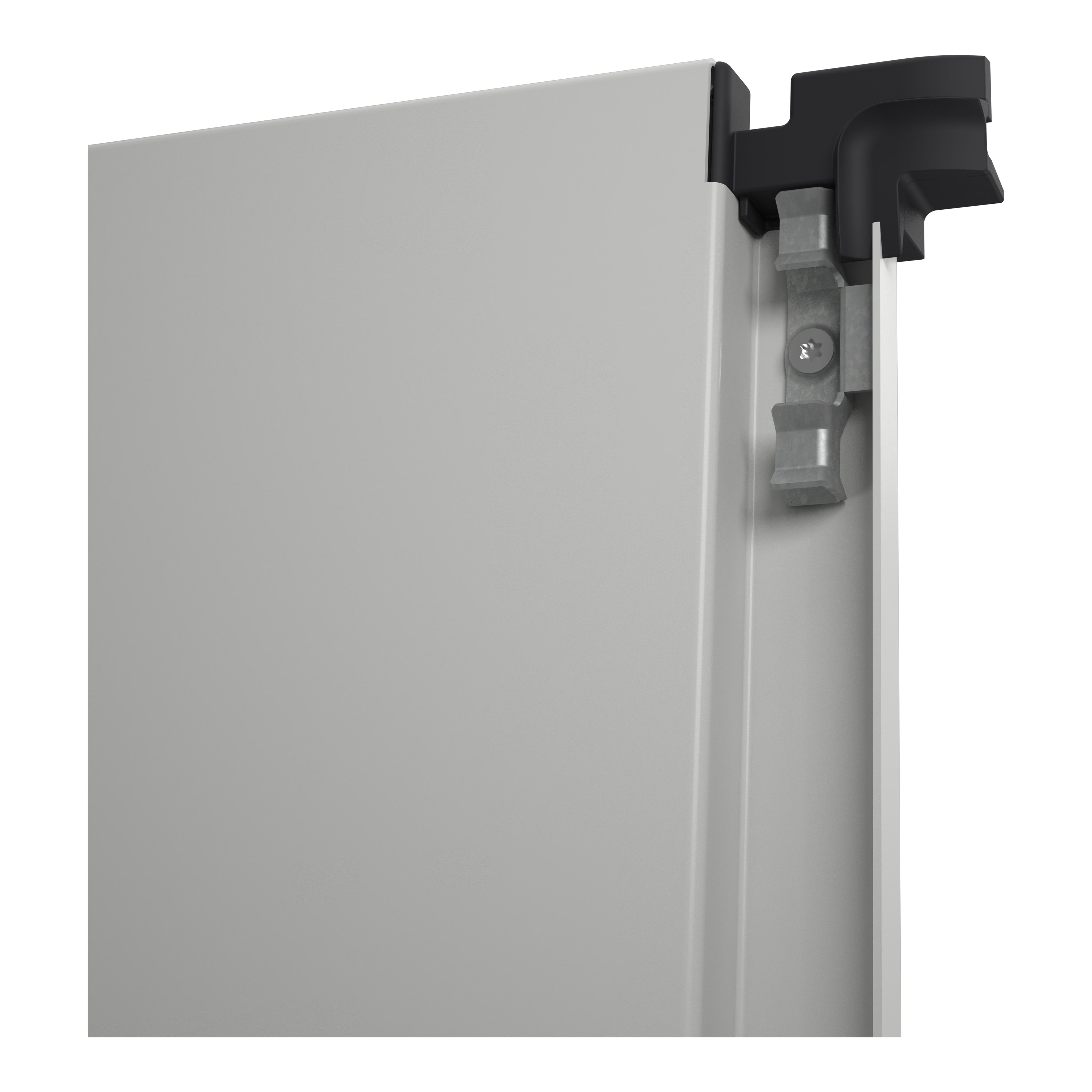 Ce PanelSeT SFN est une armoire électrique modulaire en acier décarbonisé à double porte qui convient aux applications polyvalentes. Elle contient de l'acier recyclé, produit à partir d'énergies renouvelables, ce qui entraîne une réduction significative des émissions de CO2. Sa hauteur, sa largeur et sa profondeur nominales sont respectivement de 2000 mm, 800 mm et 600 mm. Le cadre et les montants de l'armoire sont en acier galvanisé pour plus de durabilité. Les portes et panneaux sont en tôle d'acier, tandis que la poignée est en polyamide 6 avec 30% de fibre de verre. Une finition en poudre époxy-polyester donne un aspect lisse. L'armoire est de couleur grise (RAL 7035) avec une poignée noire (RAL 9005). Deux portes pleines, un panneau arrière, un toit, deux rails coulissants et un jeu de supports pour le châssis de montage à fixation rapide. Les portes ont une ouverture jusqu'à 120 degrés. La porte principale est munie d'une serrure à quatre points avec une poignée munie d'un insert double barre de 5 mm pour des raisons de sécurité, tandis que la porte secondaire est équipée d'un système de barre de verrouillage avec poignée. Le boîtier est classé IP55, ce qui le rend résistant à la poussière, à l'eau et à l'huile. L'armoire est également résistante aux chocs, avec un indice IK10. Le fonctionnement est pratique grâce à l'accès par l'arrière, l'avant et le côté.
