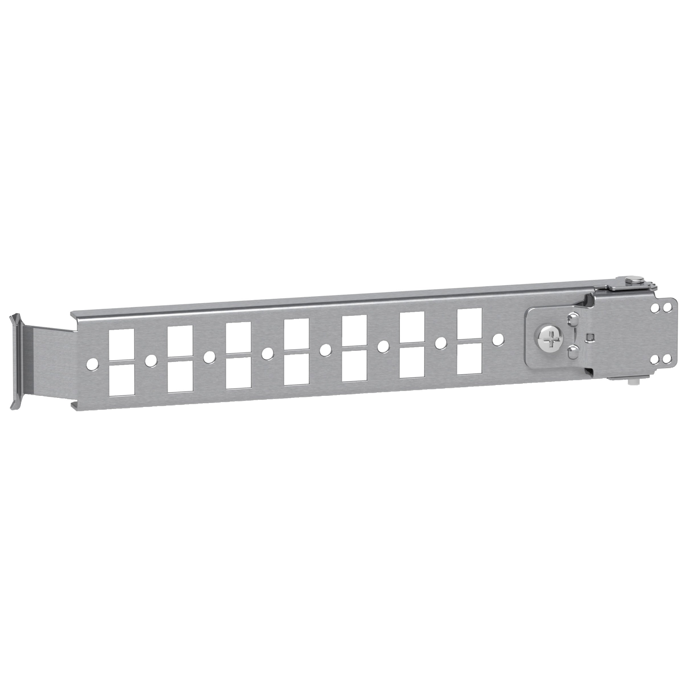 Ce rail de montage en acier zingué est à utiliser avec le boîtier compact PanelSeT S3D et le boîtier compact PanelSeT CRN d'une profondeur de 250mm. Il peut être fixé sur les côtés du boîtier et en haut et en bas du boîtier. Le kit est composé d'un rail et un sachet de fixation. La charge maximale est de 6kg.