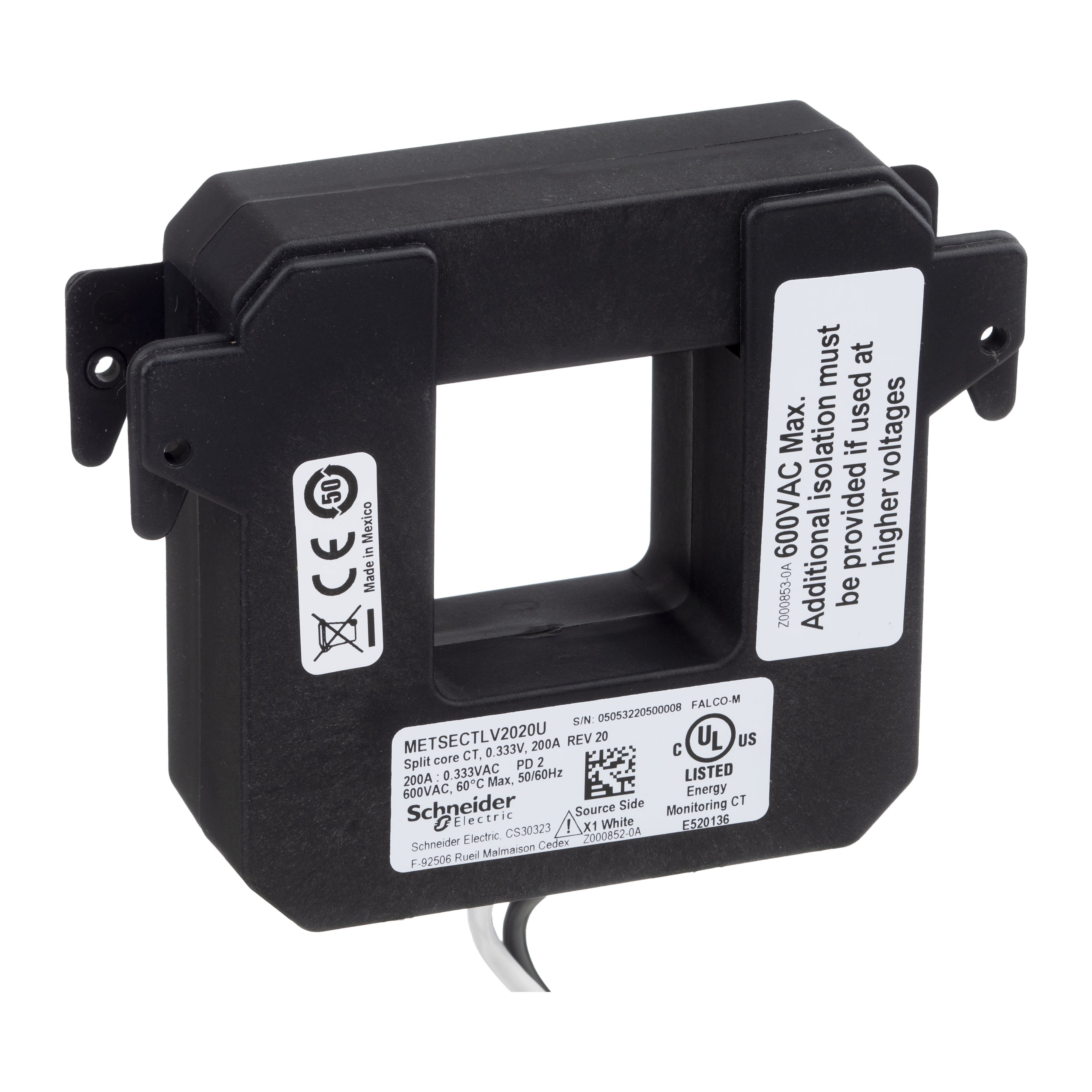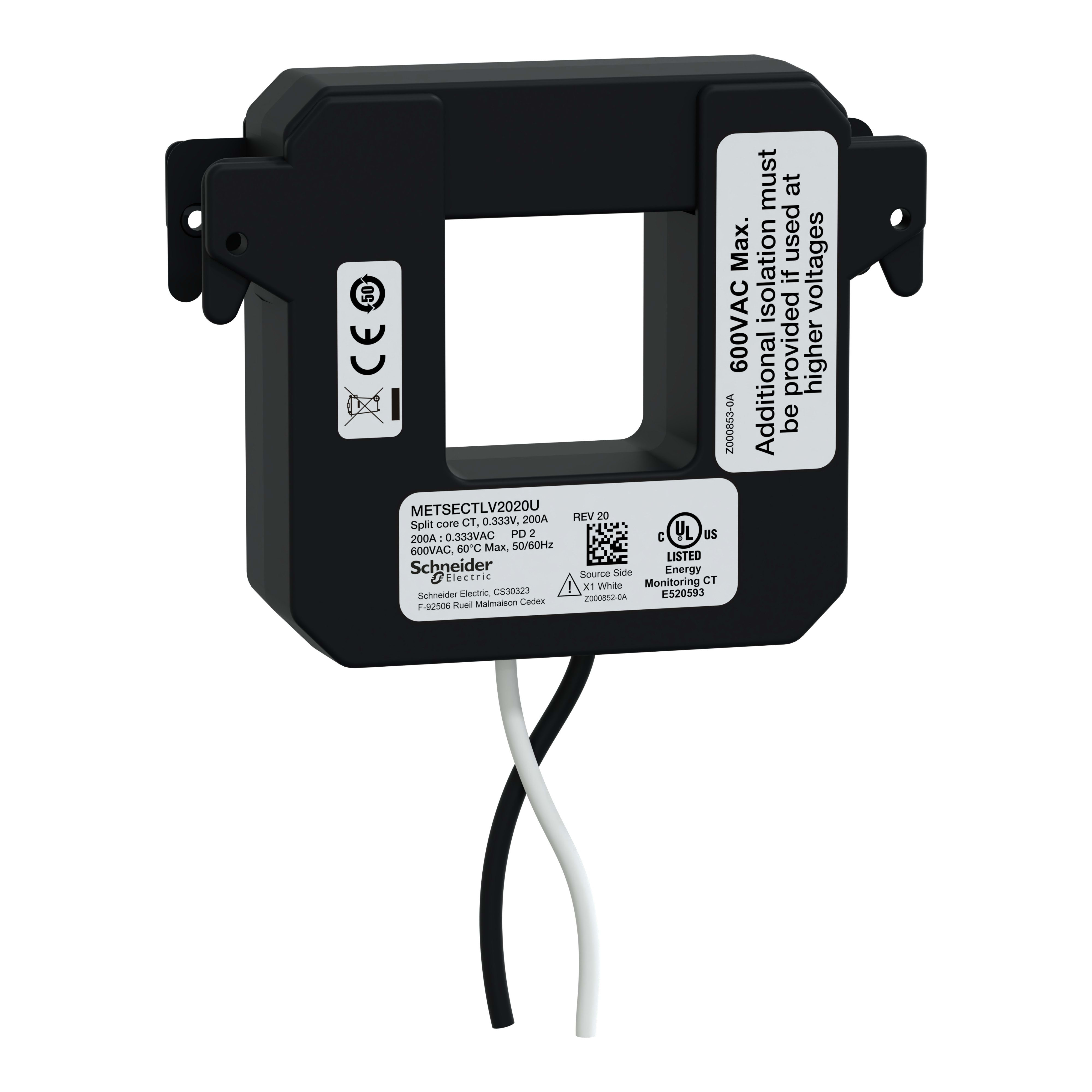 Schneider Electric - PowerLogic - TI ouvrant - T2 - 200A - sortie 0,333V - incompatible entrée 5A - METSECTLV2020U