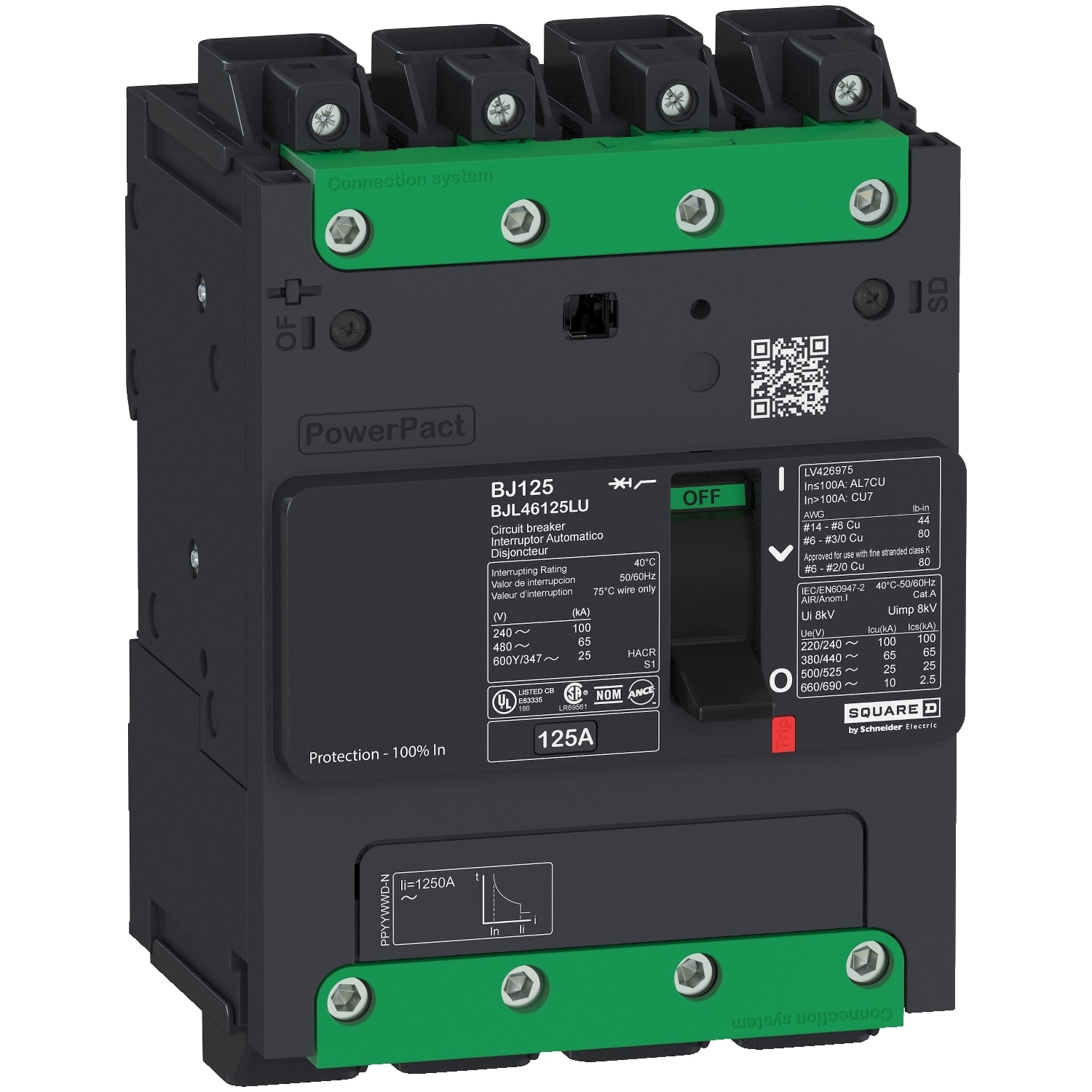 Schneider Electric - PowerPact B - disjoncteur BG - 35kA 600Y/347V - TM20D - 4P - Everlink - BGL46020LU