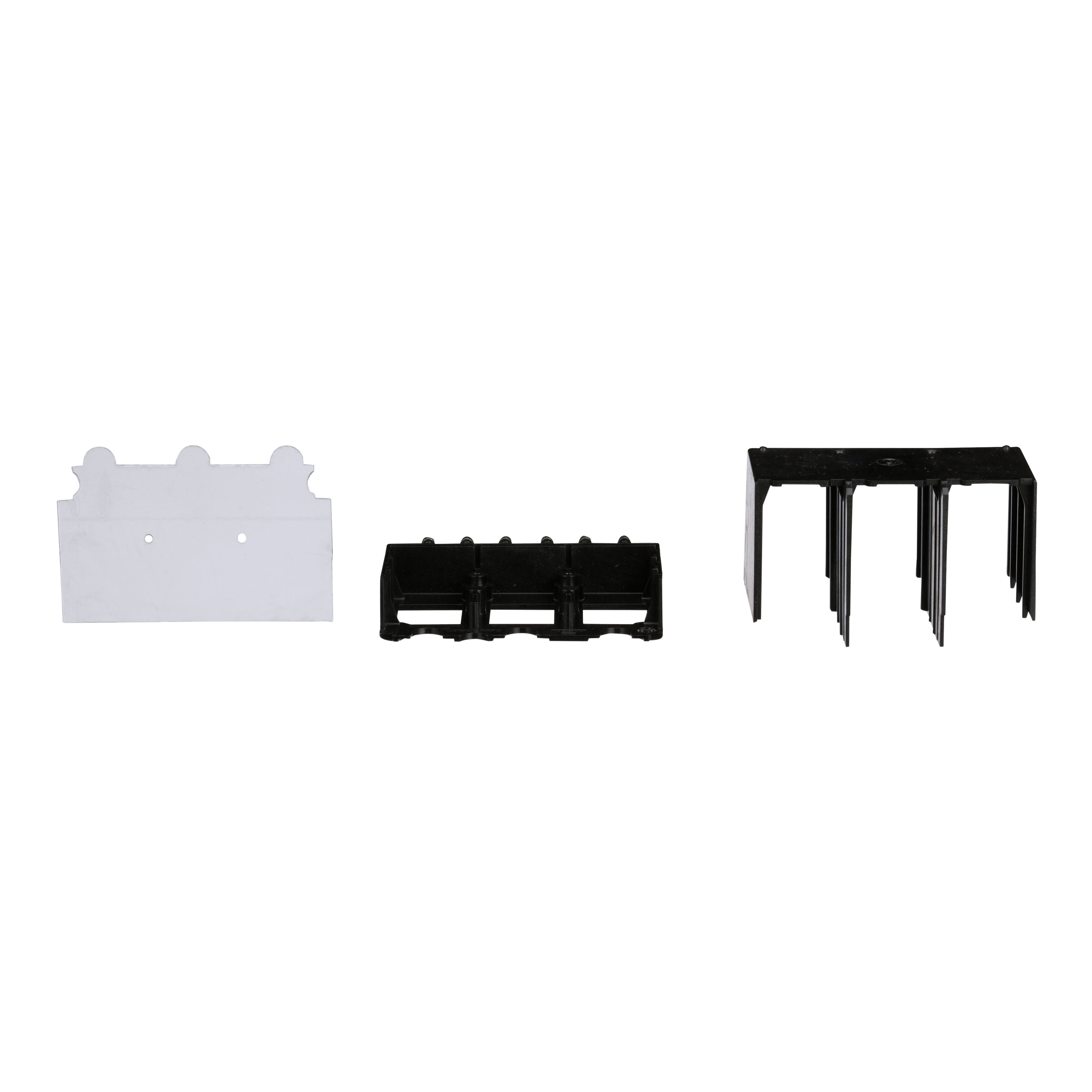 TeSys™ GV5PB/GV6PB est une gamme constituée de disjoncteurs de protection moteur tripolaires UL 489 qui, lorsqu'ils sont combinés à un contacteur, constituent un circuit de dérivation complet. Elle permet d'économiser de l'espace sur le panneau et simplifier l'installation grâce à une solution à deux composants. Cette gamme de produits inclut une classe de déclenchement sélectionnable 5/10/20 et un temps de court-circuit réglable de 5 à 13 fois Ir. Les solutions couvrent une gamme de besoins d'applications allant du contrôle compact et rentable au contrôle avancé et à l'alarme prédictive. Choisissez la meilleure offre en fonction des besoins de votre application. Les cache-bornes sont utilisés pour le raccordement frontal avec des câbles ou des barres isolées. Ils sont constitués de deux parties assemblées par vis imperdables, formant un capot IP40. La partie supérieure est équipée de grilles coulissantes pour une adaptation précise aux câbles ou barres isolées. La partie arrière obstrue complètement la zone de connexion. Les cache-bornes peuvent être montés en amont et en aval du disjoncteur. Cette protection est destinée à un disjoncteur 3P.