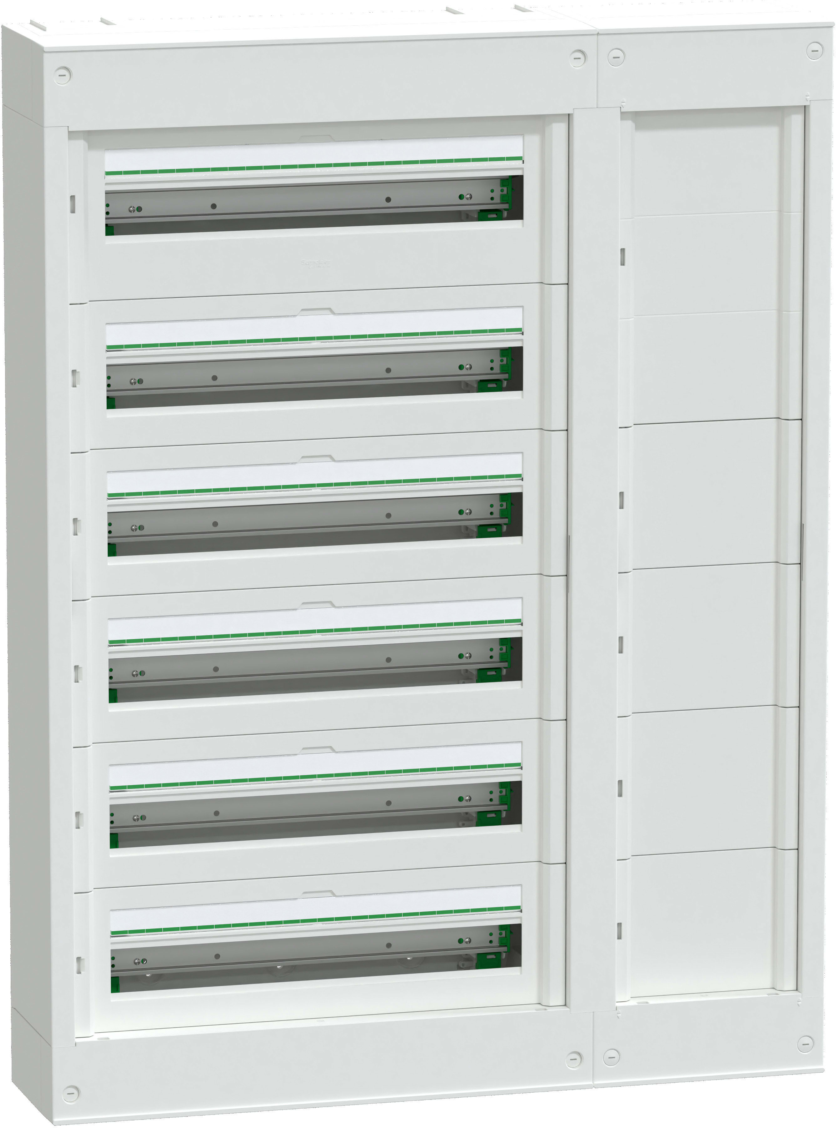 PrismaSeT S - coffret saillie plastique & métal 6 rangées 24 modules avec gaine - Largeur: 820 mm | Profondeur: 191 mm | Hauteur : 1108 mm - RAL9003 - IP30 sans porte | IP 40 avec porte - IK 08 sans porte | IK09 avec porte - Classe 2