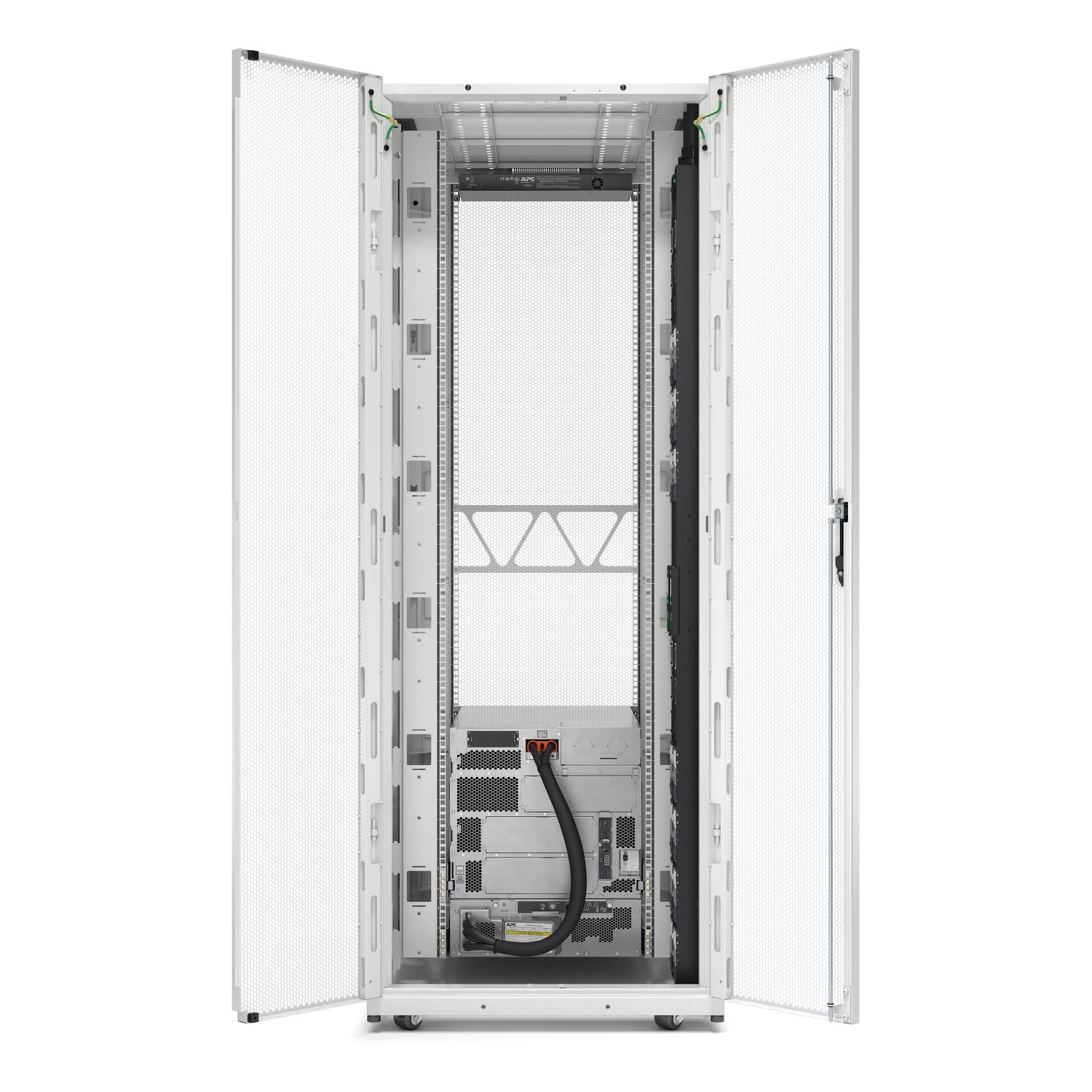Le rack APC Netshelter SX Enclosures est fiable, polyvalente et conçu pour les environnements informatiques exigeants. Avec des capacités de charge plus importantes et plus d'espace pour les équipements, il permet une plus grande densité informatique. Il est possible de choisir parmi les options standard, large, extra large et grande profondeur. L'aspect moderne est parfait pour les colocations et les entreprises en contact avec la clientèle. Le rack permet une simplification du workflow grâce à un accès facile au câblage et à l'équipement, et une optimisation de la circulation de l'air et de la gestion des câbles grâce à notre large gamme d'accessoires APC Les portes s’ouvrant à 270° (180° en baie) permettent de maintenir les allées libres, tandis que la perforation de 80 % des portes améliore la circulation de l'air pour les serveurs haute puissance. Construit de manière durable tout en acier, il dure des années et peut être utilisé pour diverses applications. Il affiche également un taux de décarbonisation de 3,3 % et est livré dans un emballage solide et recyclable.