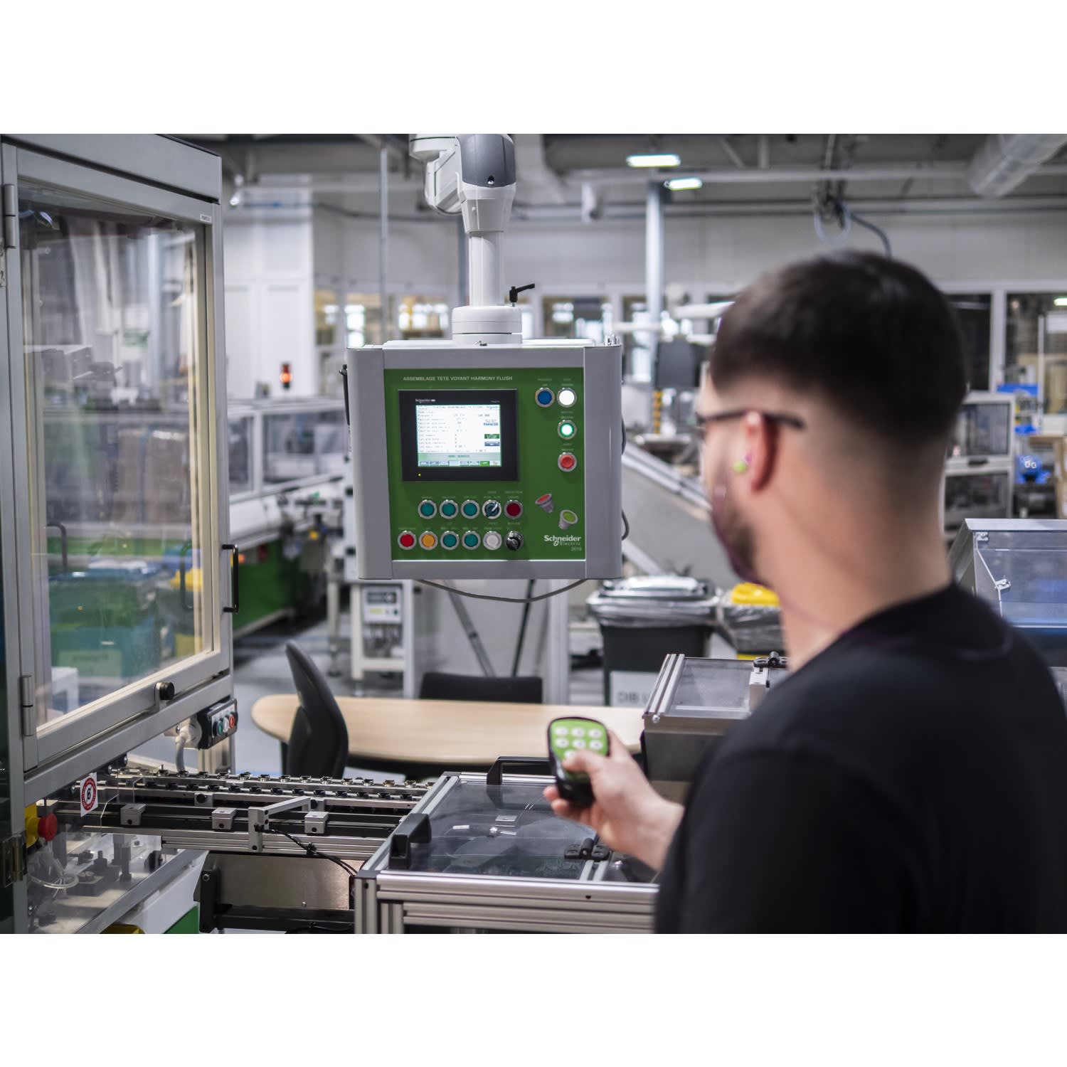 Cette interface sert de récepteur pour le système de télécommande sans fil. Il dispose de 5 sorties relais avec 2 relais de sécurité et d'un presse-étoupe à connexion filaire. Avec sa haute résistance aux chocs, à la poussière, à l'eau, à la corrosion et aux vibrations, il fonctionne dans les environnements difficiles (indice IP66).