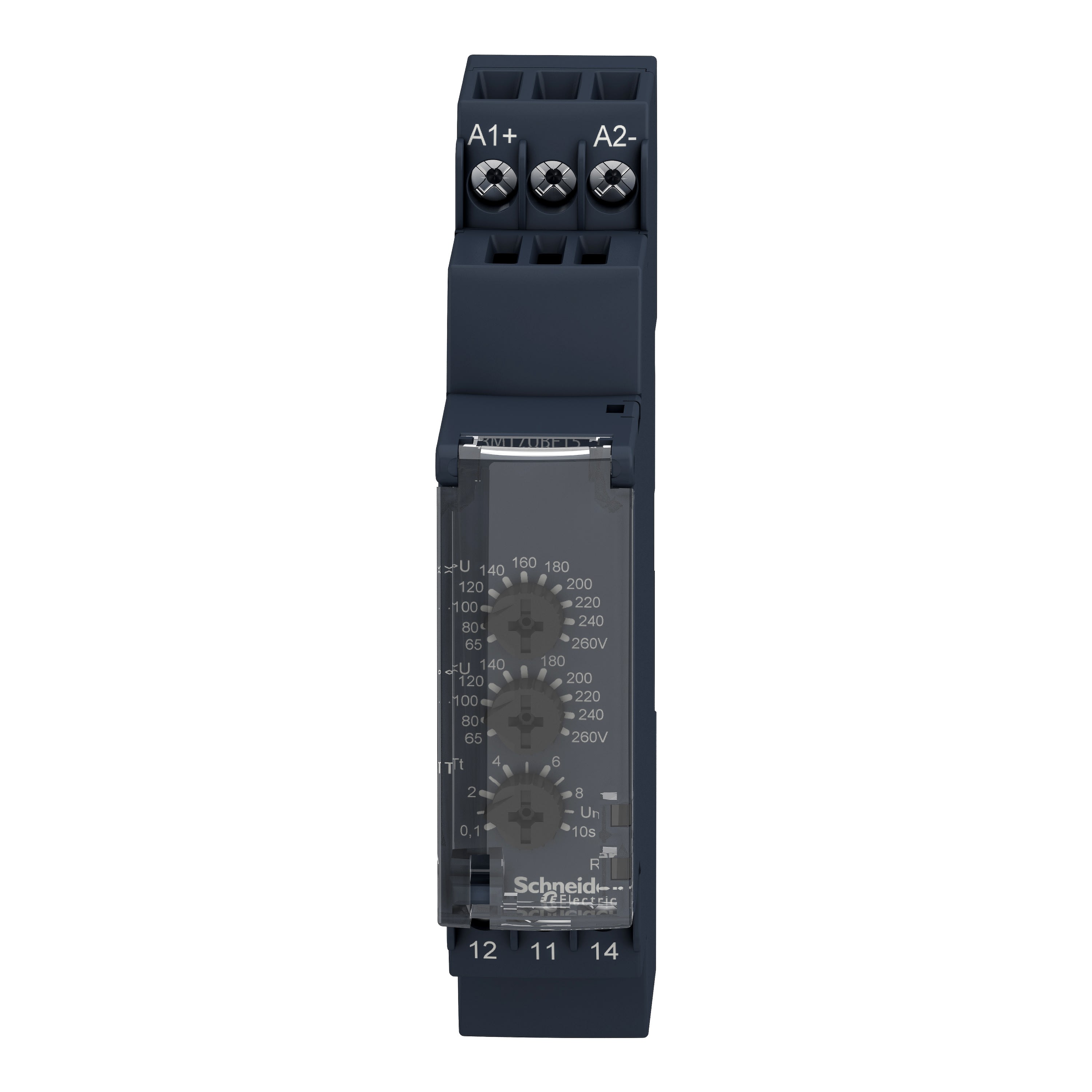 Réemploi - Harmony control - relais de contrôle de la tension - sur ou sous tension 65..260V AC DC - RM17UBE - larg. : 17,5mm- IP20 (bornes) IP30 (gaine)- 1250VA - temporisation : réglable 0,1…10 s, +/-10 % lors du dépassement du seuil