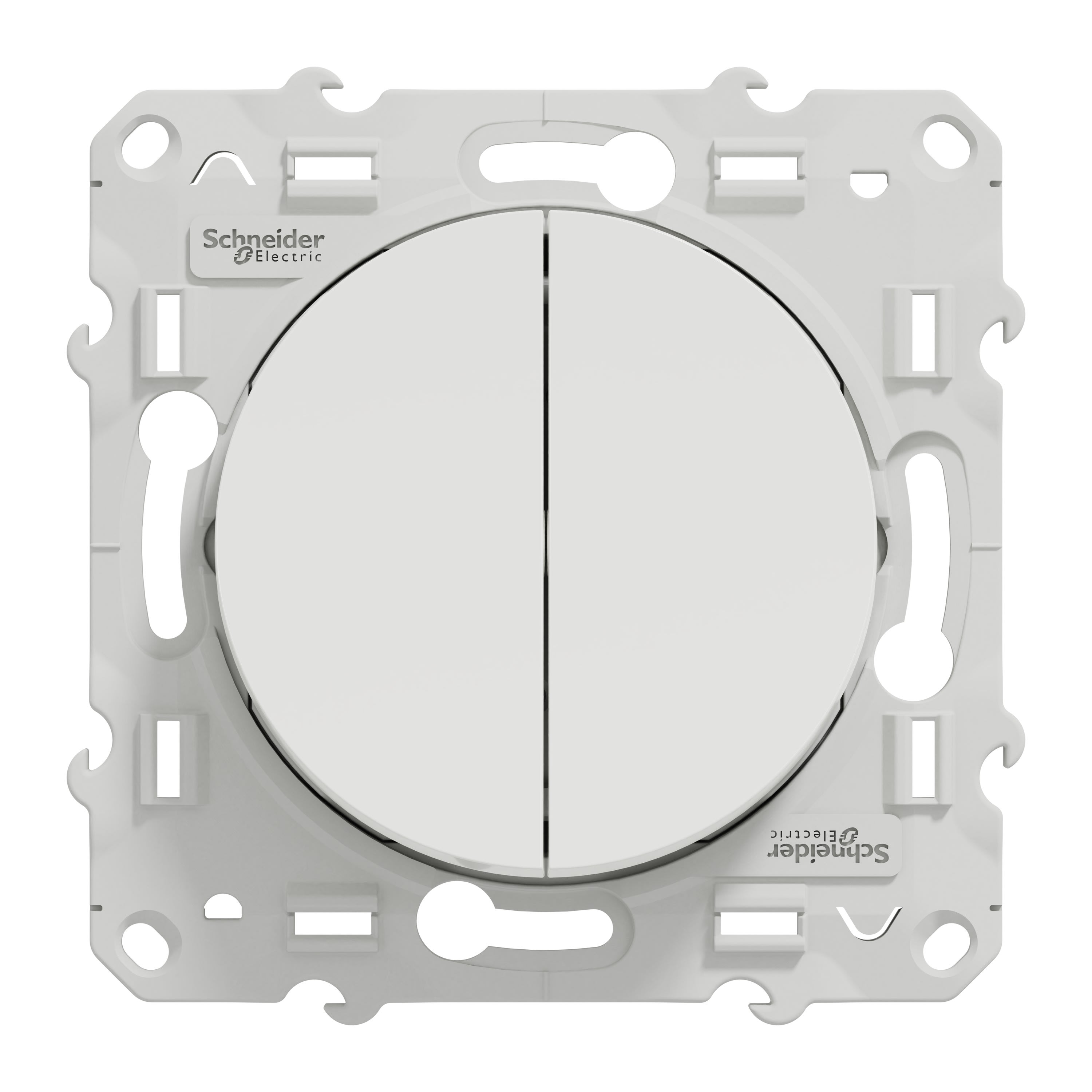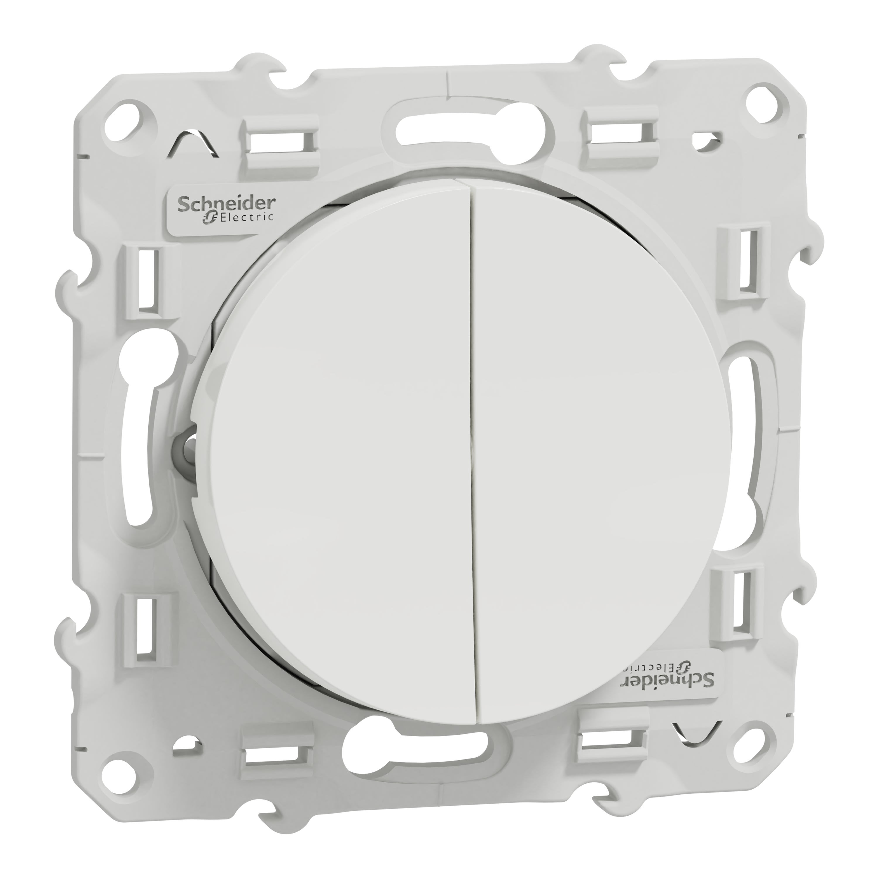 L'interrupteur à bouton-poussoir Schneider Electric Odace S520227 est un mécanisme avec cadre de fixation en plastique de couleur blanche Constitué de PBT (polybutylène téréphtalate) GF30, PC (polycarbonate) GF10 FR, matériau thermoplastique ABS-UV stabilisé, cet interrupteur à bouton-poussoir est assez fiable et résistant La finition de surface est brillante, procurant une sensation élégante et haut de gamme à une pièce Il mesure 71 mm de largeur, 71 mm de hauteur, 33,6 mm de profondeur, avec une profondeur d'encastrement de 18,75 mm Le produit pèse 0,04 kg En outre, il est sans halogène, ce qui est bon pour votre santé Cet interrupteur à bouton poussoir Odace possède 2 bascules Son courant nominal est de 10A This product is sold in set of 5. What's more, it well satisfied the standard of 2006/95/EEC, EN 60669-1. Also, it is environment-friendly, with UV resistant, acetone, alcohol, ammonia, bleach, liquid soap, oil, petrol, window-cleaning fluid reached. The dielectric strength of this push-button switch is 2000 V. The Odace range of electrical fittings lets you equip your home with practical, ergonomic solutions for the ultimate in comfort, safety and connectivity. Offering a wide choice of designs and practical accessories, Odace lets you mix and match colors and combinations, to ensure your home interior matches you.