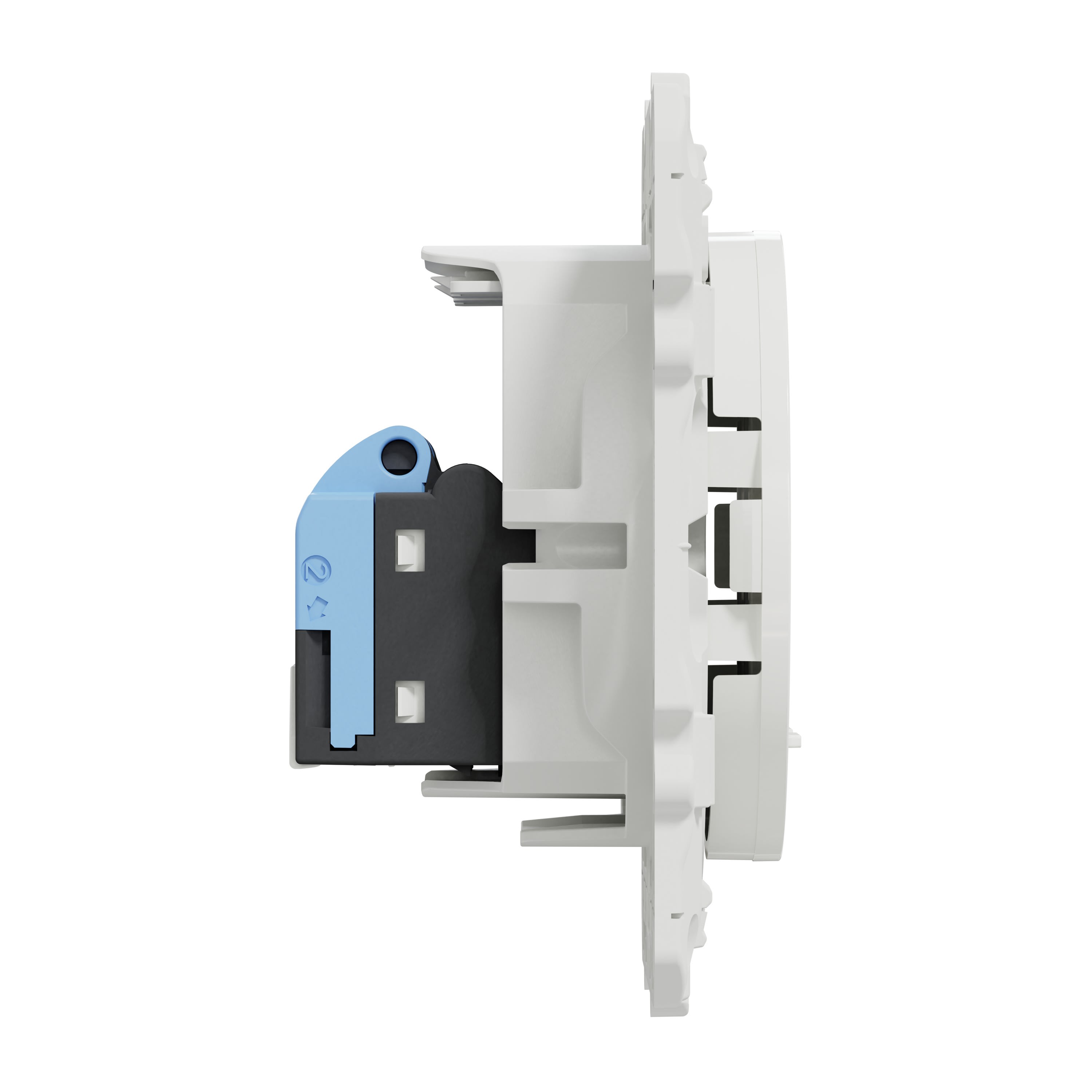 La prise informatique double Odace RJ45 S520485 de Schneider Electric est un mécanisme équipé d’un cadre de fixation en plastique blanc pour la communication de données. Son boîtier de montage adapté peut être encastré dans la surface du mur. Elle est parfaitement conforme aux normes ANSI/TIA/EIA-568-B-2-1, EN 50173-1, IEC 60603-7, IEC 60603-7-5, ISO/IEC 11801. Elle atteint le niveau de protection IK04. Cet appareil est compatible avec Actassi s-one, Infraplus. Fabriquée en PBT (polybutylène téréphtalate) GF30, matériau thermoplastique ABS stabilisé aux UV, cette prise de données est très fiable et résistante. Elle est respectueuse de l'environnement, avec une résistance aux UV, de l'acétone, de l'alcool, de l'ammoniaque, de l'eau de Javel, du savon liquide, de l'huile, de l'essence, du liquide de nettoyage des fenêtres. L'indice de protection IP de cet appareil est IP21D. And it is mercury free as well as heavy metal free, taking care of the environment and your health all the time. It reaches IP21 degree of protection too. Besides, it reaches IK04 protection level, which can help protect against impact. Also, it is environment-friendly, with UV resistant, acetone, alcohol, ammonia, bleach, liquid soap, oil, petrol, window-cleaning fluid reached. Besides it is halogen free halogen free, which is good for your health. The Odace range of electrical fittings lets you equip your home with practical, ergonomic solutions for the ultimate in comfort, safety and connectivity.