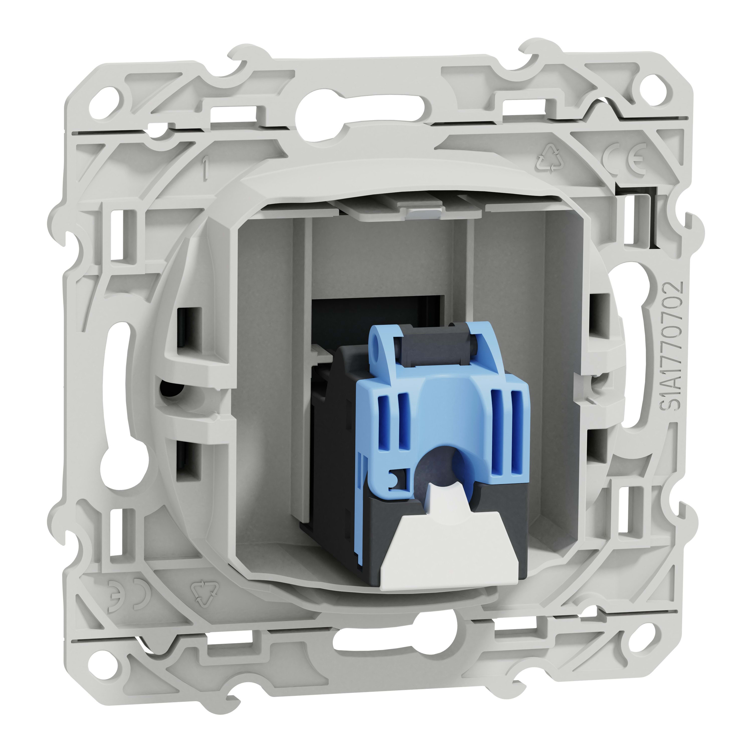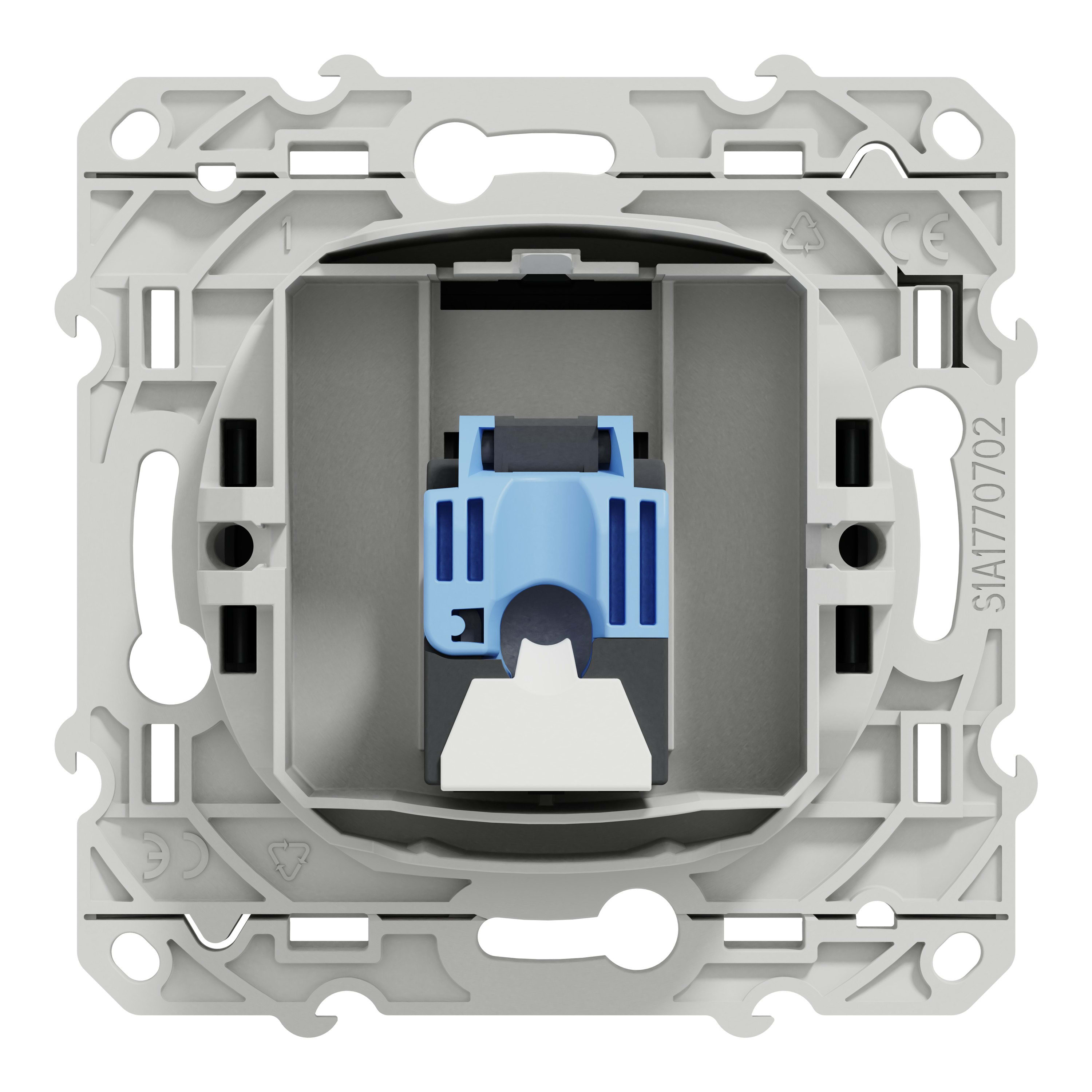La prise de données Odace RJ45 S540475 de Schneider Electric est un mécanisme équipé d’un cadre de fixation en plastique de couleur anthracite pour la communication de données. Son boîtier de montage adapté peut être encastré dans la surface du mur. Ses bornes de raccordement sont IDC. Elle est parfaitement conforme aux normes ANSI/TIA/EIA-568-B-2-1, EN 50173-1, IEC 60603-7, IEC 60603-7-5, ISO/IEC 11801. Cet appareil est compatible avec Actassi s-one, Infraplus. Fabriquée en PBT (polybutylène téréphtalate) GF30, matériau thermoplastique ABS stabilisé aux UV, cette prise de données est très fiable et résistante. La fixation de cet appareil se fait par vis. Afin de prendre soin de l'environnement et de votre santé, il ne contient ni mercure ni métaux lourds. And it is mercury free and heavy metal free, which takes care of the environment and your health as always. The IP rating of this device is IP21. Besides, it reaches IK04 protection level, which can help protect against impact. Also, it is environment-friendly, with UV resistant, acetone, alcohol, ammonia, bleach, liquid soap, oil, petrol, window-cleaning fluid reached. Besides it is halogen free halogen free, which is good for your health. The Odace range of electrical fittings lets you equip your home with practical, ergonomic solutions for the ultimate in comfort, safety and connectivity.