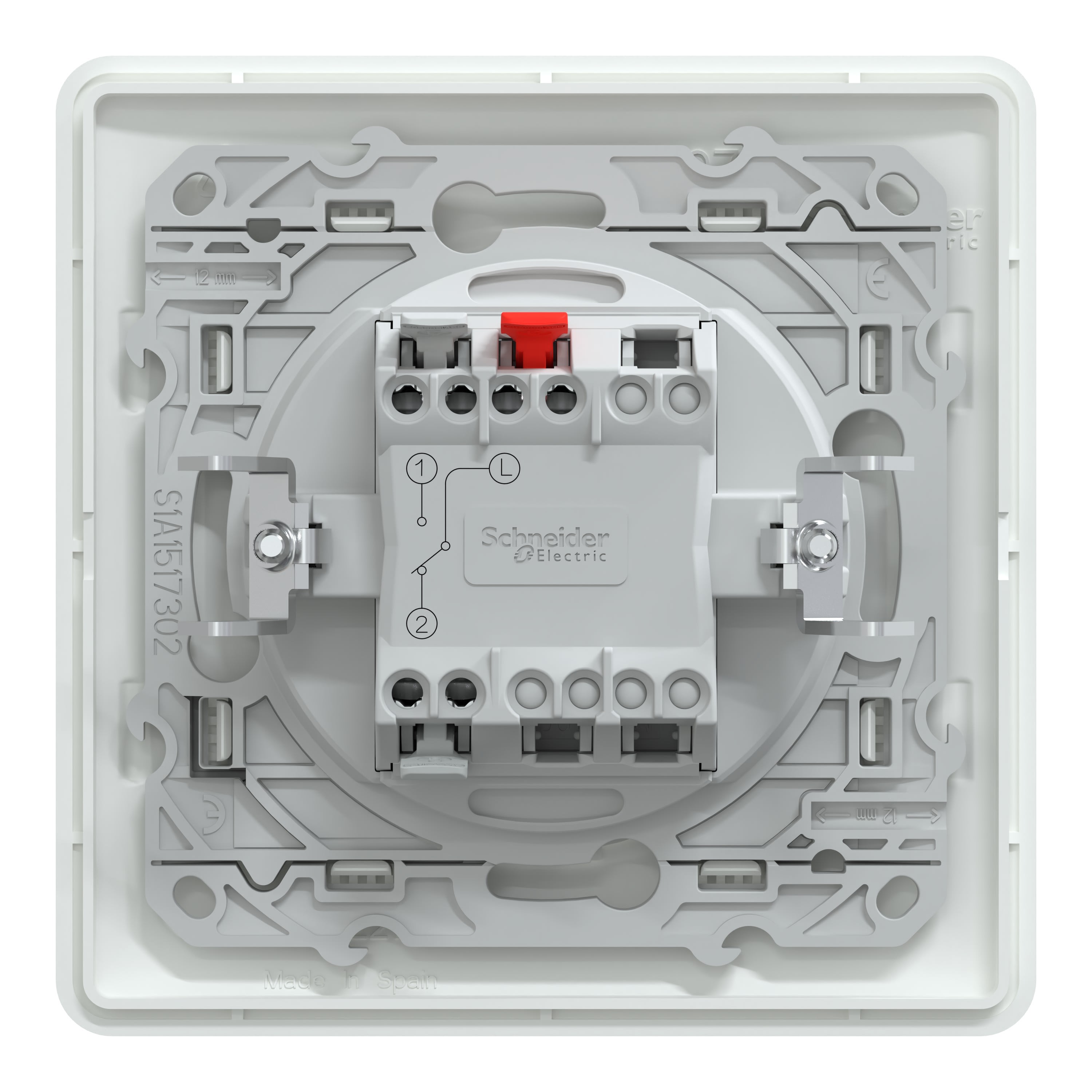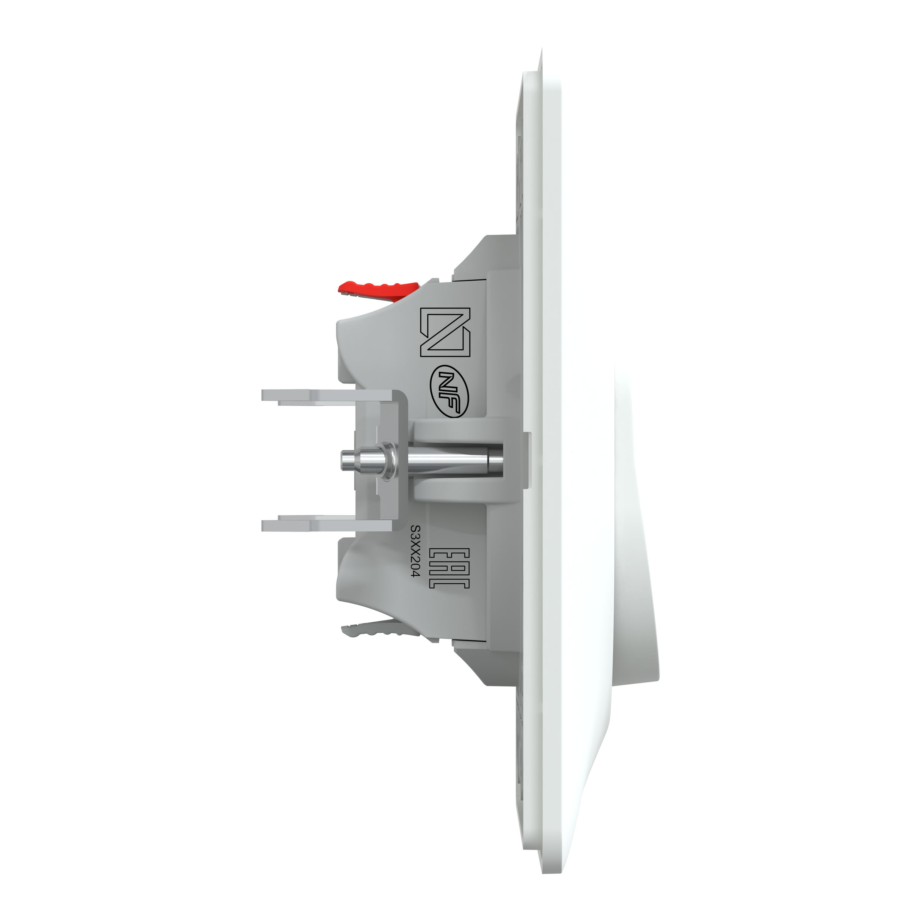 S321204 se compose d'un mécanisme de commande à bascule équipé de griffes, d'un enjoliveur simple et d'une plaque 1 poste blanc mat RAL9010. Son support de fixation intégré permet l'installation sur une boîte et la fixation de sa plaque de finition à acheter séparément. Its contemporary design and its unique signature with the oblong finger will meet your needs for perfect and discreet aesthetic integration. The rated current is 10AX and the rated operational voltage is 250VAC. The power is 100W. Suitable for 1 or 2 cables from 1.5 mm2 to 2.5 mm2. The stripping length is 12 mm. It can be used in both flush and surface installations. The reduced size of the mechanism brings more comfort and speed to the installation. Valid for screws and claws installation. The dimensions are (W) 87mm x (H) 87mm x (D) 33.4mm and the Embedding depth is 26.5mm. It is white color RAL 9003, with a matt finish and rocker made in thermoplastic ABS-UV stabilized, support frame in PBT (polybutylene terephthalate) GF30, casing in PC (polycarbonate) GF10 FR. IP21 and IK04 protection. The storage temperature is from -5 to 50°C and the operating temperature is from 5 to 35°C. It is delivered in individual flow-pack inside a box with 10 pieces. Delivered with fixing frame to be installed in the box. Delivered with the aesthetic cover frame. Ovalis can seduce even the most demanding requirements. Simple, it blends in with any interior design Well-groomed and contemporary. It brings a touch of aesthetics with no risk of a poor combination of tastes. It has international standards and approvals such as 2006/95/EEC, EN 60669-1. This product is certified Green Premium.