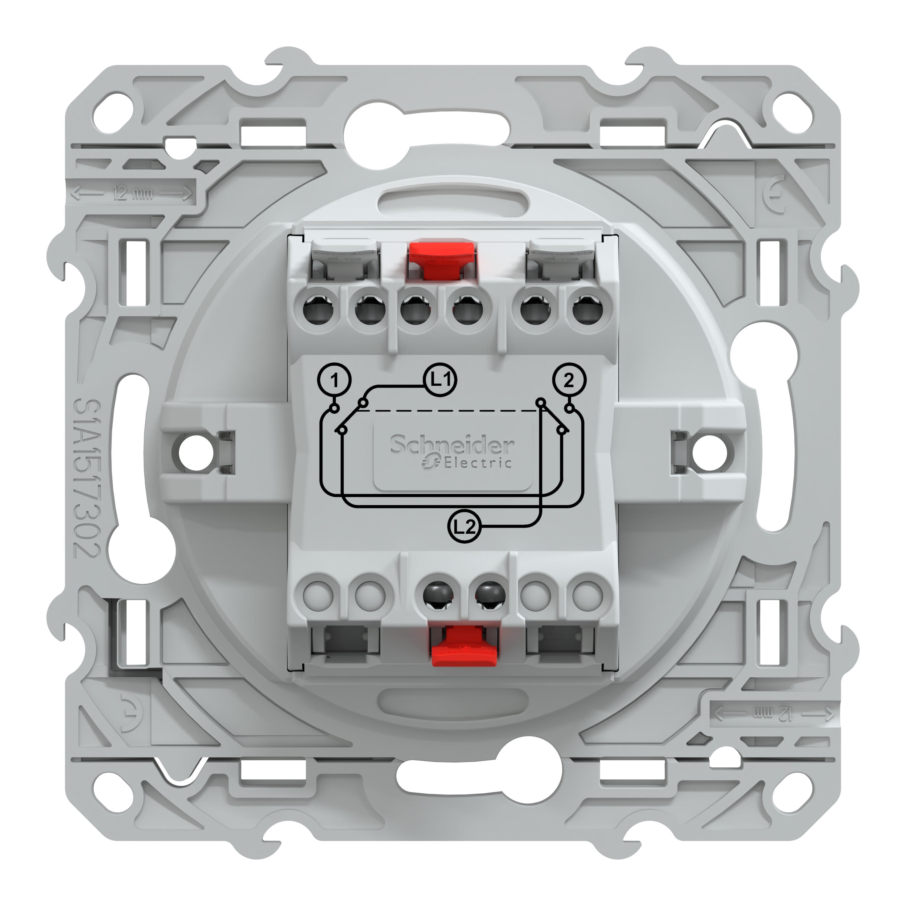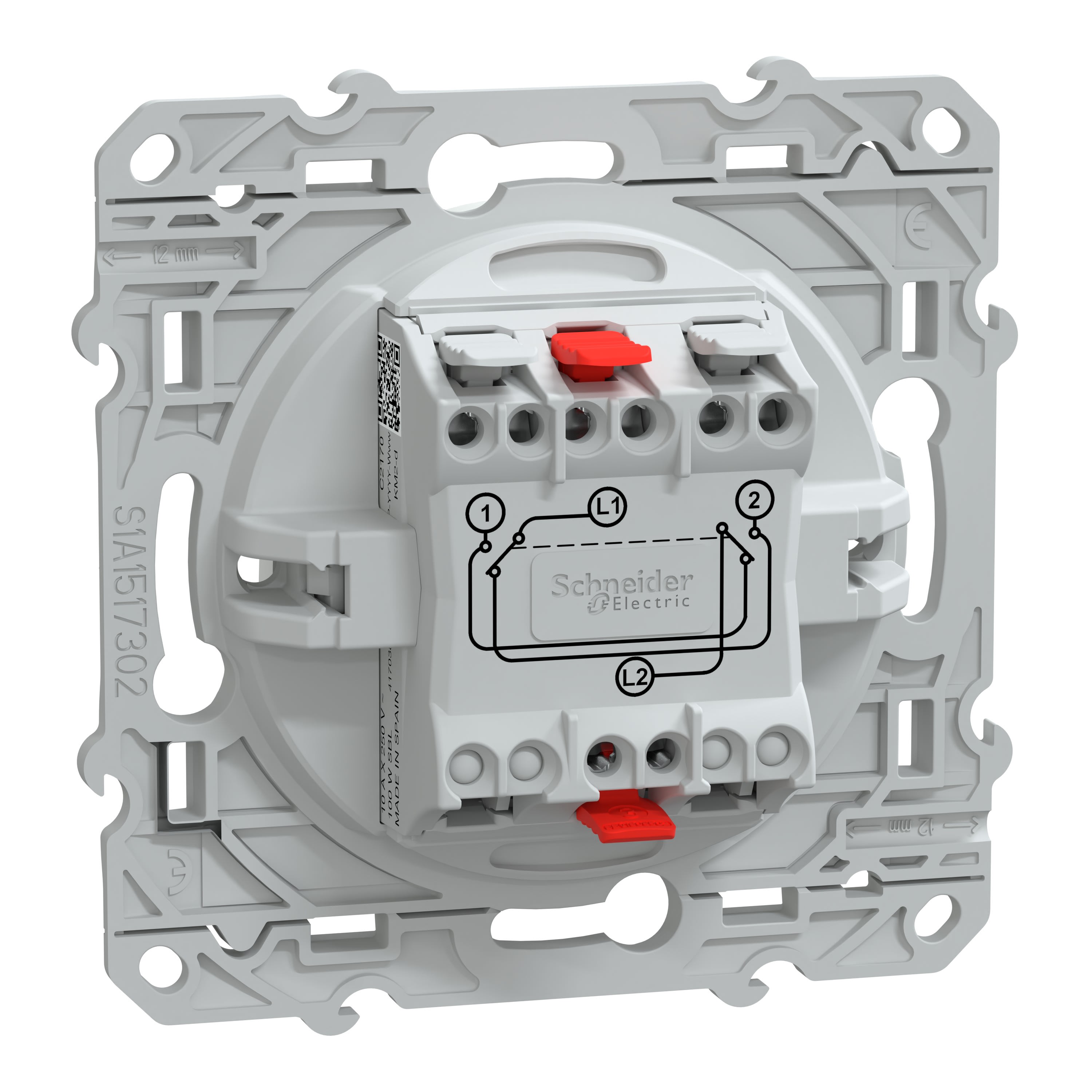 Cet appareil Schneider Electric est un interrupteur intermédiaire Ovalis série C avec cadre de fixation en plastique. Ce commutateur intermédiaire 10AX est utilisé pour contrôler l'éclairage. La taille réduite du mécanisme apporte plus de confort et de vitesse à l'installation. Les boutons de déverrouillage sont ergonomiques et le schéma du commutateur est imprimé au dos pour faciliter le câblage. S320205 se compose d'un mécanisme de commande à bascule et d'une simple bascule blanc mat RAL9003. Son support de fixation intégré permet une installation sur un boîtier standard. La fixation de cet appareil se fait par vis. Peut également être installé avec un accessoire de griffes vendu séparément. Son interrupteur à bascule ergonomique permet une utilisation simple et efficace Son design contemporain et sa signature unique avec le doigt oblong répondront à vos besoins d'intégration esthétique parfaite et discrète Il s'agit d'un commutateur 10Ax à 250V fonctionnant à 50 ou 60 Hz La puissance est de 100 W Convient à 1 ou 2 câbles de 1,5 mm2 à 2,5 mm2 La longueur de dénudage est de 12 mm Il peut être utilisé dans les installations encastrées et saillie. La taille réduite du mécanisme apporte plus de confort et de vitesse à l'installation. Valide pour l'installation des vis et griffes Elle est de 71 mm x 71 mm x 33,6 mm. La profondeur d'encastrement est de 21,05 mm. Il a un poids de 45g Il est de couleur blanche RAL 9003, avec une finition mate et un interrupteur à bascule en ABS thermoplastique stabilisé aux UV, cadre de support en PBT (polybutylène téréphtalate) GF30, boîtier en PC (polycarbonate) GF10 FR Protections IP 21 et IK 04. La température de stockage est comprise entre -5 et 50 °C et la température de fonctionnement entre 5 et 35 °C Il est livré avec un protecteur de peinture. Boîte de préhension de 10 pièces. L’interrupteur est fourni avec le cadre de fixation en plastique à installer dans le boîtier mural. Pour terminer l'installation est nécessaire le cadre de couvercle correspondant qui est vendu séparément. Des griffes en tant qu'accessoires sont disponibles. Ovalis s’adapte à toutes les situations. Simple, il se fond dans n'importe quel intérieur design Soigné et contemporain. Il apporte une touche d'esthétique sans risque de mauvaise combinaison des goûts. S320205 répond aux normes internationales et possède la certification NF.