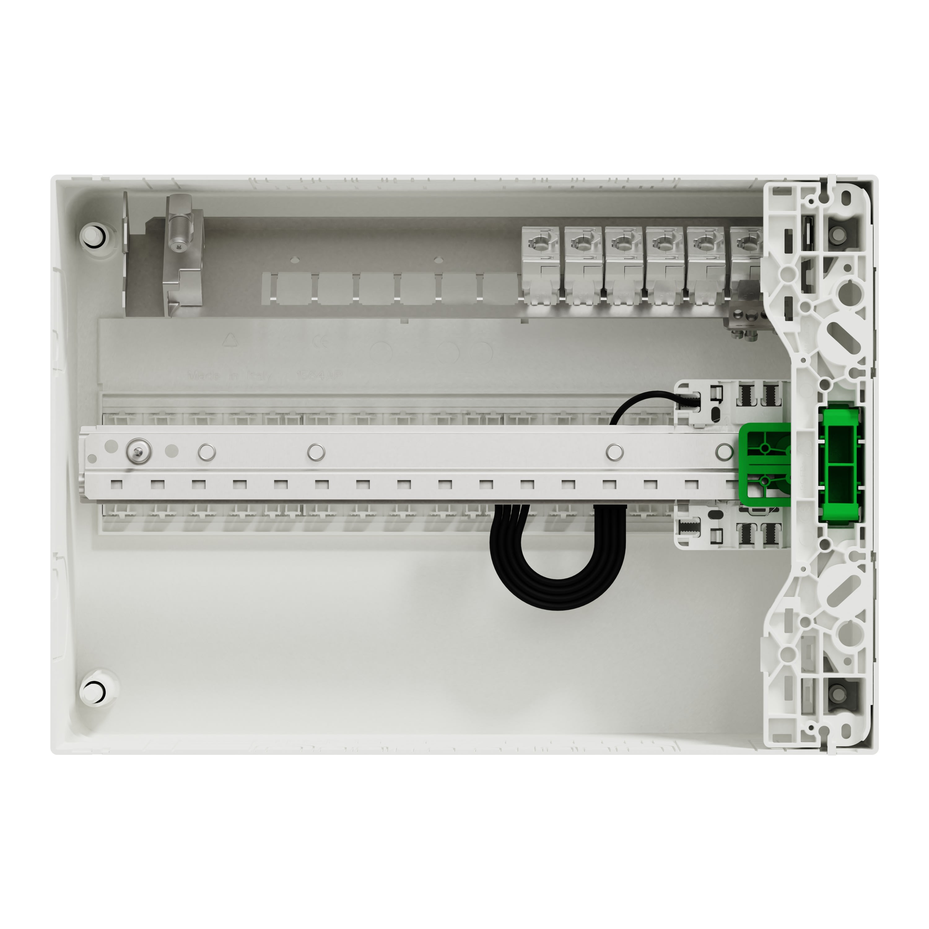 Ce panneau Resi 9 Connect de Schneider Electric est un panneau de communication dédié aux infrastructures de réseau domestique. Le répartiteur TV à 2 sorties est vissé sur le panneau de raccordement et associé à un connecteur coaxial pour une entrée de câble parfaite dans le panneau. Le DTI est monté sur le rail DIN et comprend 4 sorties précâblées. Il est fourni avec 6 connecteurs RJ45 Cat6. Ce dispositif permet un montage en surface ou un montage rapide sur une canalisation Resi9 dédiée. Les dimensions sont (l) 357 mm x (H) 250 mm x (P) 108 mm. La couleur du produit est le blanc. Grâce à la facilité d'installation et au câblage réduit, la gamme de protection Resi9 est le moyen le plus rapide et le plus simple d'assurer la protection électrique dans les bâtiments résidentiels. Cet appareil est conforme à la norme EN 50083 et à la déclaration CE.