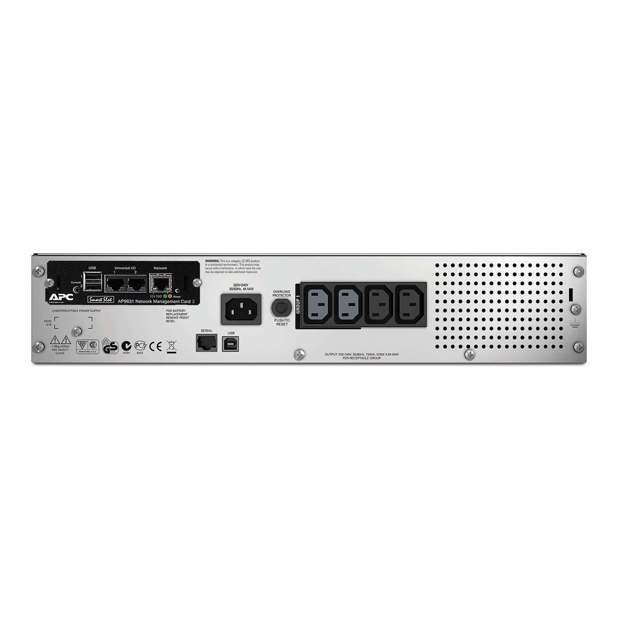 Smart-UPS SMT - Onduleur line-interactive- Alimentation électrique sans interruption - Tension d'entrée 220 à 240V - Puissance nominale 500W/750VA - Capacité d'absorption des surtensions 459J - Rack - 2U - SmartConnect - Carte Réseau