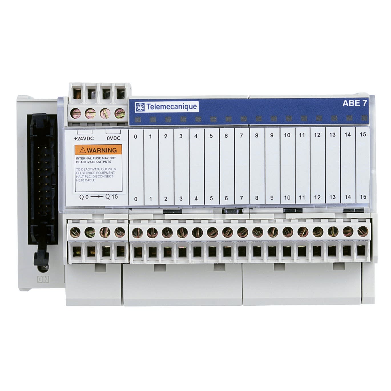 Telefast ABE7 - embase - relais électromagnét. soudés - 16 voies - relais 5mm - H77mmxL125mmxP58mm - tension d'alimentation : 24 V CC pour extrémité de l'automate - courant commuté minimum : 1 mA à >= 5 V