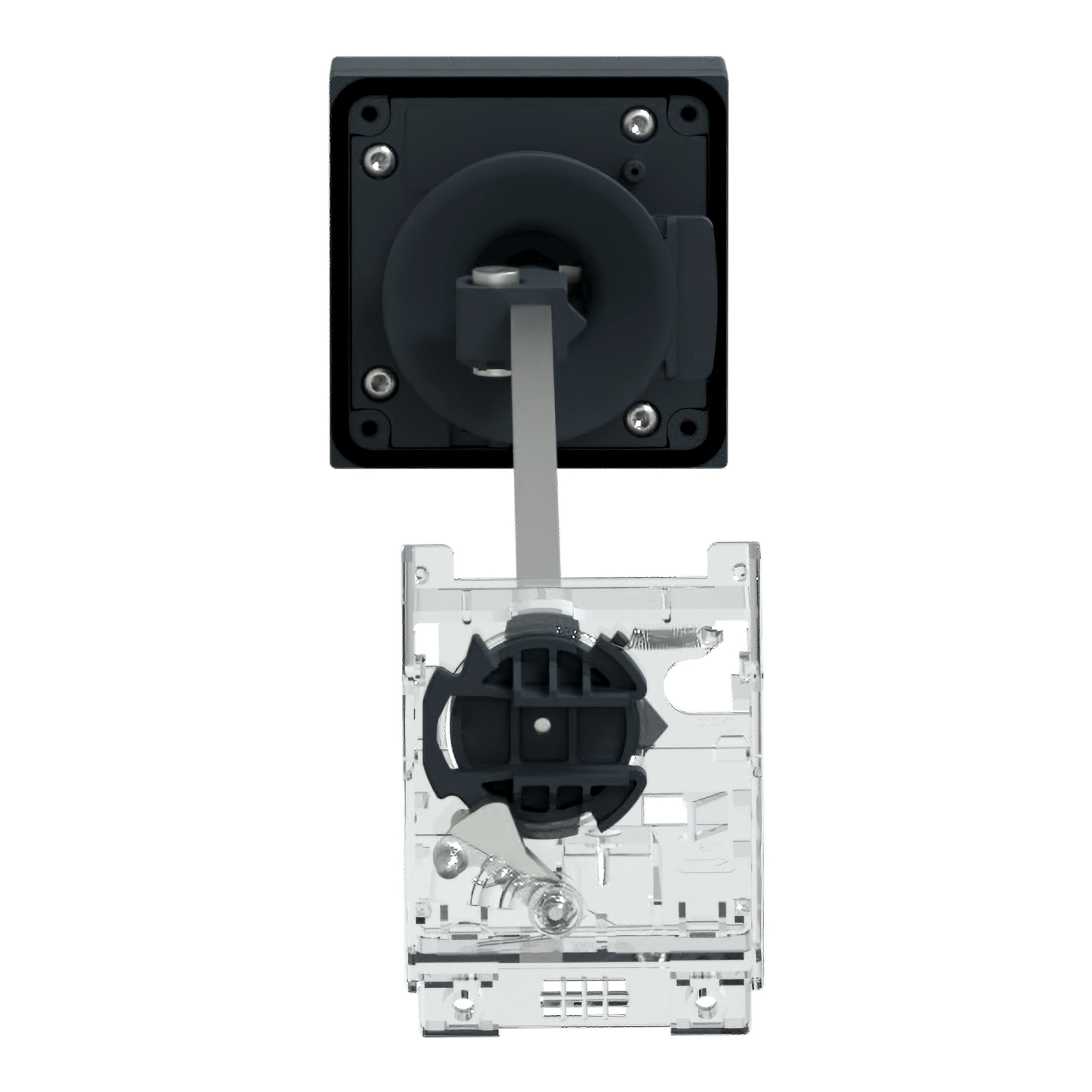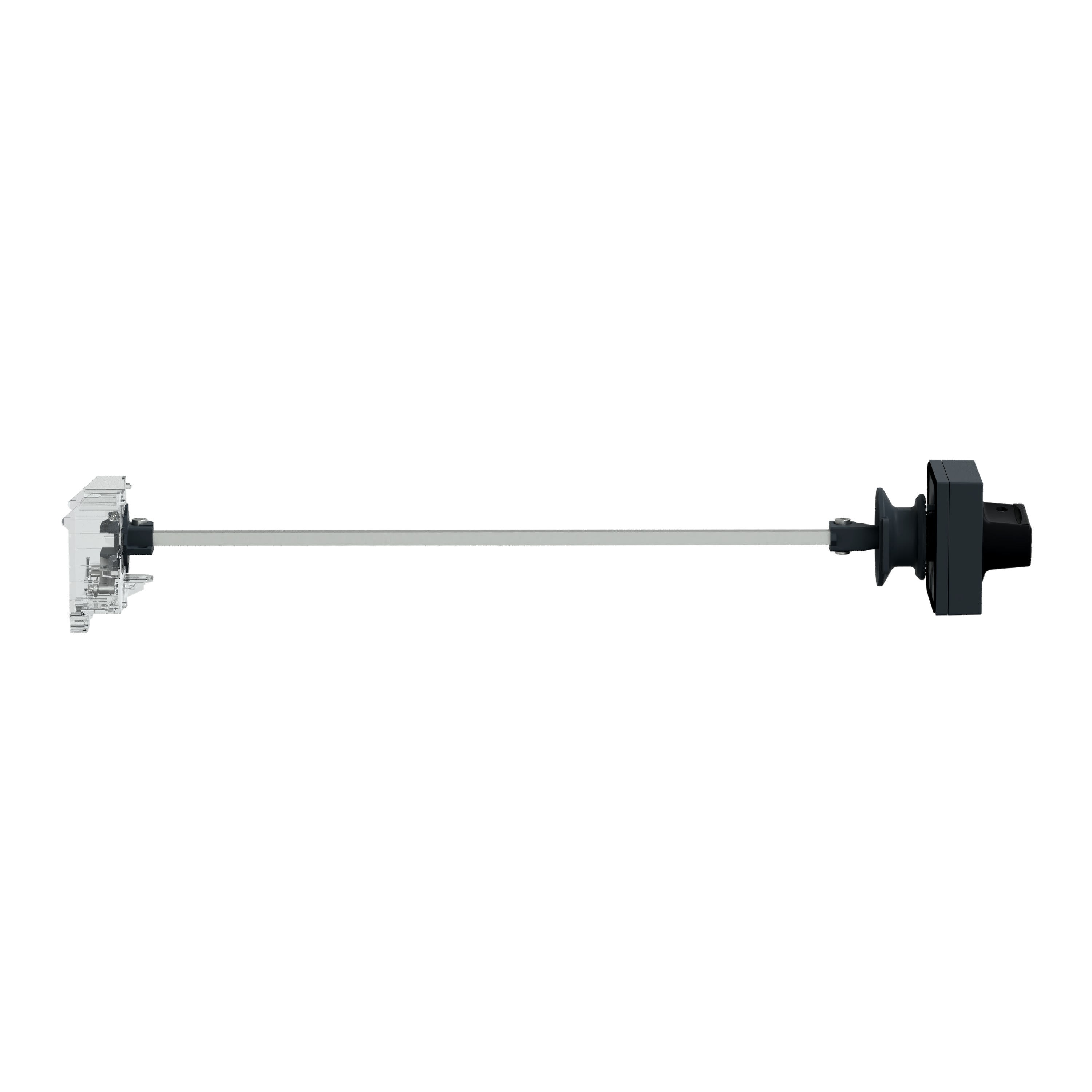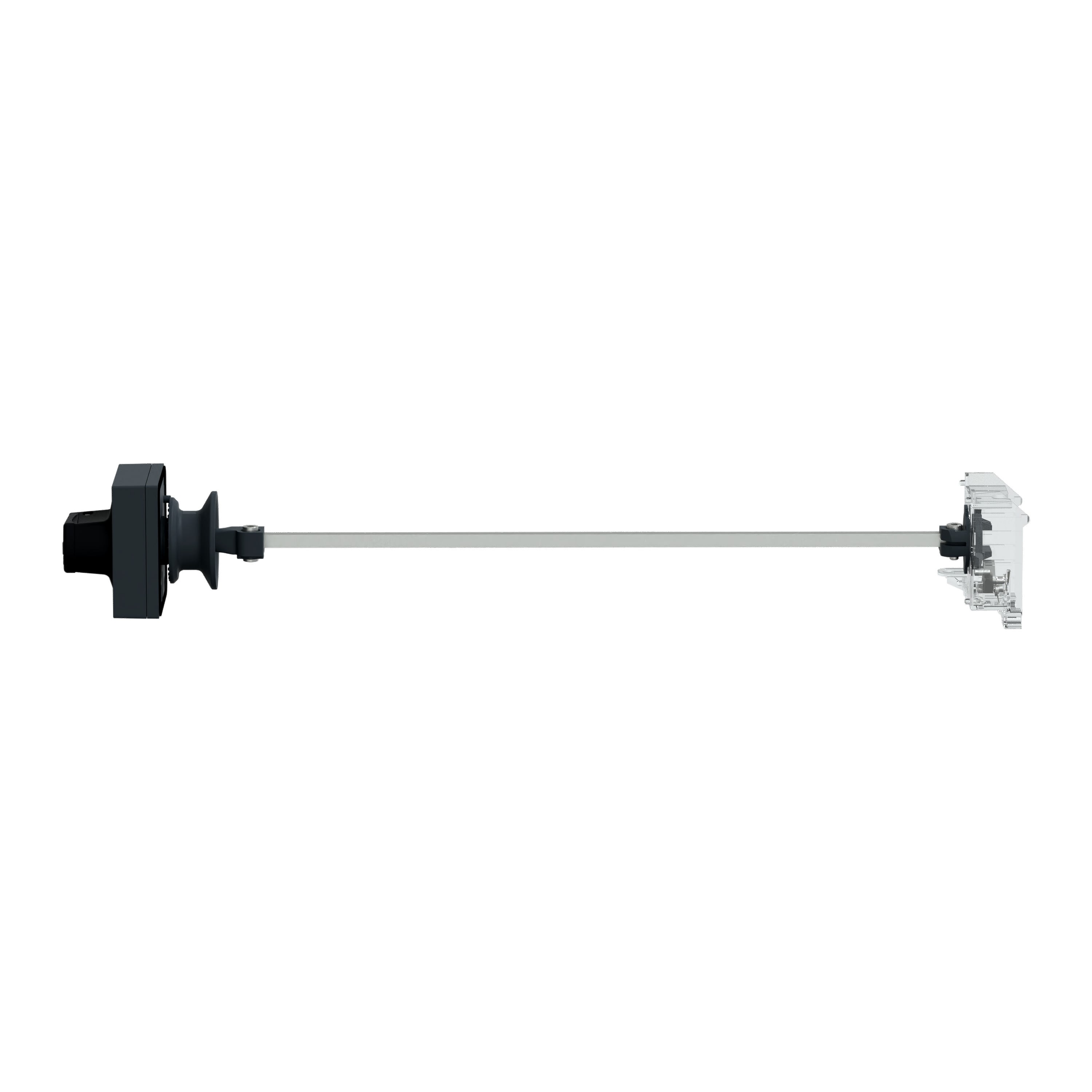 Cette poignée rotative allongée TeSys GV convient aux disjoncteurs moteurs GV2L, GV2P montés à l'intérieur d'un coffret et à actionner à l'extérieur. Sa poignée noire est sur une plaque avant grise avec indication de 2 positions OFF, ON. Elle se monte sur la porte du coffret. Elle assure une protection IP65 au montage. Elle comprend également un adaptateur de montage à visser sur la face du disjoncteur et un arbre d'extension à régler en longueur (la distance entre la porte et l'arrière du disjoncteur doit être comprise entre 146 et 256mm). Elle est cadenassable en position OFF ou ON avec jusqu'à 3 cadenas (à commander séparément). Le verrouillage en position ON n'empêche pas le déclenchement du disjoncteur (un déverrouillage est nécessaire pour le réarmement sur défaut). Le produit est conforme à la directive RoHS et à la règlementation REACh.