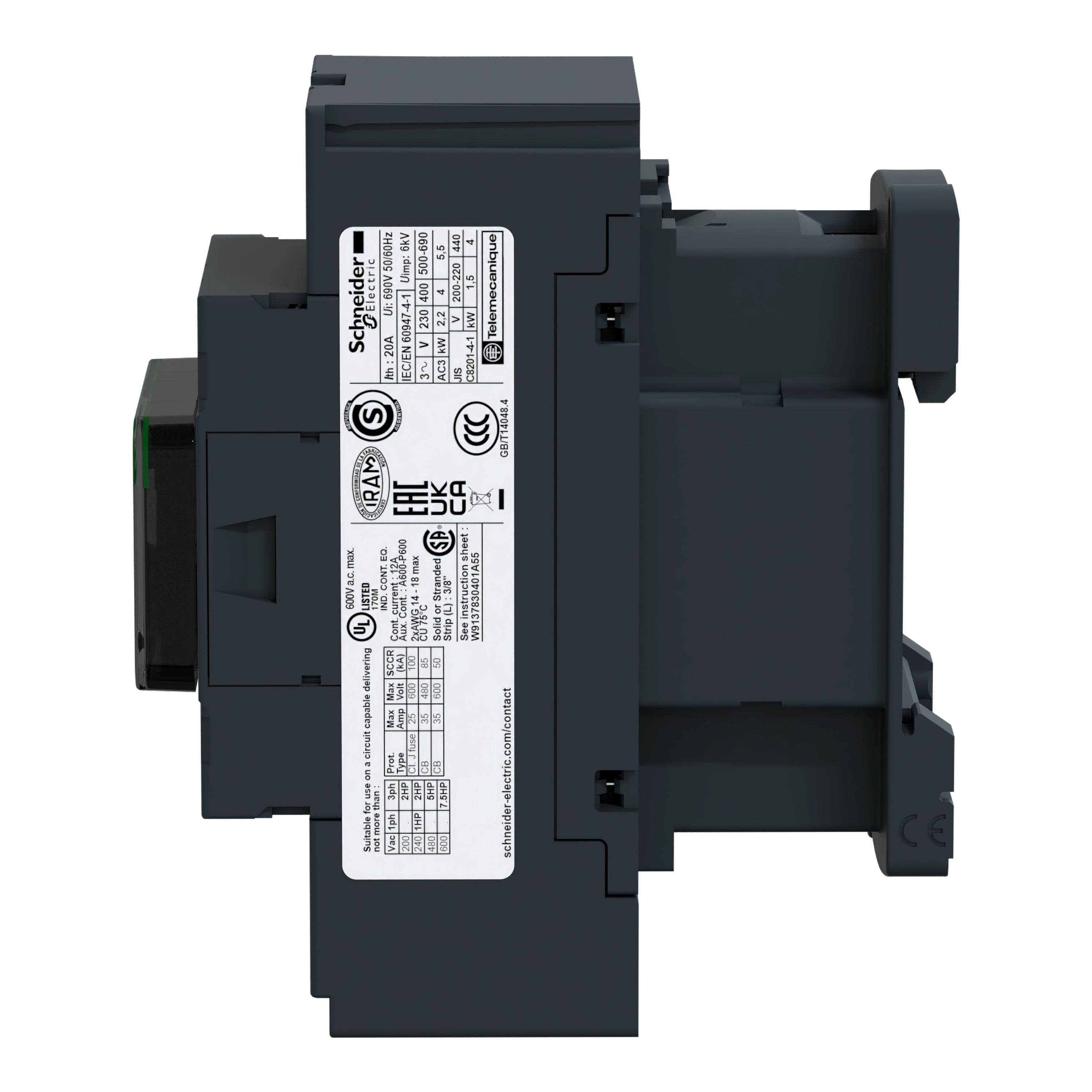 puissance de fonctionnement nominale, AC-3, 400 V - 5.5 kW