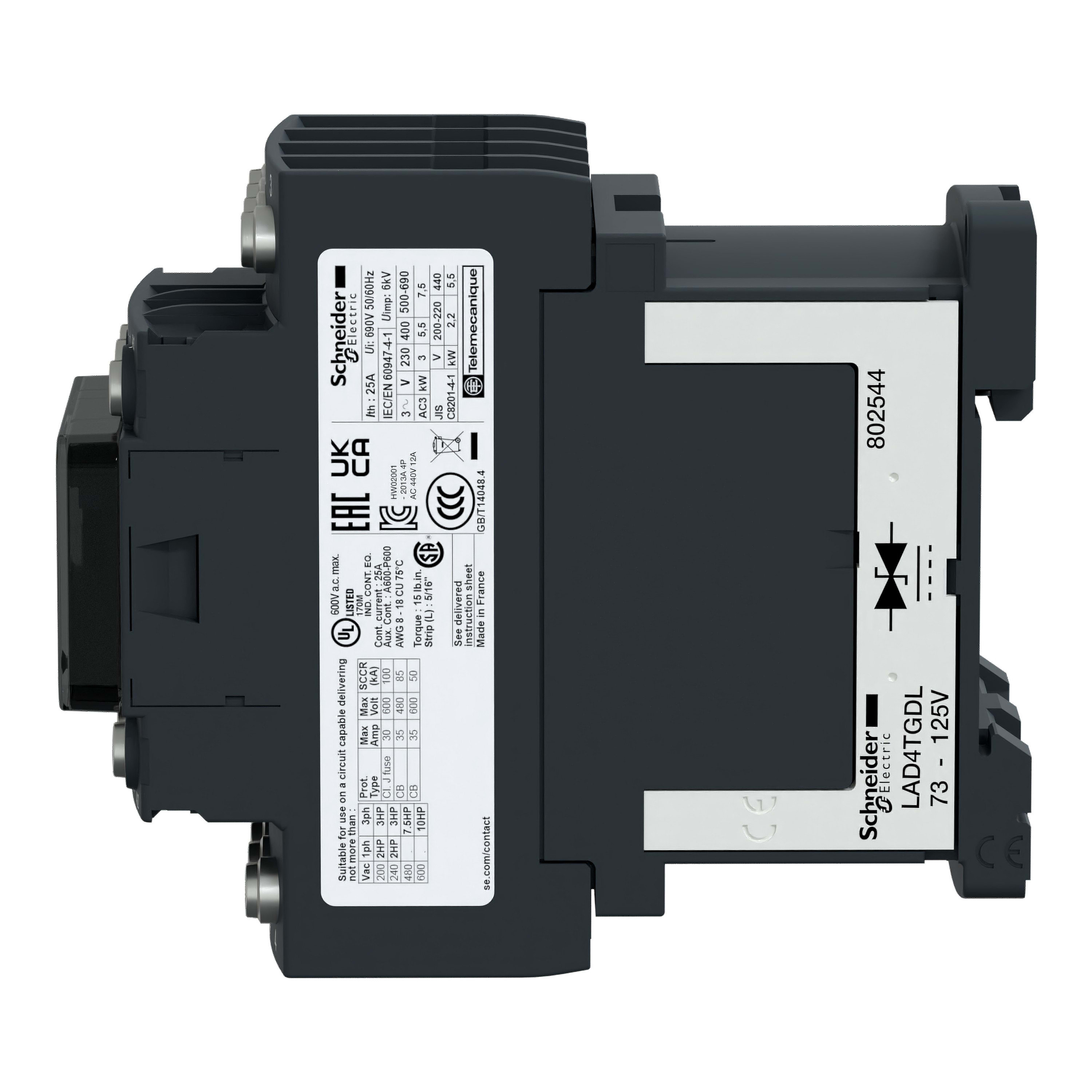 Schneider Electric - TeSys LC1D - contacteur - 4P (2F+2O) - AC-1 440V - 25A - bobine 240Vca - LC1D1286U7