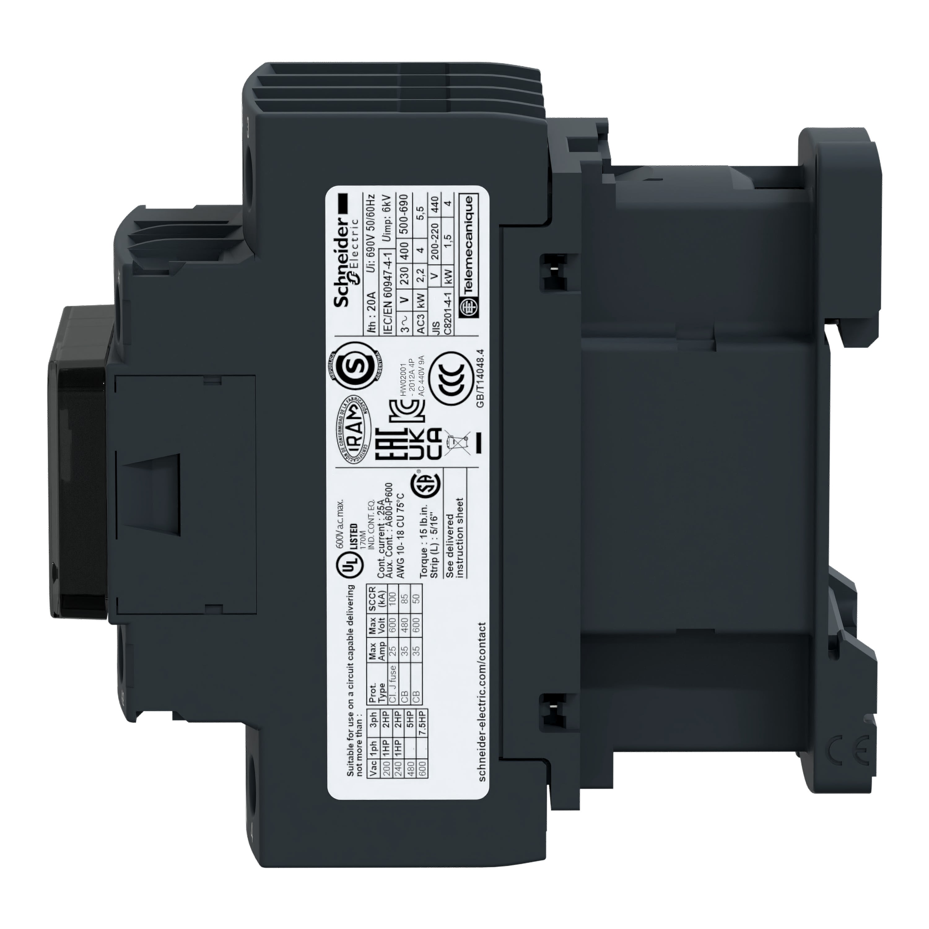 Schneider Electric - TeSys LC1D - contacteur - 4P (2F+2O) - AC-1 440V - 25A - bobine 480Vca - LC1D128T7