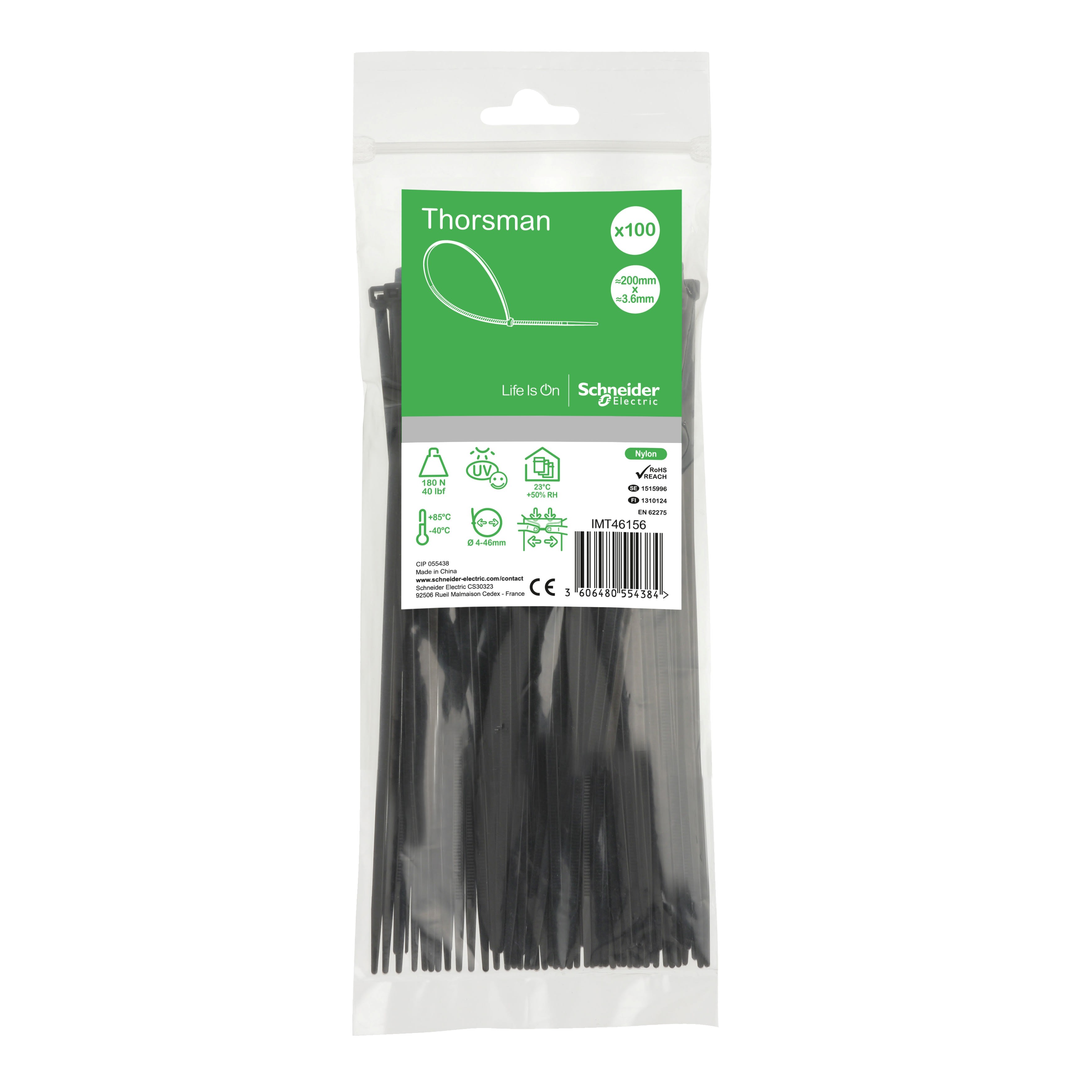 Schneider Electric - Thorsman colliers de serrage 200x3.6 Noir, 100p - IMT46414