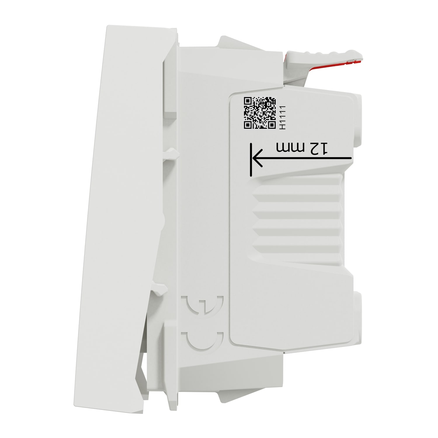 Cet interrupteur bouton-poussoir 10AX permet de commander un éclairage. Son design intemporel carré en 45x45 répondra à toutes vos architectures d'installations électriques : murs, sols, plafonds en colonnes ou colonnettes, goulottes, postes de travail, … Réalisé en Cu NU320618F, en version 2 modules, se compose d'un mécanisme de commande à bascule et d'un enjoliveur simple blanc brillant RAL9003. Dans le cas d'une installation murale, il sera à associer avec un support de fixation (commençant par NU700) et une plaque de finition Unica (Pro ou Déco). Dans les autres cas il se clipsera directement sur le support compatible : goulottes, boitiers de sol, poste de travail, colonnes, colonnettes, … L'encombrement réduit du mécanisme apporte plus de confort et de rapidité à l'installation. La couleur des poussoirs de déconnexion permet une identification rapide du câblage. Les bornes automatiques permettent une connexion rapide et sans outil. Son mode de fixation est par clipsage NU320618F se transforme facilement en va-et-vient en retirant le ressort à l'arrière de l'enjoliveur. Des enjoliveurs lumineux et voyants LED peuvent également y être associés. La gamme Unica blanc se décline en multiples fonctions : prises de courant, chargeurs USB, RJ45, ... Une variante existe également en module simple 22,5x45. Chaque version est disponible en blanc, en aluminium et en anthracite. La rigidité diélectrique, c'est-à-dire la résistance électrique de son isolant, est de 2000 V Et son courant nominal est de 10A Cet interrupteur à bouton-poussoir est également exempt de SVHC (substances extrêmement préoccupantes) La finition de surface est lustrée, ce qui garantit une finition brillante et même accueillante