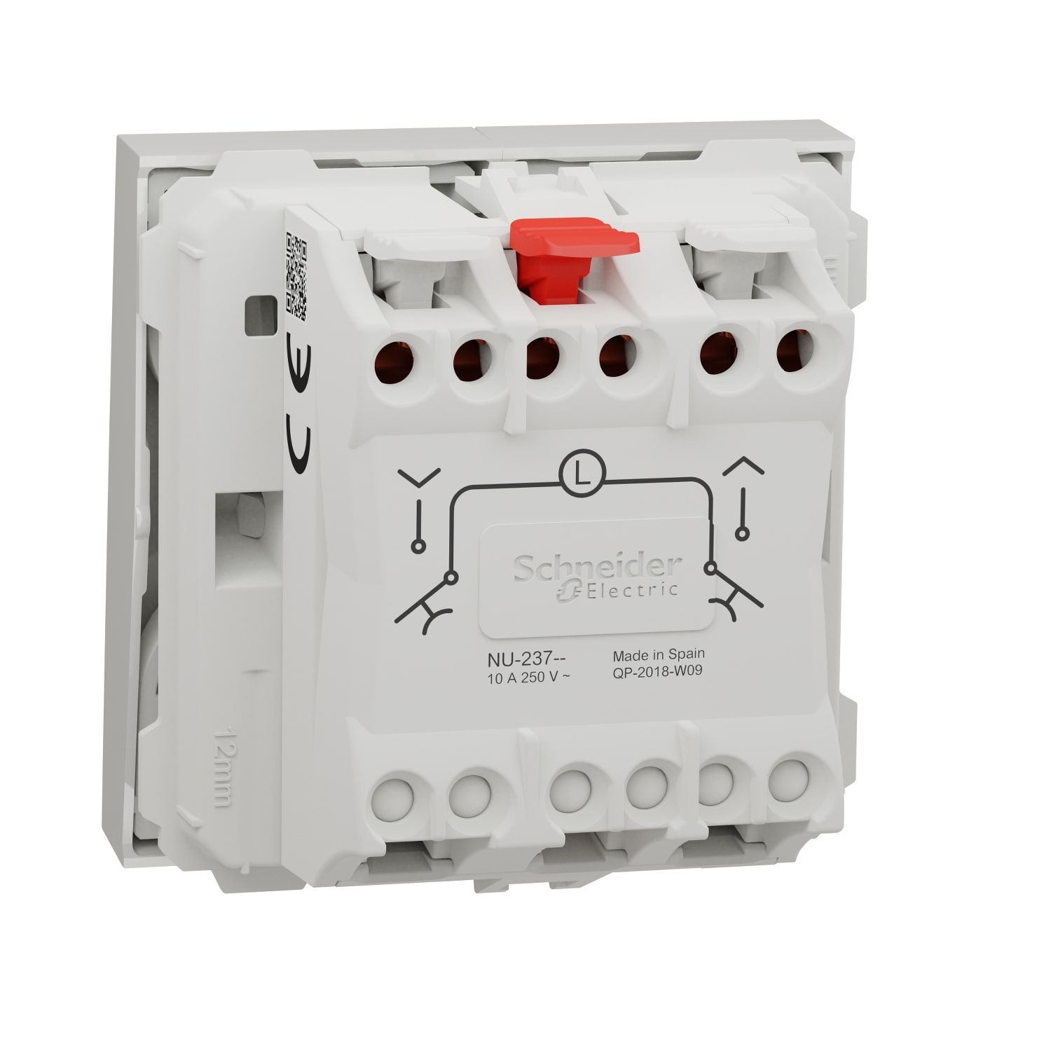 Schneider Electric - Unica - cde volet-roulant - double poussoir + STOP - 2 mod - Blanc - méca seul - NU323718