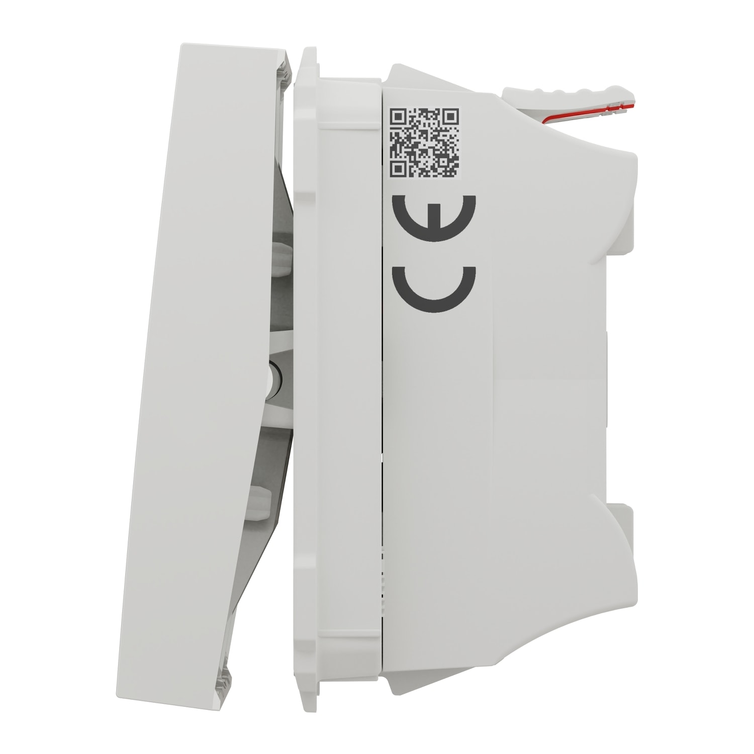 Le nouvel interrupteur double poussoir pour volet roulant Unica NU323718 de Schneider Electric est de couleur blanche. Ses bornes de connexion sont sans vis. Il se fixe en toute facilité, en un seul clic. L'interrupteur pour volet roulant est en Cu. Zn37, PBT (polybutylène téréphtalate) GF30, PC (polycarbonate) GF10 FR, thermoplastique ABS stabilisé aux UV, le rendant très résistant. De plus, il est parfaitement conforme à la norme CEI 60669-1, directive BT, Ro. Conforme au SH. Il a également obtenu le certificat AENOR, CE, EAC, NF. Par ailleurs, fabriqué dans le respect de l'environnement, sans halogène, cet interrupteur reste résistant aux UV et à tout type d'entretien ou d'environnement : acétone, alcool, ammoniaque, eau de Javel, savon liquide, huile, essence et produit vitre. La tenue diélectrique, qui mesure la résistance électrique d'un matériau en tant qu'isolant, est de 2 000 V. Son courant nominal est de 10 A. Cet interrupteur pour volets est également exempt de SVHC (substances extrêmement préoccupantes). La nouvelle gamme Unica abrite de nouveaux designs, couleurs et matériaux à la délicatesse incomparable : un carré dans un carré, c'est ainsi que l'on pourrait résumer l'esthétisme de la gamme Unica. Mais ça serait passer sous silence la finesse de ses lignes ainsi que la richesse, l'intelligence et la facilité de ses fonctions.