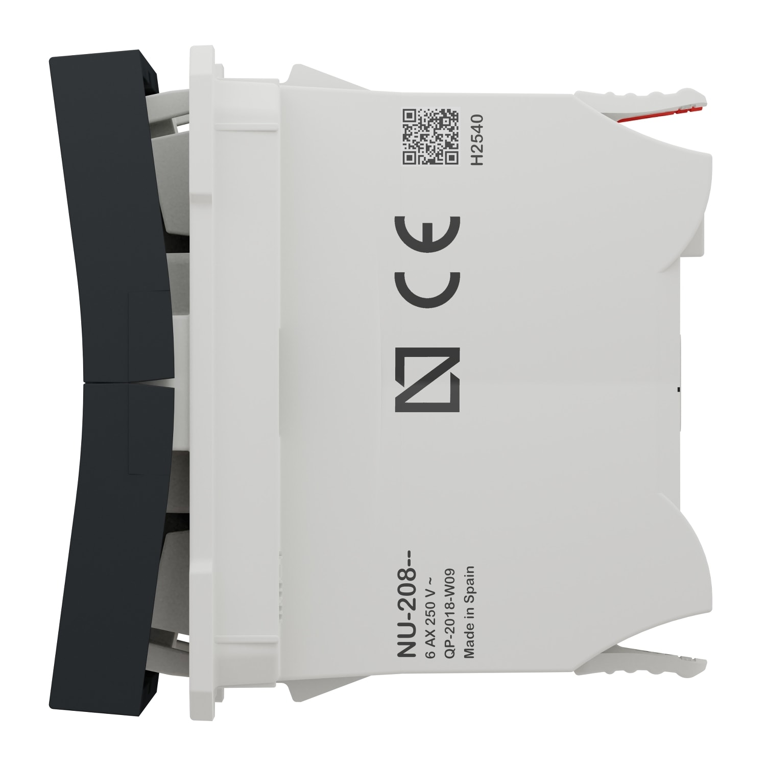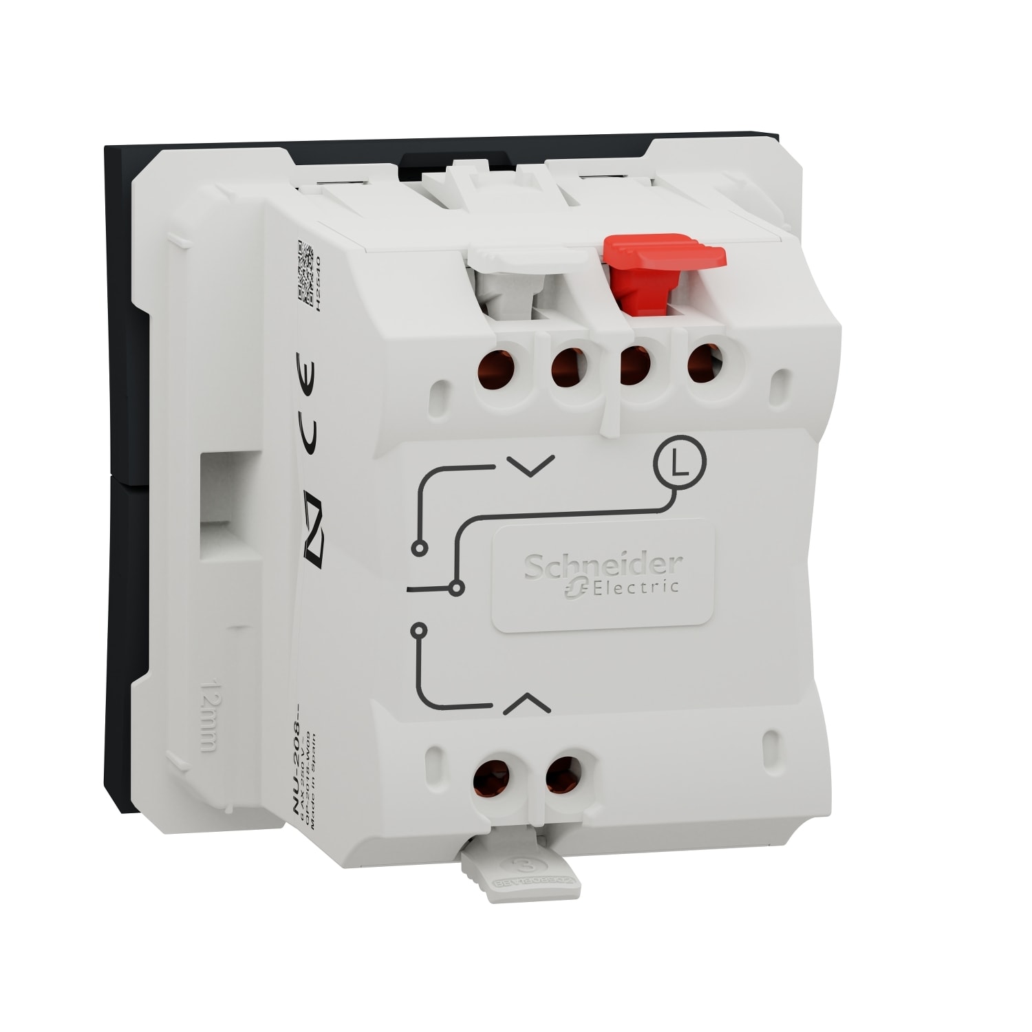 Le nouvel interrupteur pour volet roulant Unica NU320854 de Schneider Electric est de couleur anthracite. Ses bornes de connexion sont sans vis. Il se fixe en toute facilité, en un seul clic. Il dispose de 3 touches, pour 3 positions (monter, descendre, stopper). L'interrupteur pour volet roulant est en Cu. Zn37, PBT (polybutylène téréphtalate) GF30, PC (polycarbonate) GF10 FR, thermoplastique ABS stabilisé aux UV, le rendant très résistant. Ce produit est vendu par 10 unités. En outre, son niveau de protection IK01 contribue à la protection contre les impacts. De plus, il est parfaitement conforme à la norme CEI 60669-1, directive BT, Ro. Conforme au SH. Il a également obtenu le certificat AENOR, CE, EAC, NF. Par ailleurs, fabriqué dans le respect de l'environnement, cet interrupteur reste résistant aux UV et à tout type d'entretien ou d'environnement : acétone, alcool, ammoniaque, eau de Javel, savon liquide, huile, essence et produit vitre. La tenue diélectrique, qui mesure la résistance électrique d'un matériau en tant qu'isolant, est de 2 000 V. Son courant nominal est de 10 A. Cet interrupteur pour volets est également exempt de SVHC (substances extrêmement préoccupantes). Le traitement de surface antibactérien répond aux exigences des restaurants ou des hôpitaux. La nouvelle gamme Unica abrite de nouveaux designs, couleurs et matériaux à la délicatesse incomparable : un carré dans un carré, c'est ainsi que l'on pourrait résumer l'esthétisme de la gamme Unica. Mais ça serait passer sous silence la finesse de ses lignes ainsi que la richesse, l'intelligence et la facilité de ses fonctions.