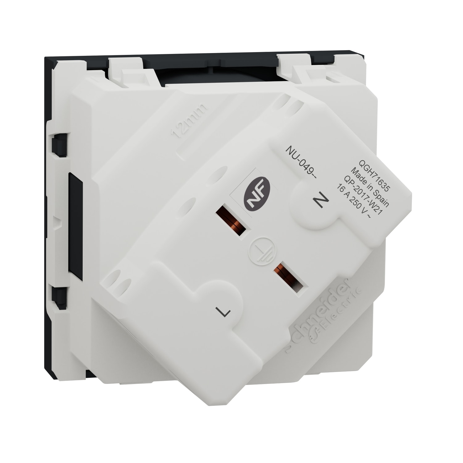 Unica - prise de courant 2P+T - 16A - 250Vca - standard français - 45° - raccordement rapide traversant - Anthracite - mécanisme seul